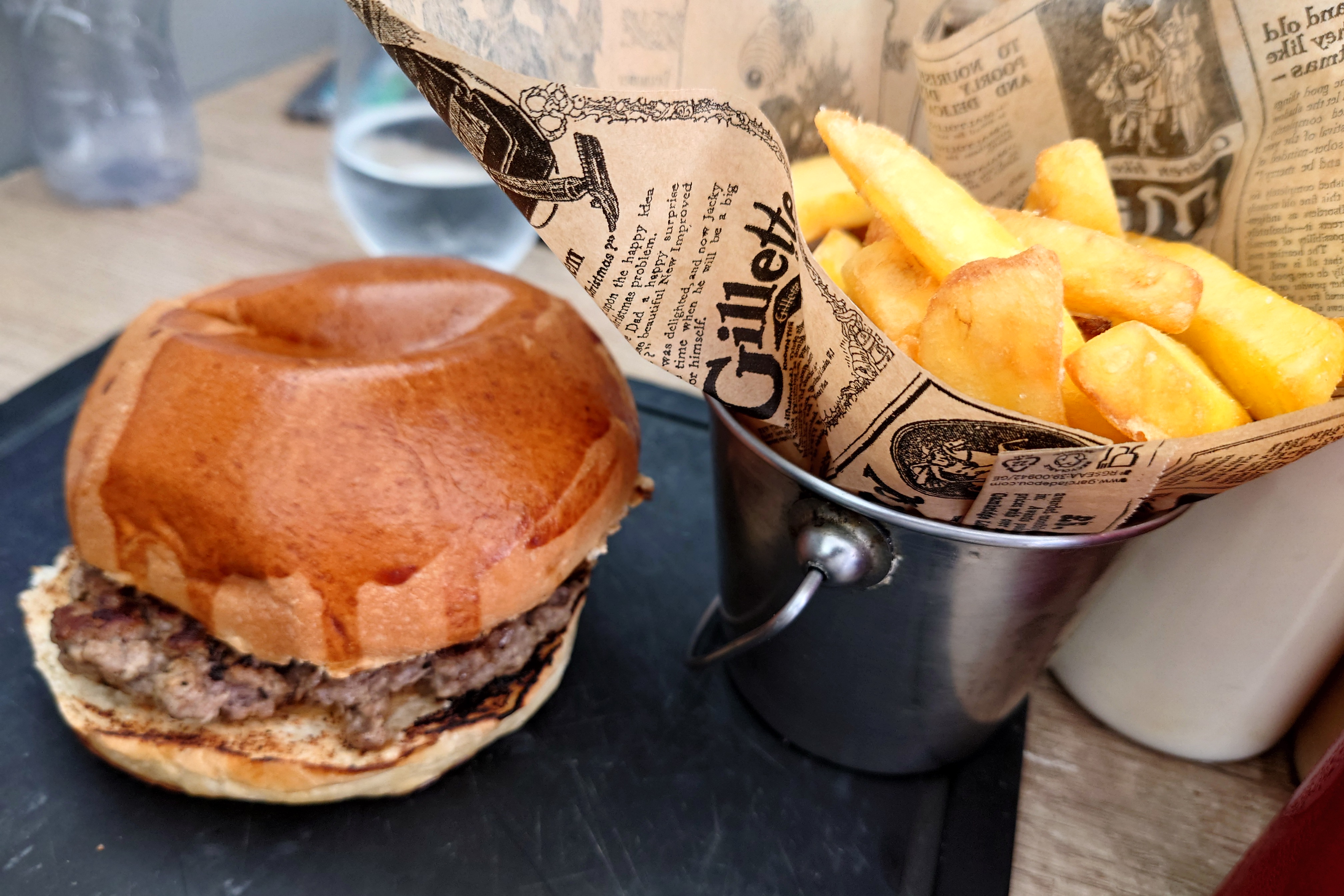 La très désagréable sensation d'avoir perdu son temps et son argent. On nous installe à une table près de la porte entrouverte, d'où vient un courant d'air. Après avoir demandé si l'on pouvait fermer la porte, on nous répond que la porte ne ferme pas. La commande : un cheeseburger : le pain était à peine décongelé, complètement froid au centre. Le steak quant à lui beaucoup trop cuit (d'ailleurs on ne nous a pas demandé la cuisson), et la sauce maison avait tout l'air d'une sauce cocktail (ketchup/mayo). Les couverts sont arrivés à notre demande quelques minutes après les burgers, sans excuses... et encore il manquait un couteau qu'on a fini par prendre sur une table voisine. Edit : pour être repassé devant le lendemain, ils étaient en train de changer la porte, on est peut-etre seulement très mal tombé sur ce point !