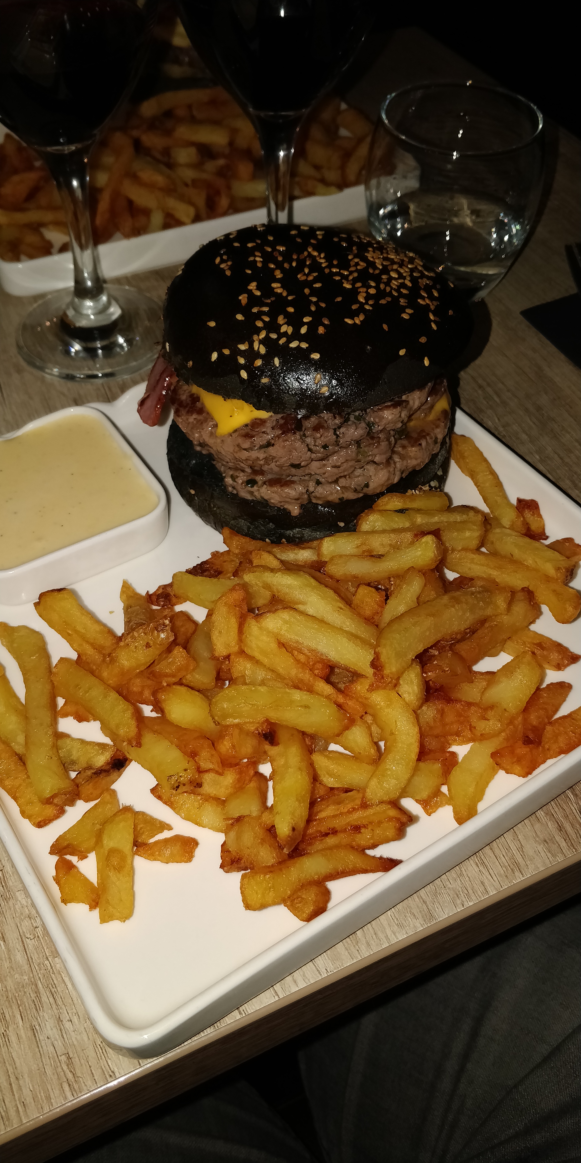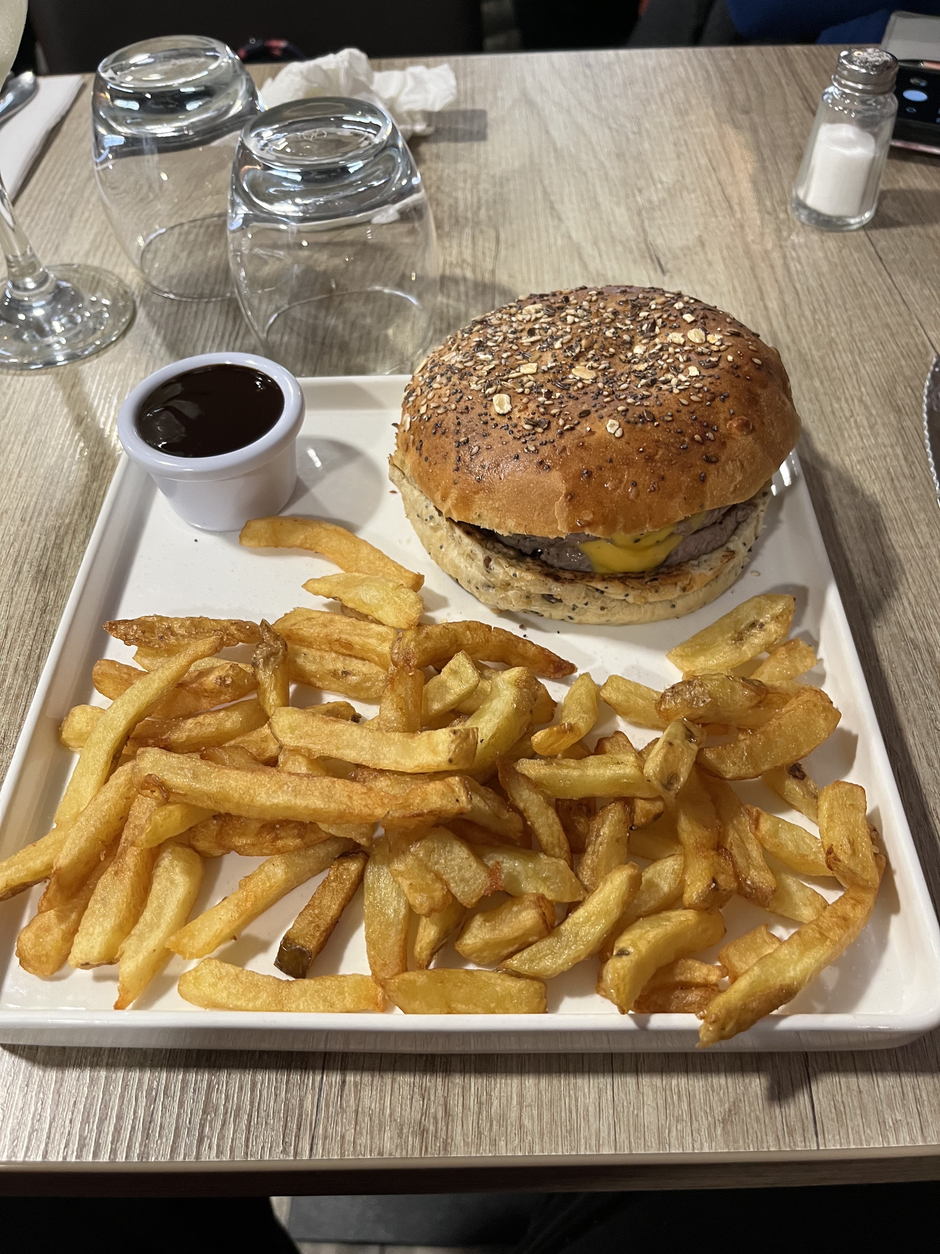 Un vrai burger fait maison super bon!!! et pareil pour les frites, je recommande😎