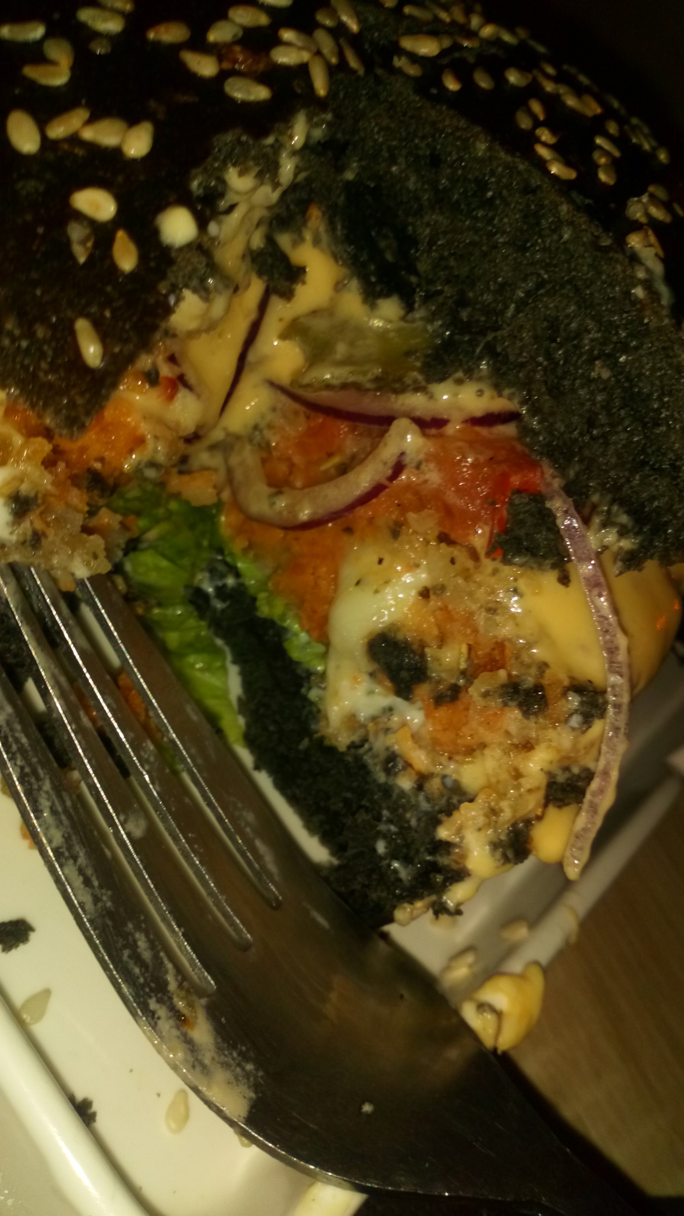 Bonjour madame, je reconnais vous avoir servir un bagel qui était un pain burger percé. Lorsque nous sommes en rupture de bagel nous adoptons cette solution et nous ne vous avions pas avertie. Pour les légumes de saisons il aurait fallu nous dire que cela ne vous convenais pas. J espère vous revoir prochainement