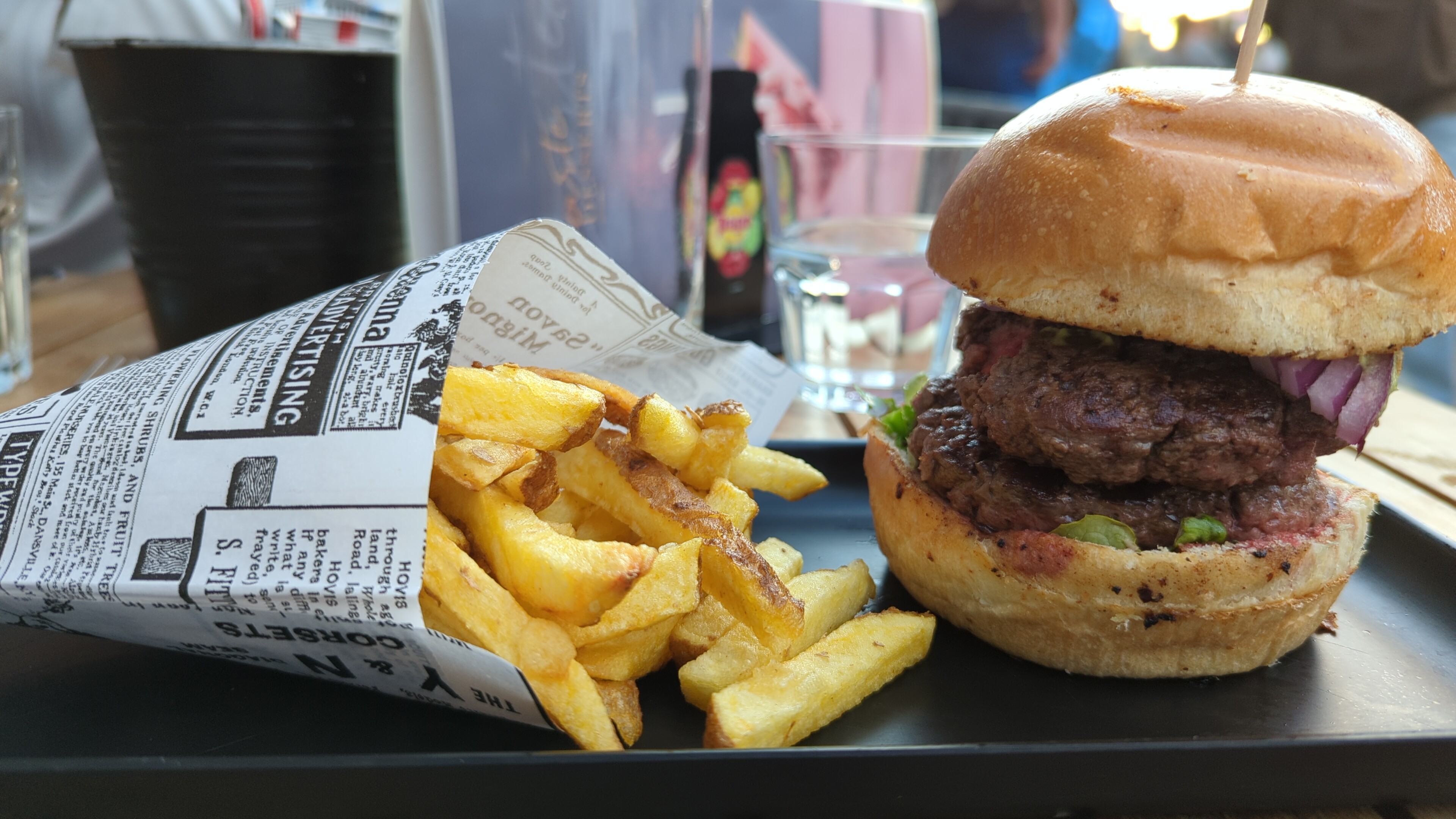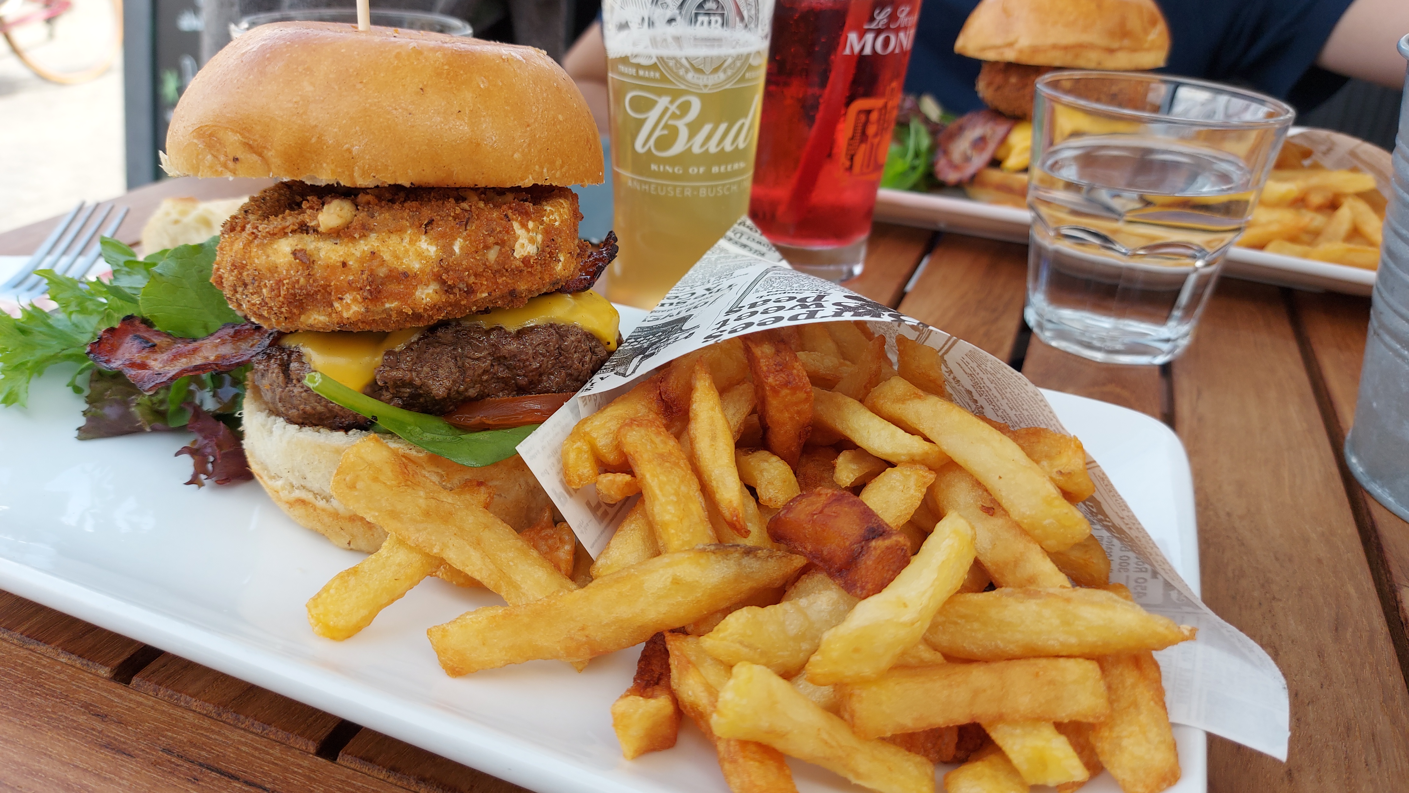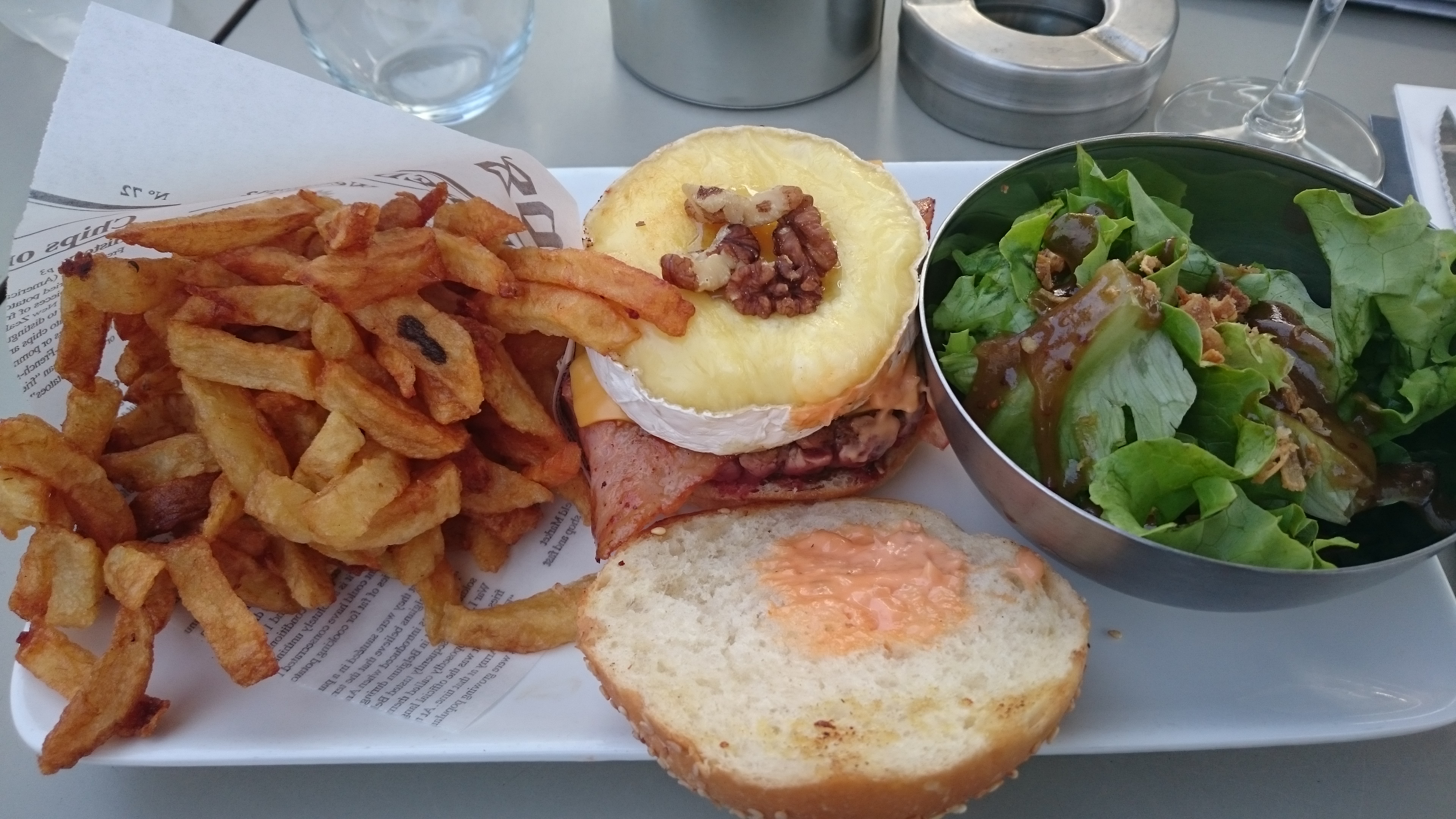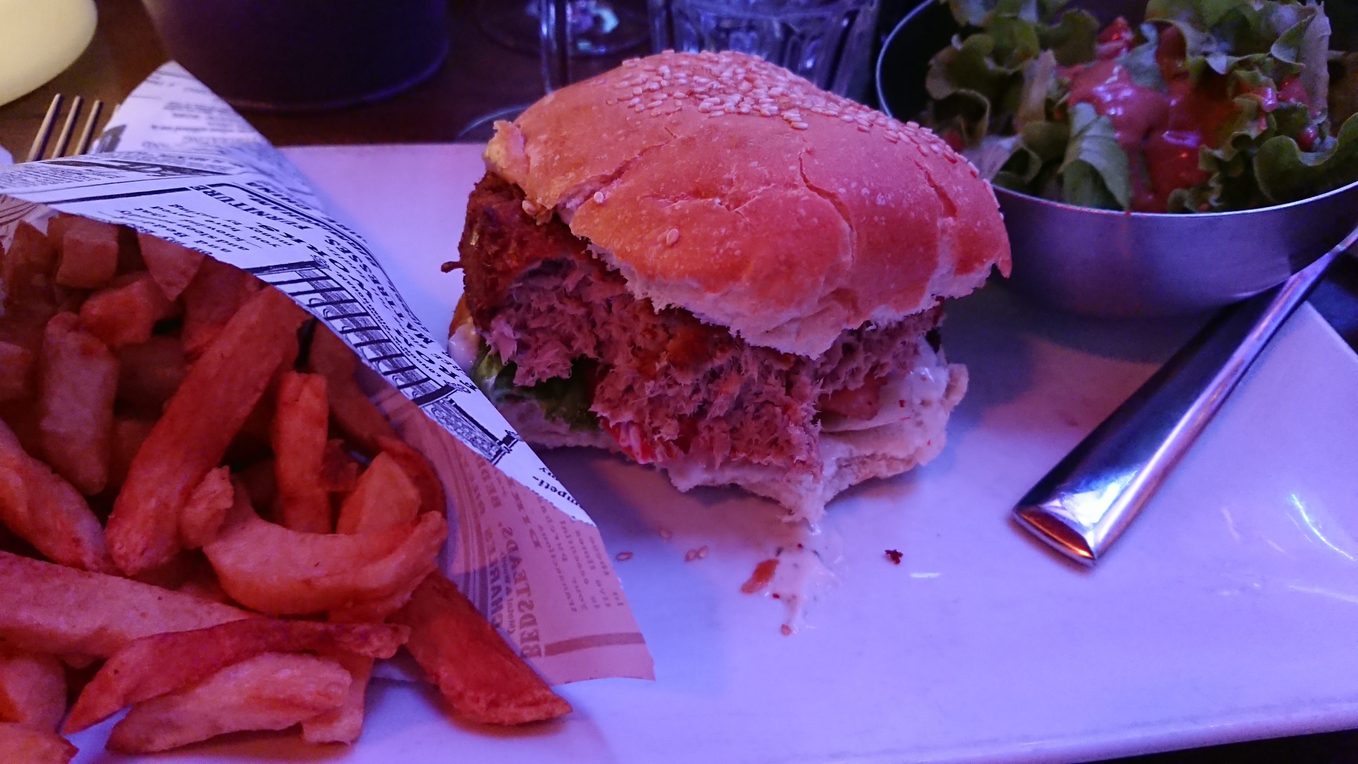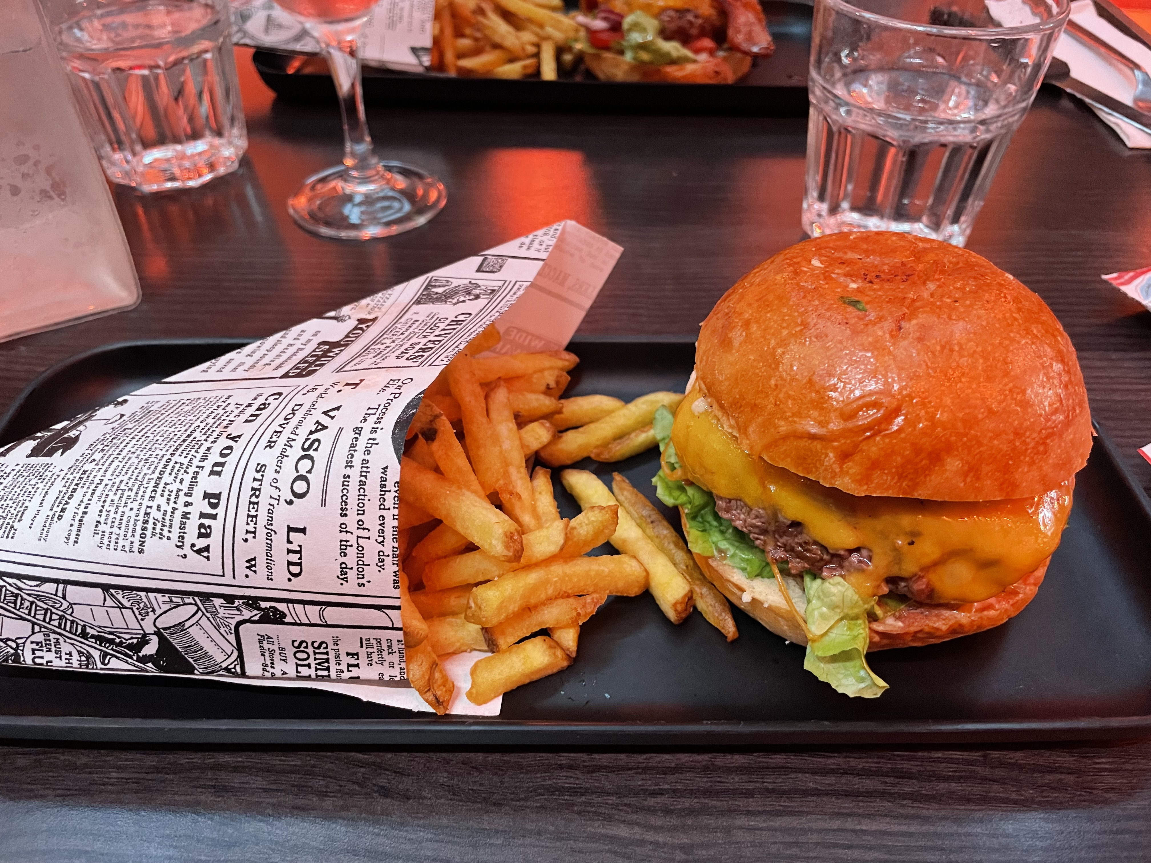 Burger bon mais pas incroyable et frite immangeable (cartons). La bière était pas si mal