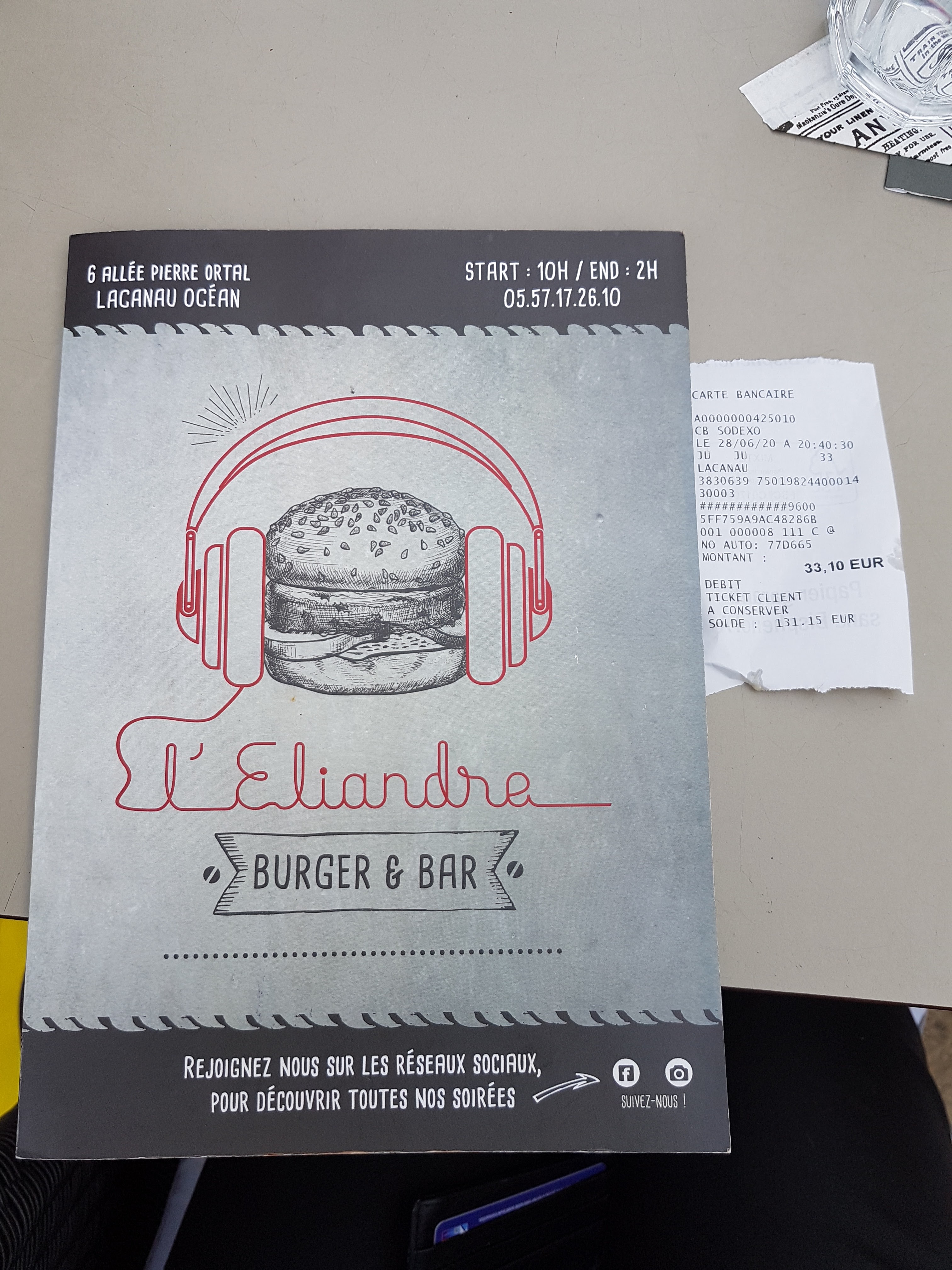 Fin de journée à Lacanau. Halte repas à l'Eliandre. Accueil sympathique et choix de Hamburgers originaux. Très bon rapport qualité/prix. Je recommande.