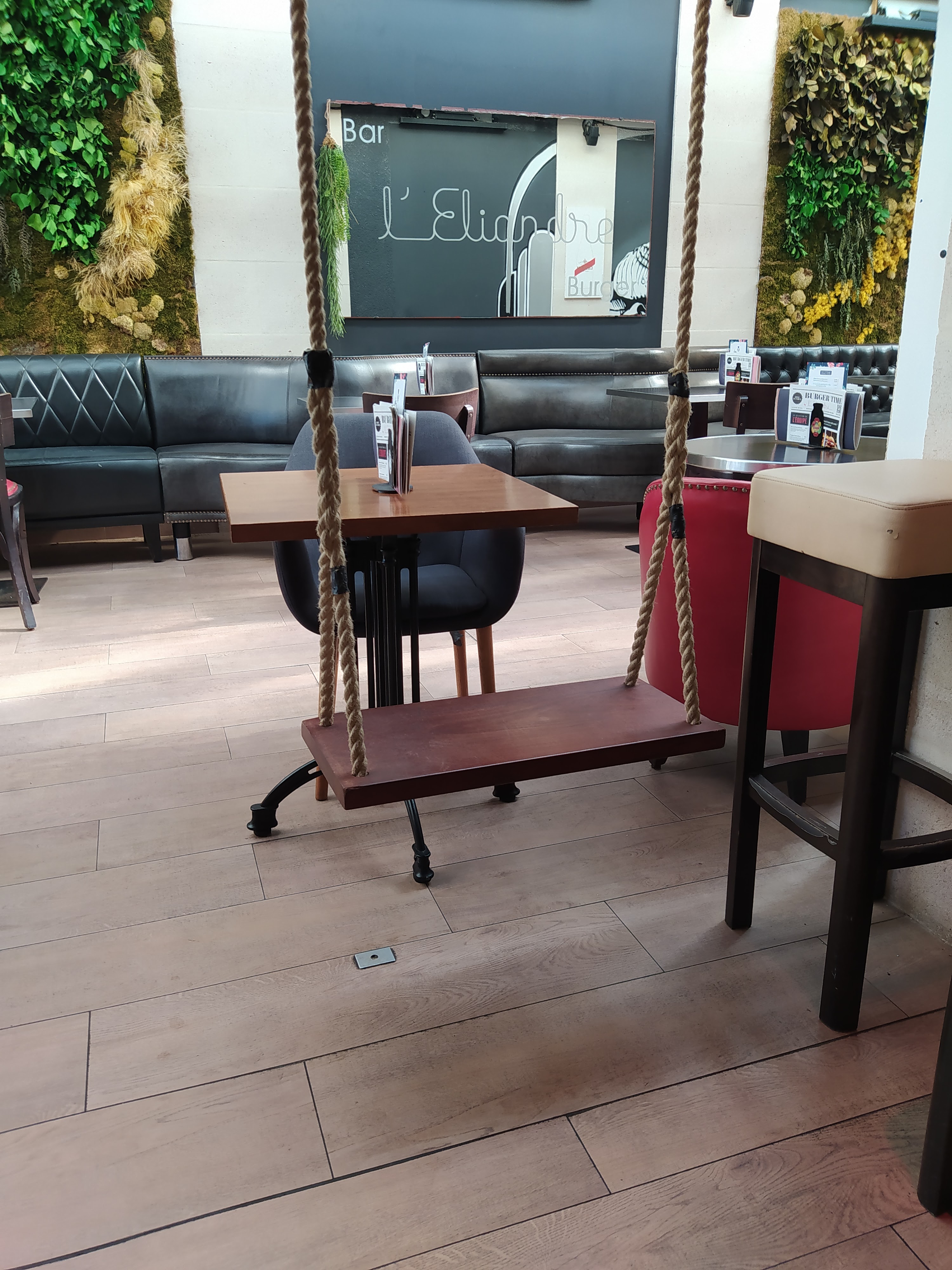 Restaurant atypique avec ses balançoires. Qualité prix très correcte Service agréable malgré le monde ce week-end. Nous sommes même revenus le lendemain boire un verre. Je recommande
