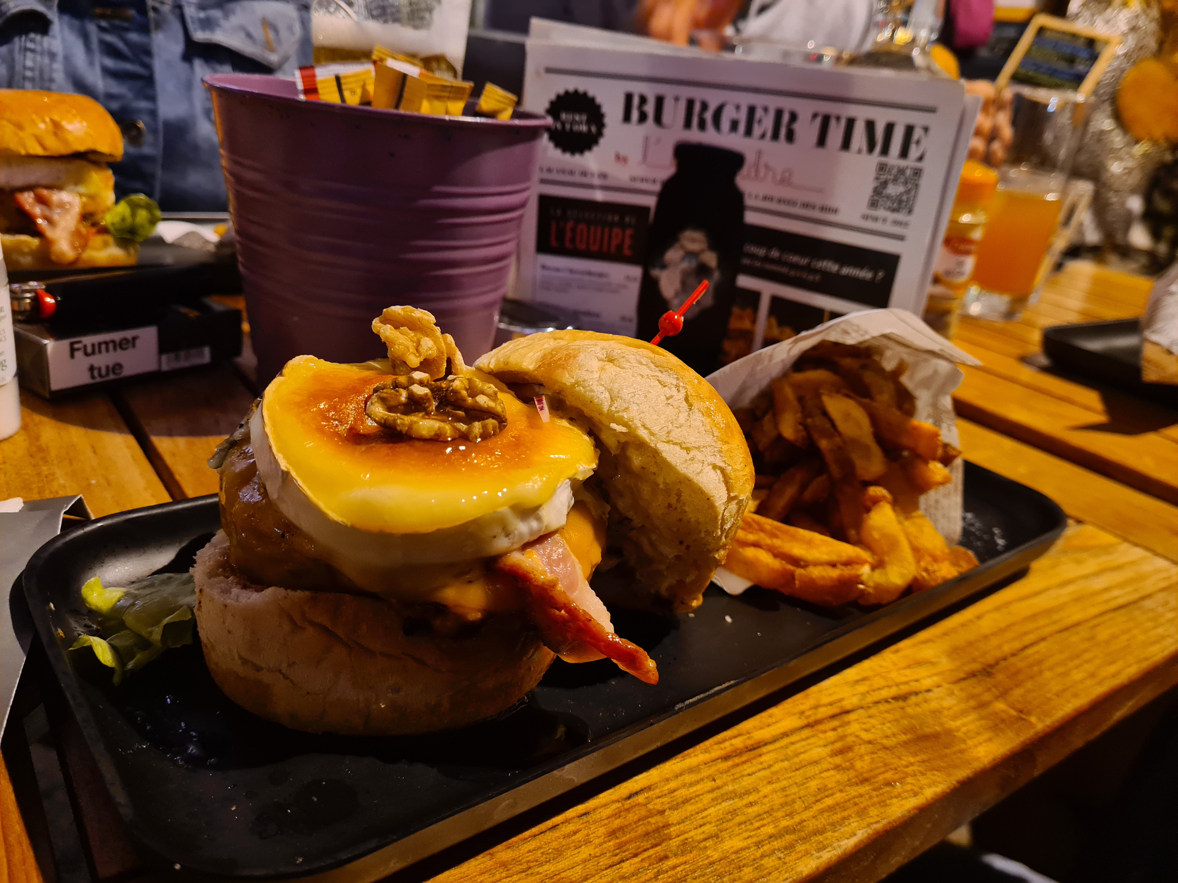 Super accueil, service rapide, très bons plats (tartare+camemberts et un burger bacon) Je recommande il est super !!
