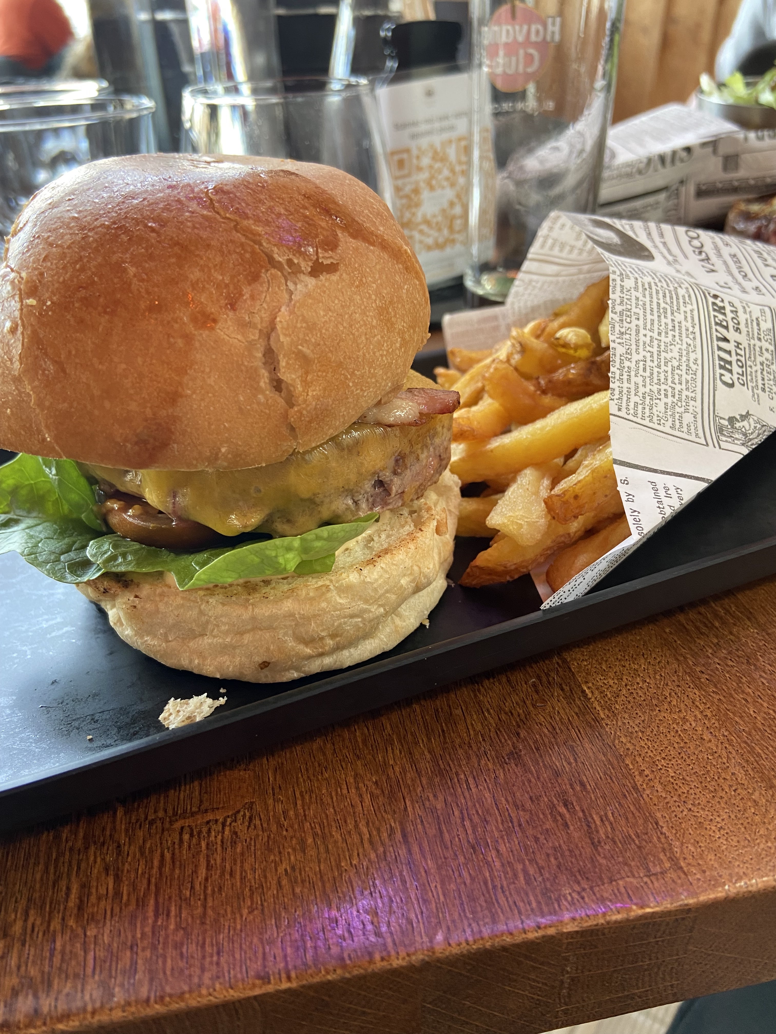 Lieu super accueillant, mojitos à tomber, burgers délicieux....et des frites maisons!!! Pas de dessert: trop mangé !!😆 Cerise sur le gâteau : des prix tous doux!😉 Je reviendrai à coup sûr ! Longue vie!