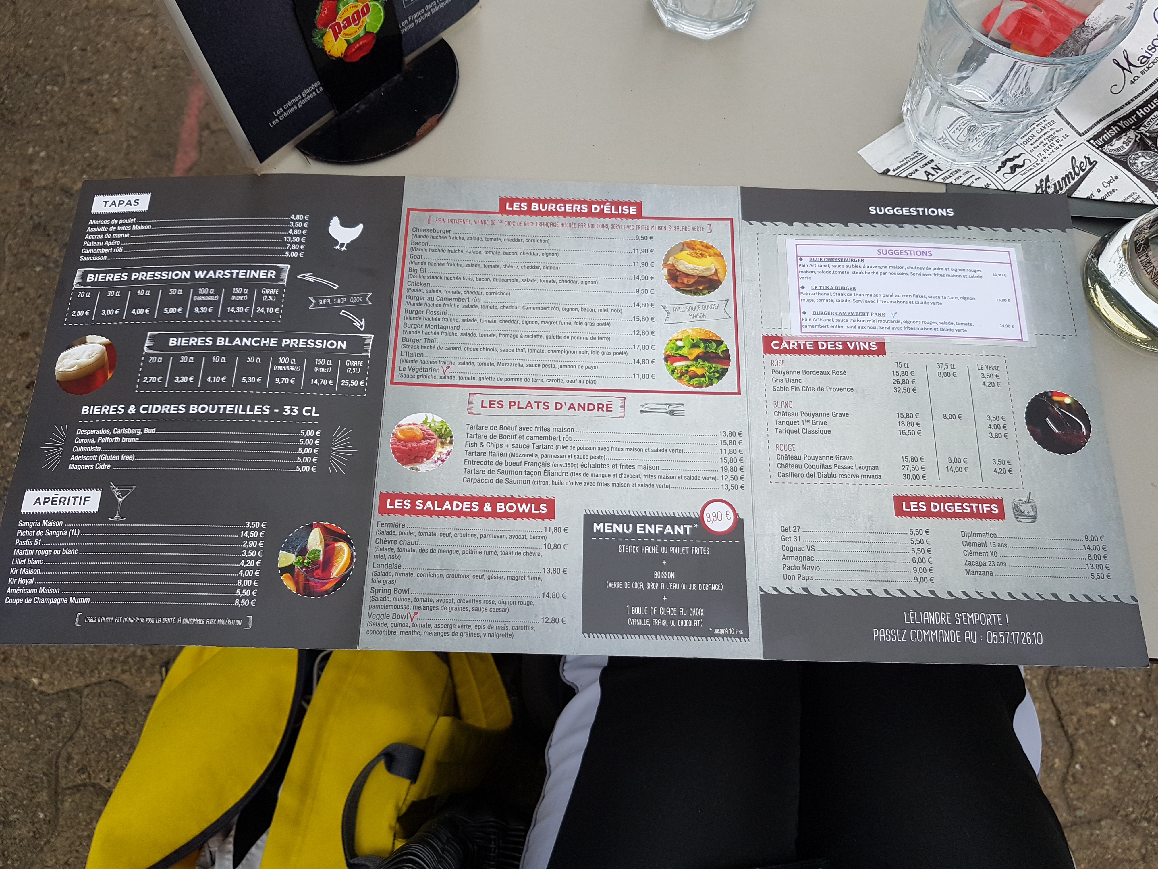 J'ai pu diner à l'Eliandre un lundi soir malgré une météo pas vraiment engageante, merci d'être restés ouverts. J'ai dégusté un très bon tartare de boeuf avec une viande tendre et très goûteuse accompagnée de frites excellentes et parfaitement cuites. Comme une envie d'y retourner pour goûter aux autres spécialités et notamment les burgers.