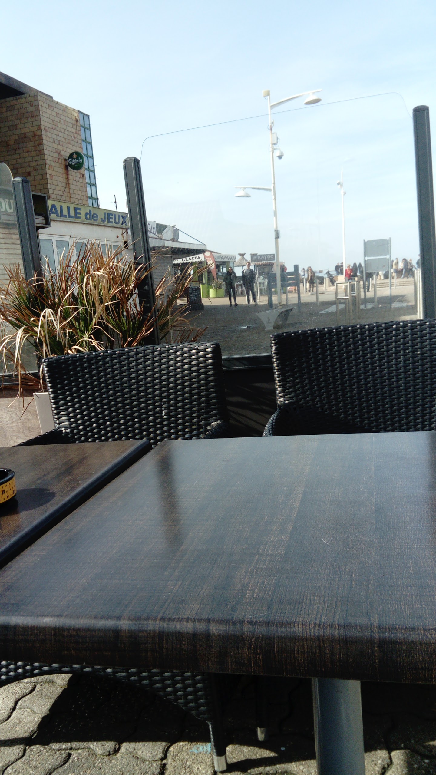 Terrasse en plein soleil sans aucun parasol... brûlure solaire garantie. Niveau attente on vous annonce 20 mins en réalité ça veut dire pas moins d 1h ! Le service est médiocre et si vous demandez du pain on vous dira oui bien-sûr mais ...vous ne l aurez jamais. Idem pour un cendrier, il vaudra mieux compter sur votre voisin de table pour vous passer le sien. Les frites sont très grasses et restent dans les assiettes. C est très dommage, car le lieu est sympa avec des chaises balançoires à l intérieur.