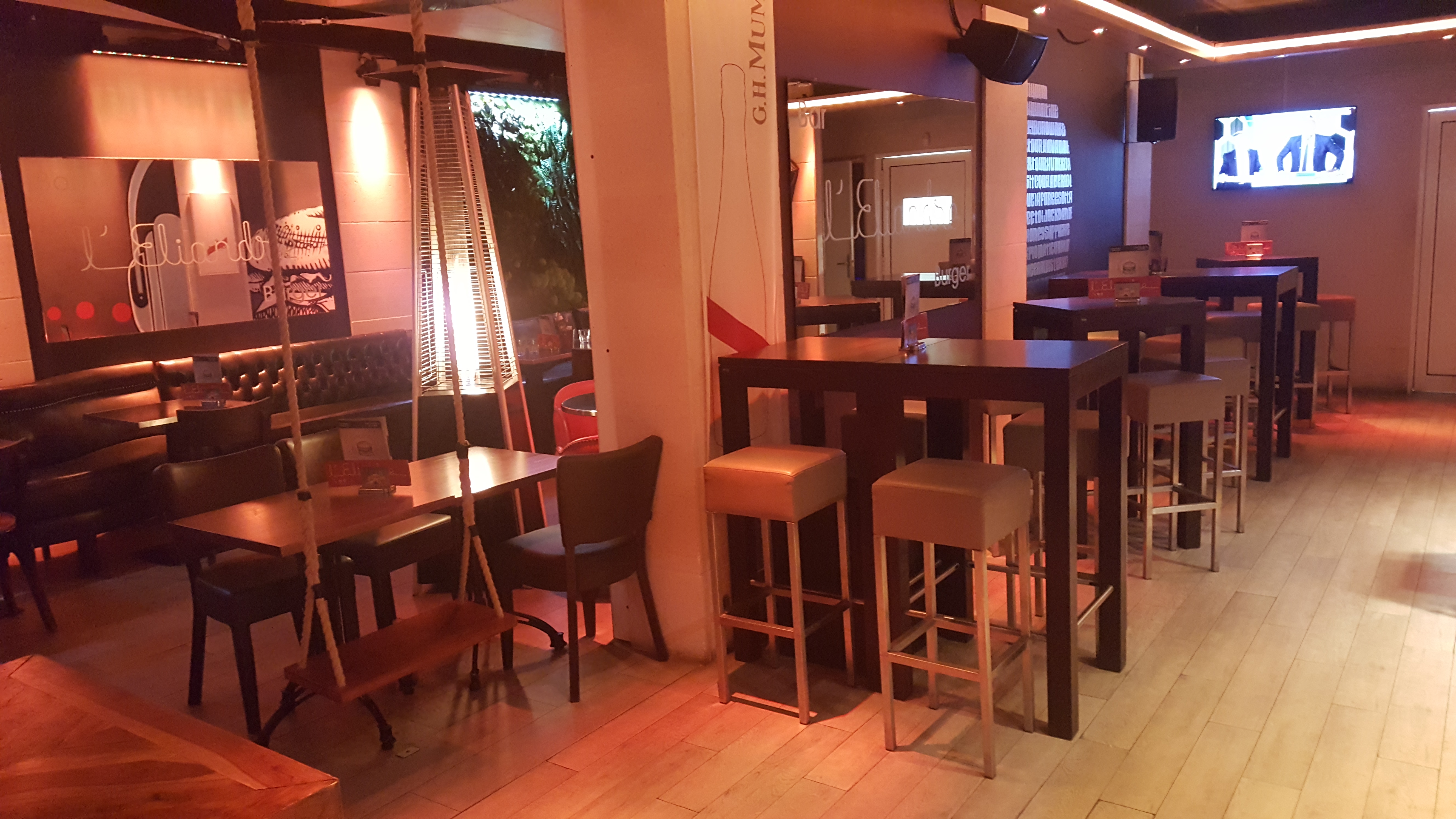 Le restaurant est original : des balançoires, une boule à facettes, un mur végétal, c'est chouette ! Par contre, un peu vétusté. Ex: les balançoires sont réparés avec du ruban adhésif. On a commandé des mojitos, mais la première tournée est arrivée avec des feuilles de menthe pourries, toutes noires et le mojito avait le goût du pourri... Quand on l'a signalé, on nous les a changé tout de suite, mais si nous n'avions rien dit... Les frites sont super bons ! Faites maison ! Les burgers sont aussi bons mais un peu petits. Ils sont faits avec des produits frais, ce qui est certainement plus cher. L'ambiance est bonne avec de la musique.