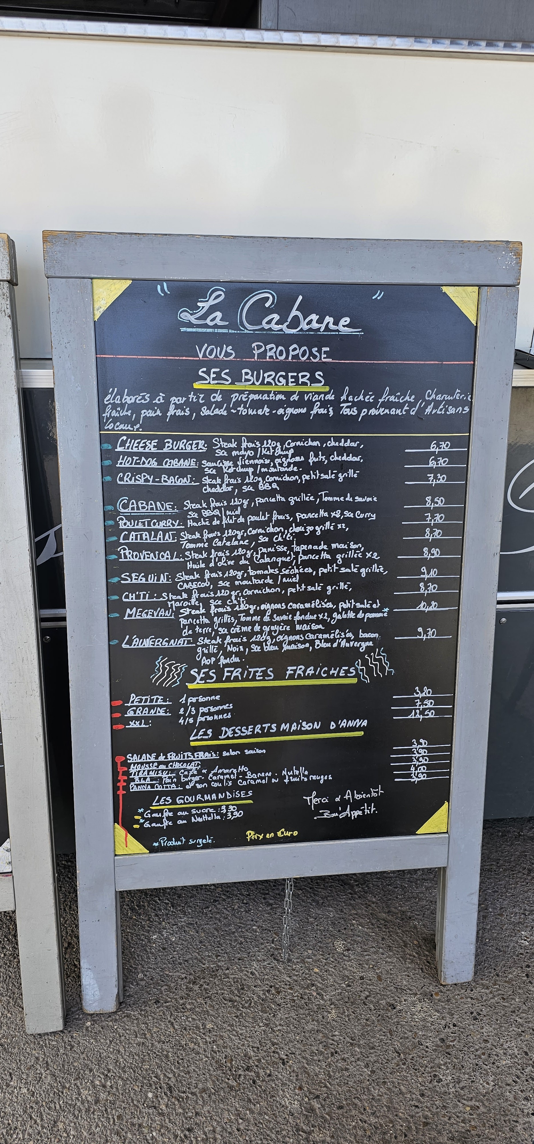 Top ! Découvert pendant les vacances, la cabane propose notamment des burgers savoureux avec un excellent pain buger (recette secrète du boulanger😉). Ce fut tellement bon que nous y sommes retournés. Vous y serez accueillis chaleureusement avec l'accent chantant du sud. PS : Merci d avoir récupéré la banane égarée 😁. Habitants proche de Disney 77, j'y retournerai à mon prochain passage dans la région.