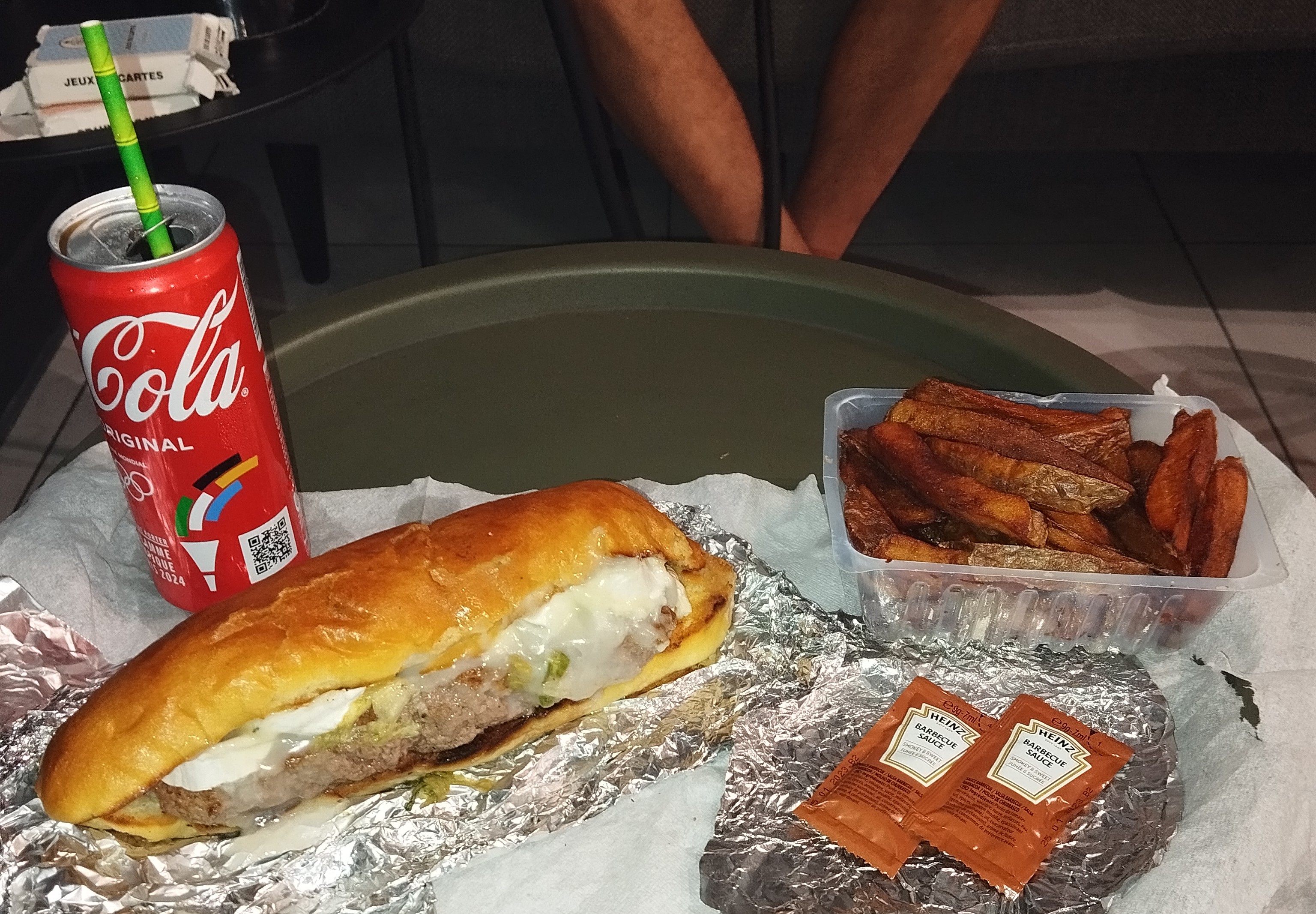 Malheureusement on n'a pas pu goûter, on fait la route depuis Nice pour tester les burgers de ce Tiktokeur mais il a déjà écoulé son stock à 19h45. Il faudrait changer l'heure d'ouverture ou revoir la gestion du stock.