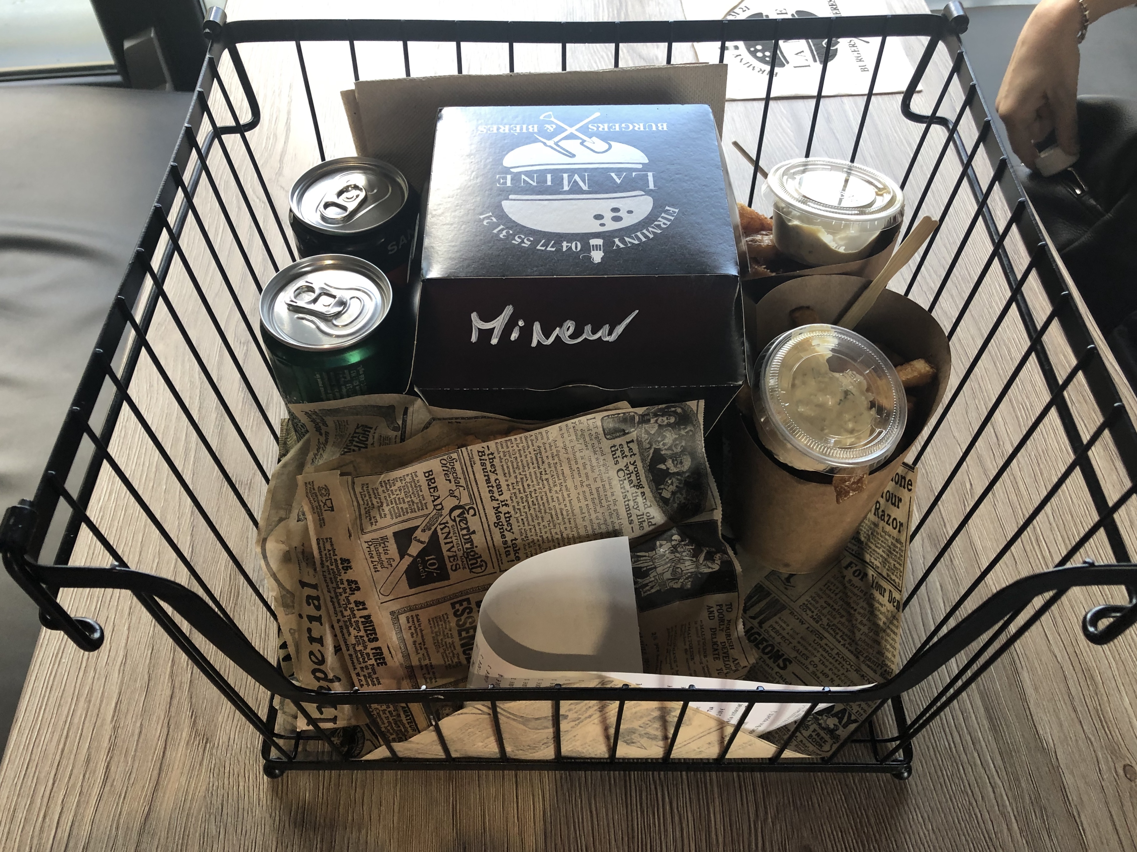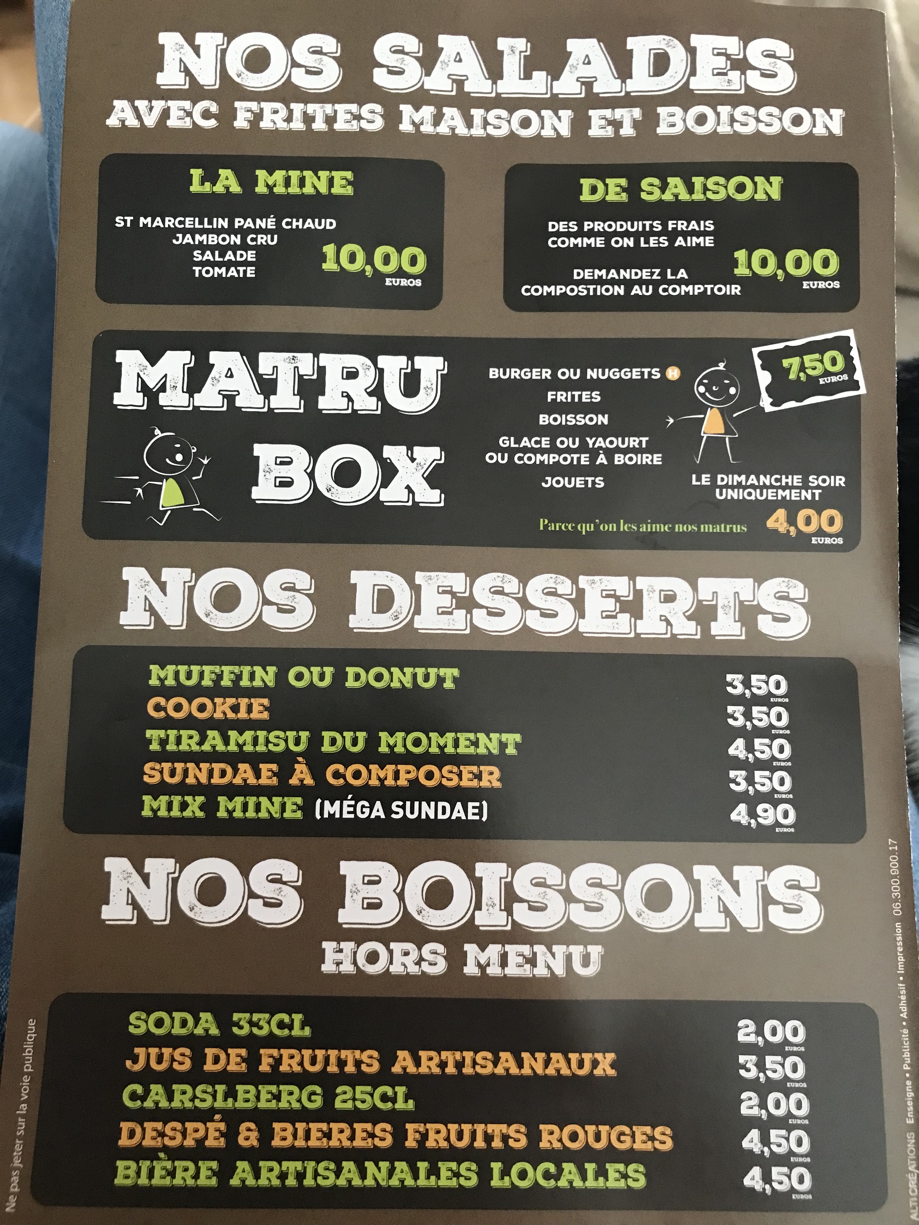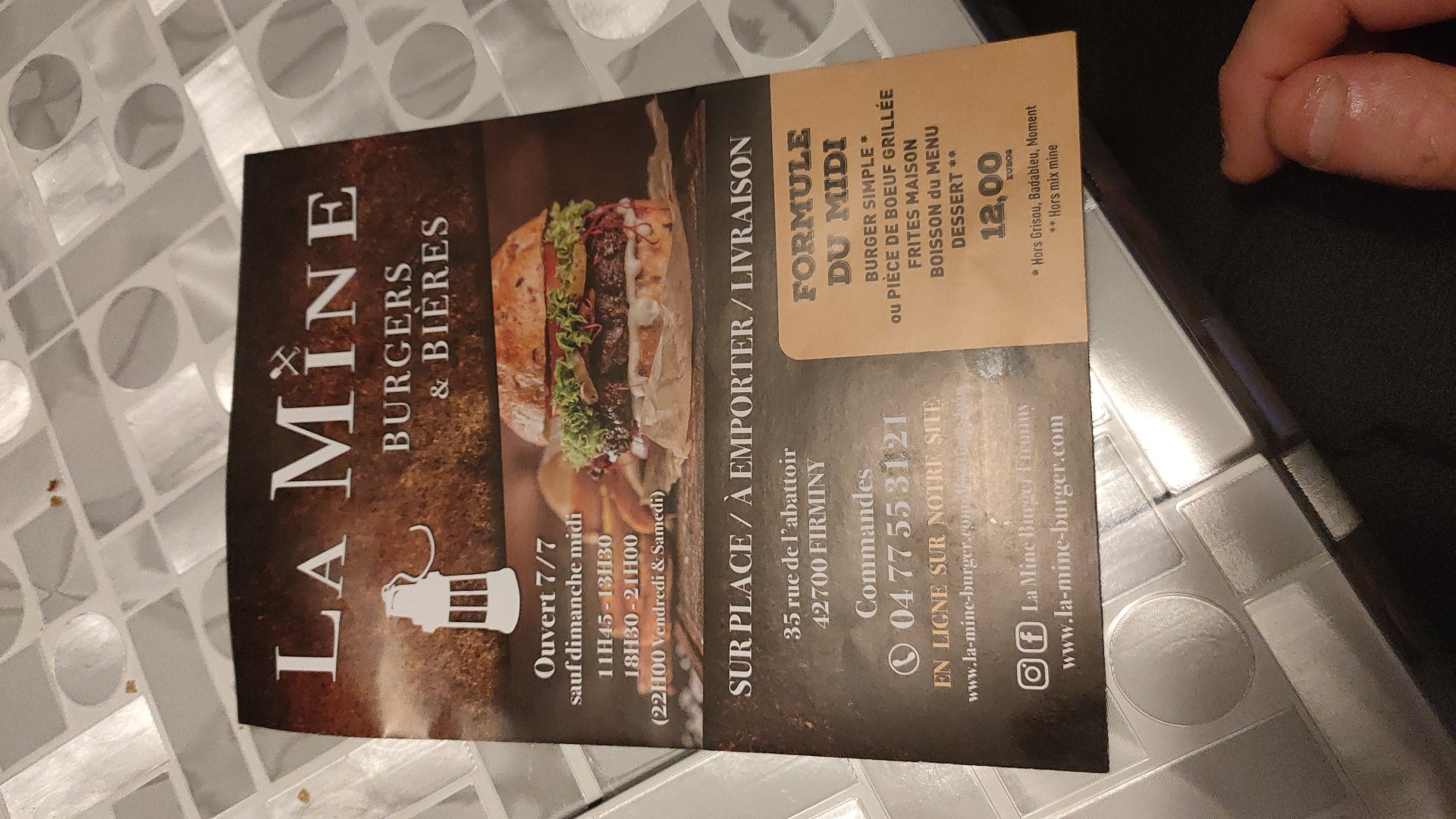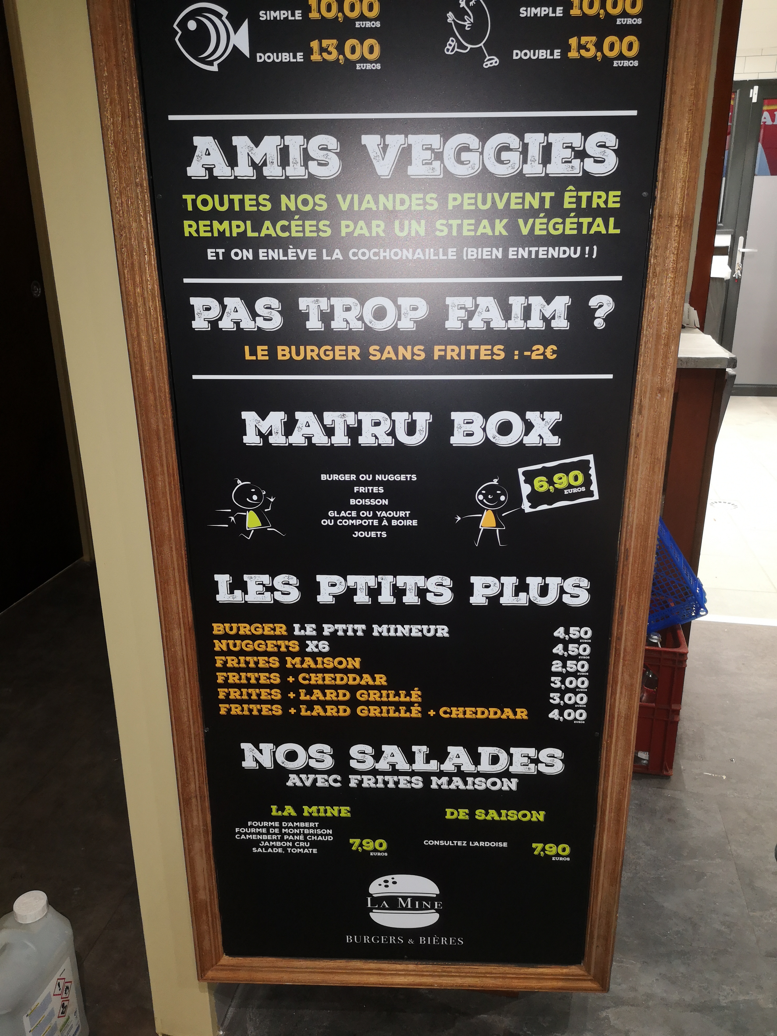Nous avons plusieurs fois commandé à la Mine , au début très bons il n'y avait rien à dire. Mais les 2 dernières fois où nous avons commandé nous avons été déçu..frites qui étaient franchement pas bonnes, pas cuites, grasses, molles..et burger où le fromage st Marcelin est posé comme ça sur le steak sans être fondu.. c'est dommage ..