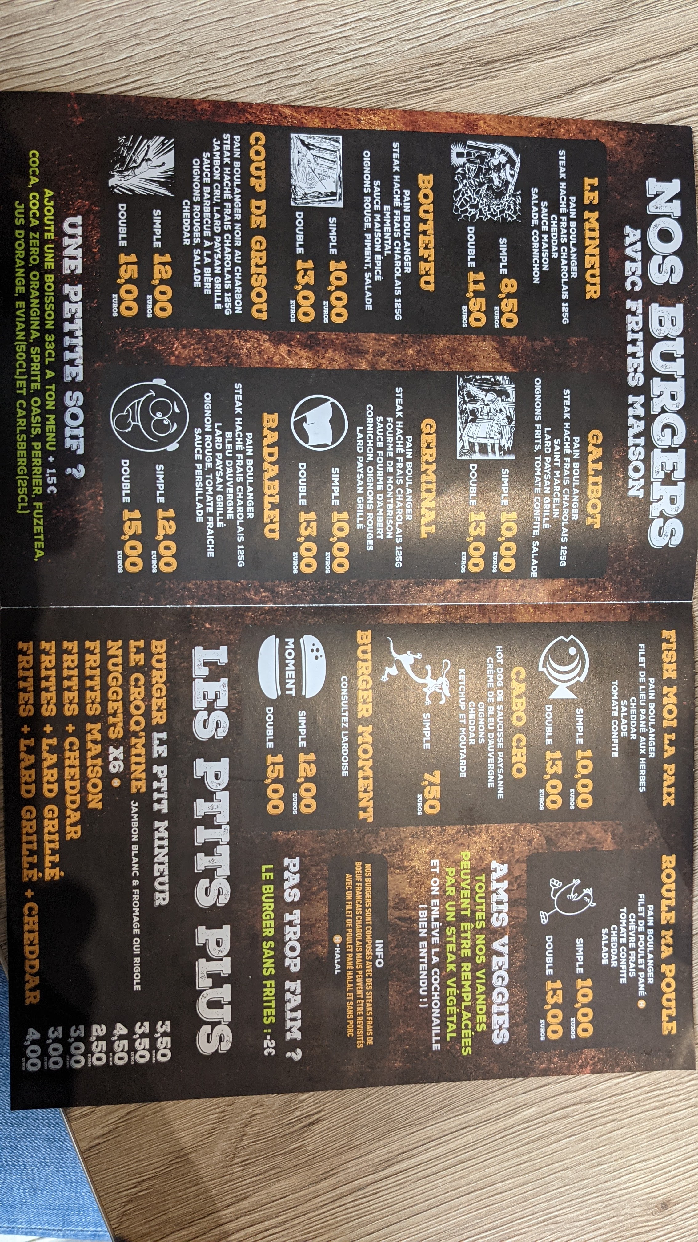 Nous avons voulu tester, franchement le top frites maison excellente,le pain super,la viande cuisson parfaite avec du goût ainsi que l assaisonnement, mon compagnon a pris a la fourme et pour ma part le mineur.La qualitée du service et des produits méritent largement le prix a refaire avec grand plaisir 👍
