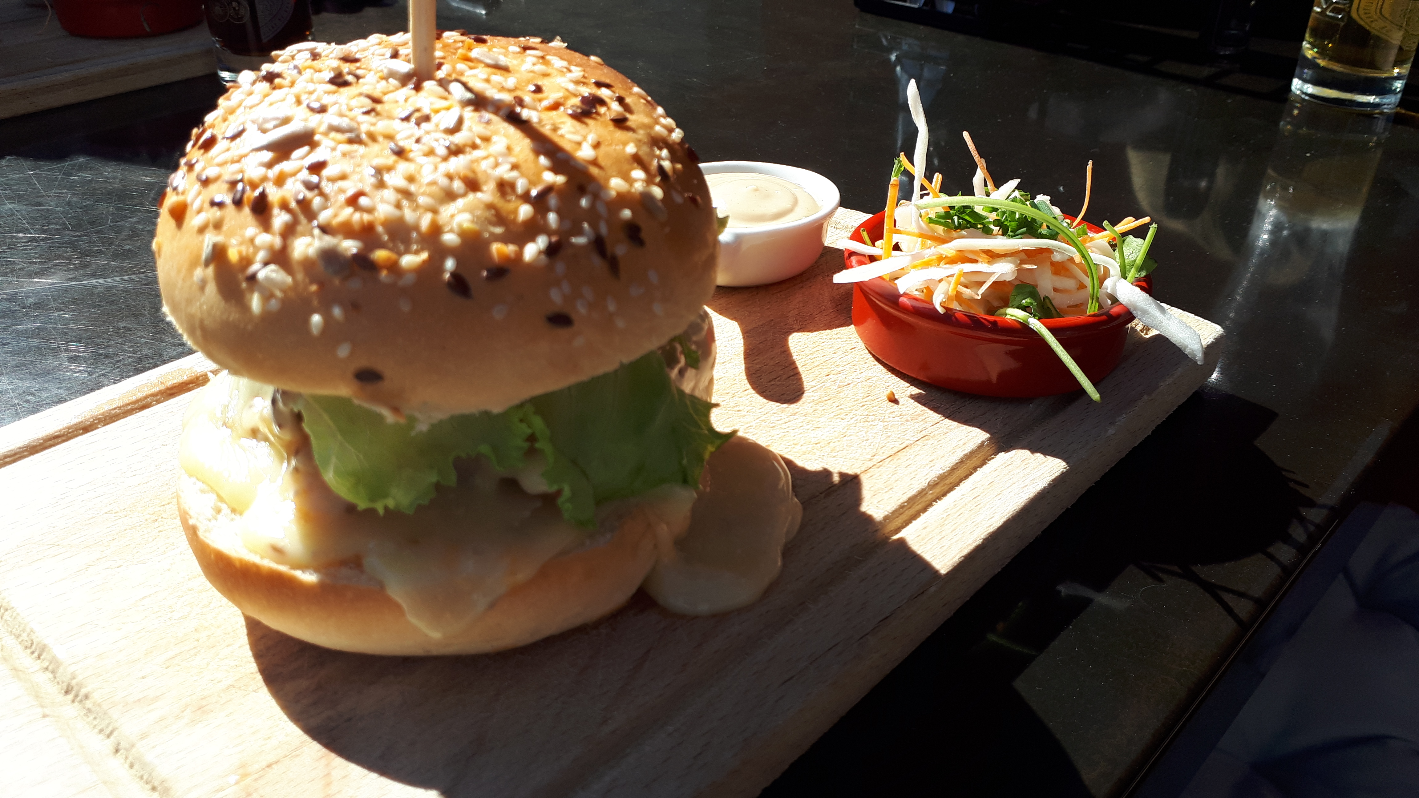 Super accueil. Des hamburgers pour affamés préparés maison avec des produits locaux. Très goûteux.
