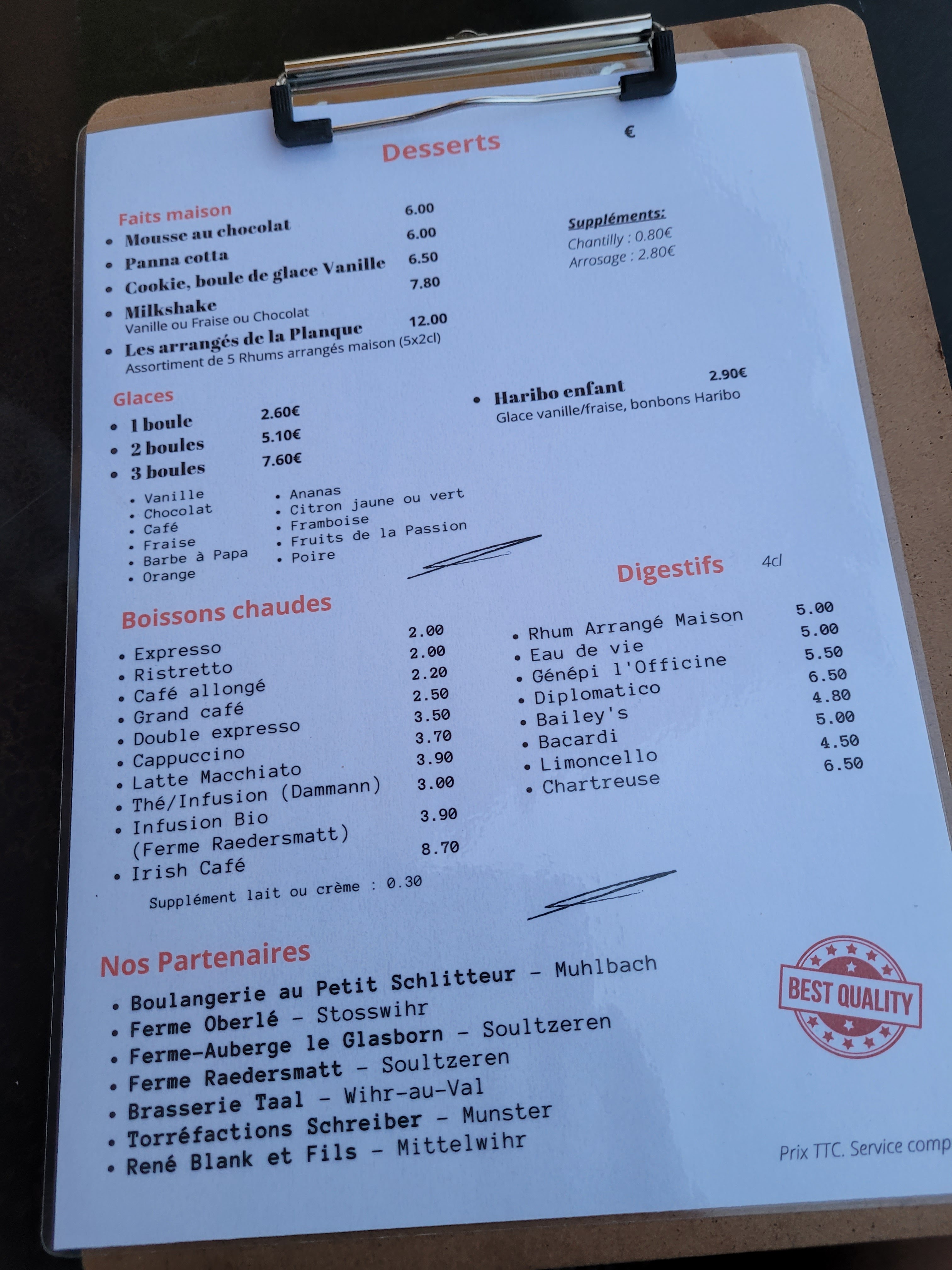 De passage à munster nous nous sommes arrêter dans ce petit restaurant, qui a su nous combler grâce à toute sa carte faite maison ainsi que les sauces et plusieurs sirops, rhums eux aussi fait maison. L'équipe de ce restaurant est très chaleureuse on y sent une ambiance familiale qui fait plaisirs. Je recommande à 200%