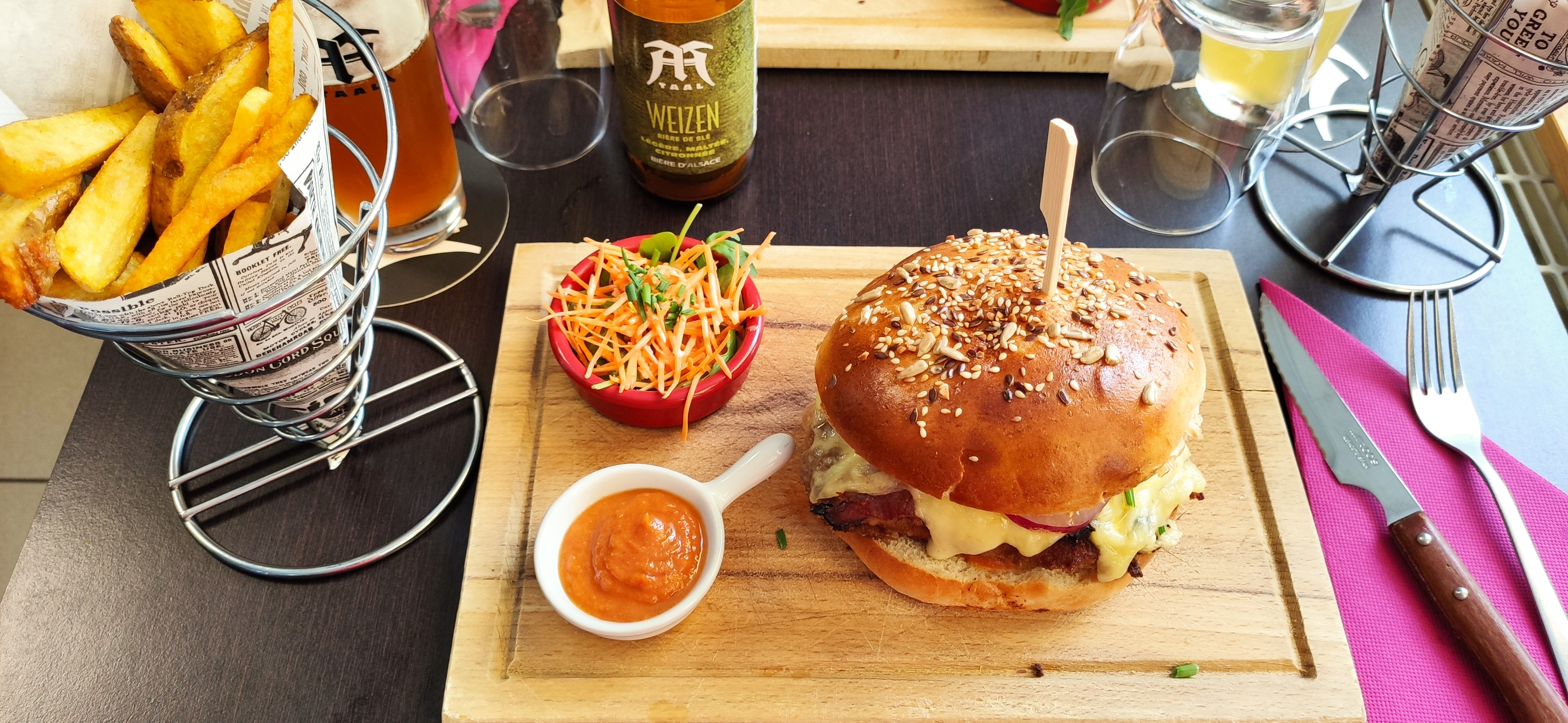 Vos burgers sont excellents Merci pour ce bon moment passé De passage à Munster étant du Jura Je recommande vivement ce restaurant Grande qualité de la cuisine Bon service