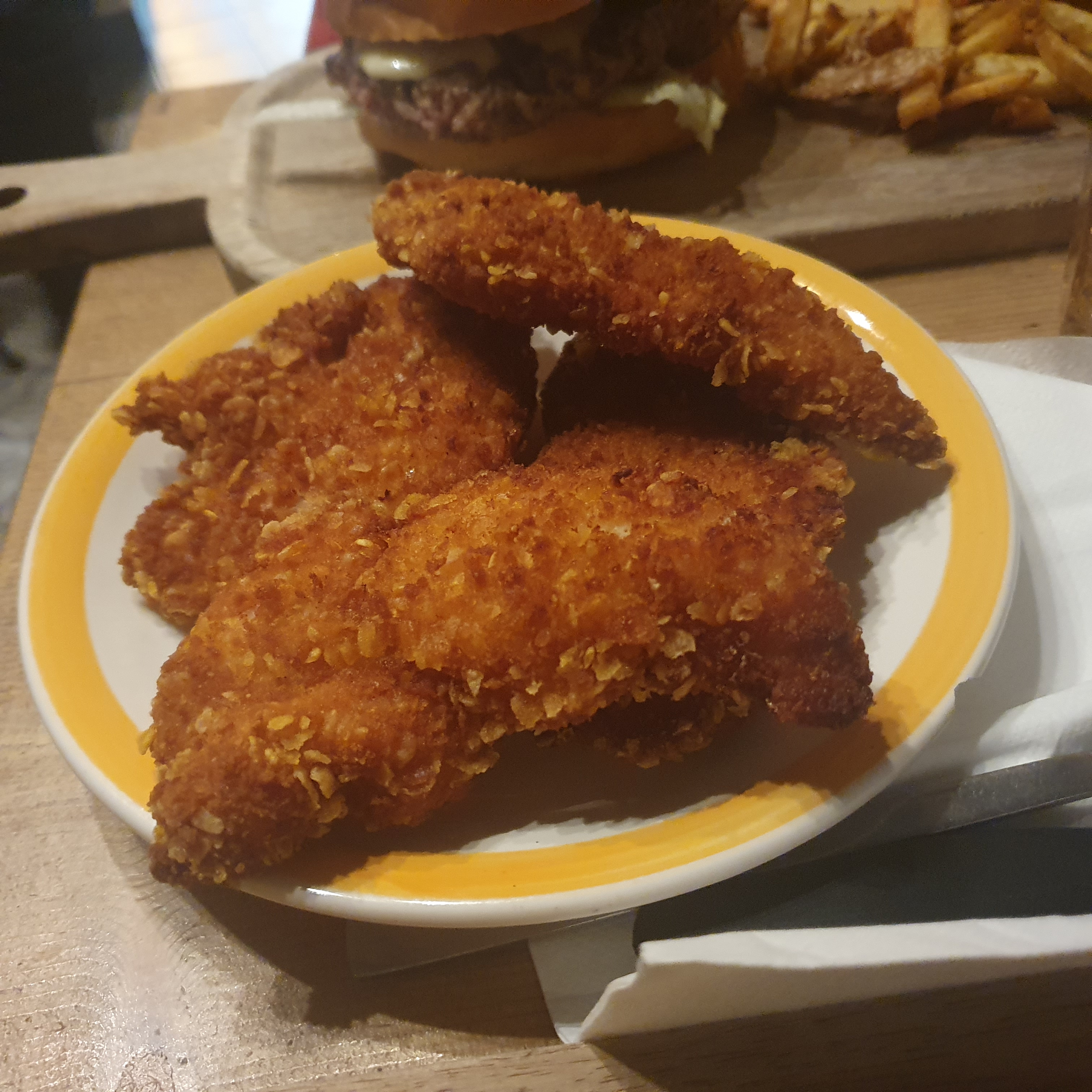 Commande sur ubereats. Les tenders étaient aussi généreux que délicieux, un très bon burger, des buns tendre et fondants, une super adresse. Le seul bémol, les mozzarella stick étaient très dures, et avec beaucoup trop de panure (probablement pas faites maison), pareille pour le cheesecake, crème très écœurantes et coulis mangue passion trop amère