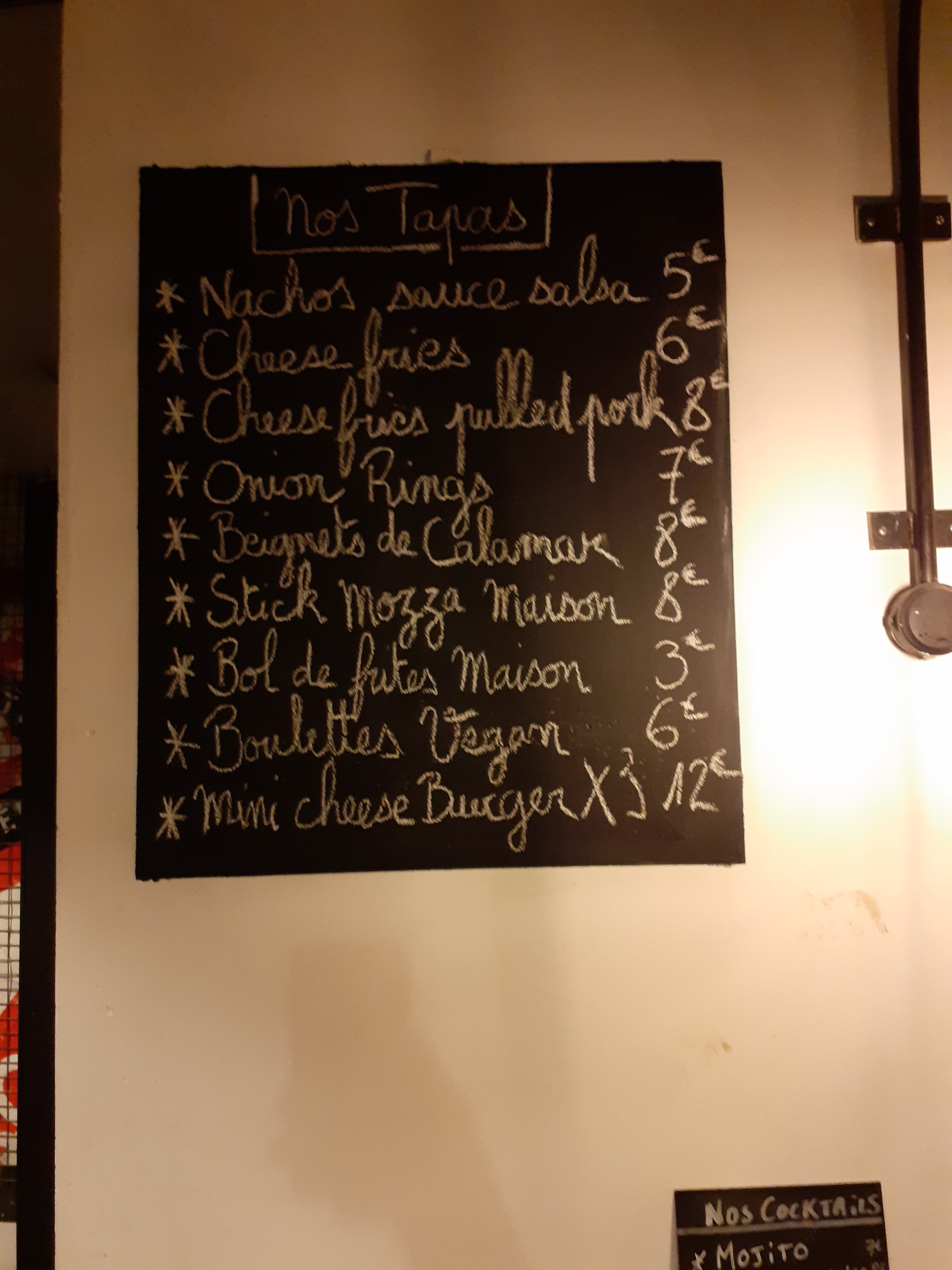 L'établissement propose une belle gamme de bières de qualité, un peu originales parfois, et des accompagnements type tapas, onion bread, tacos et guacamole... avec les boissons. Bonne adresse quand on ne sait pas choisir entre un restaurant et un bar ! Bémol, service un peu lent, pas assez de personnel le soir de notre visite.