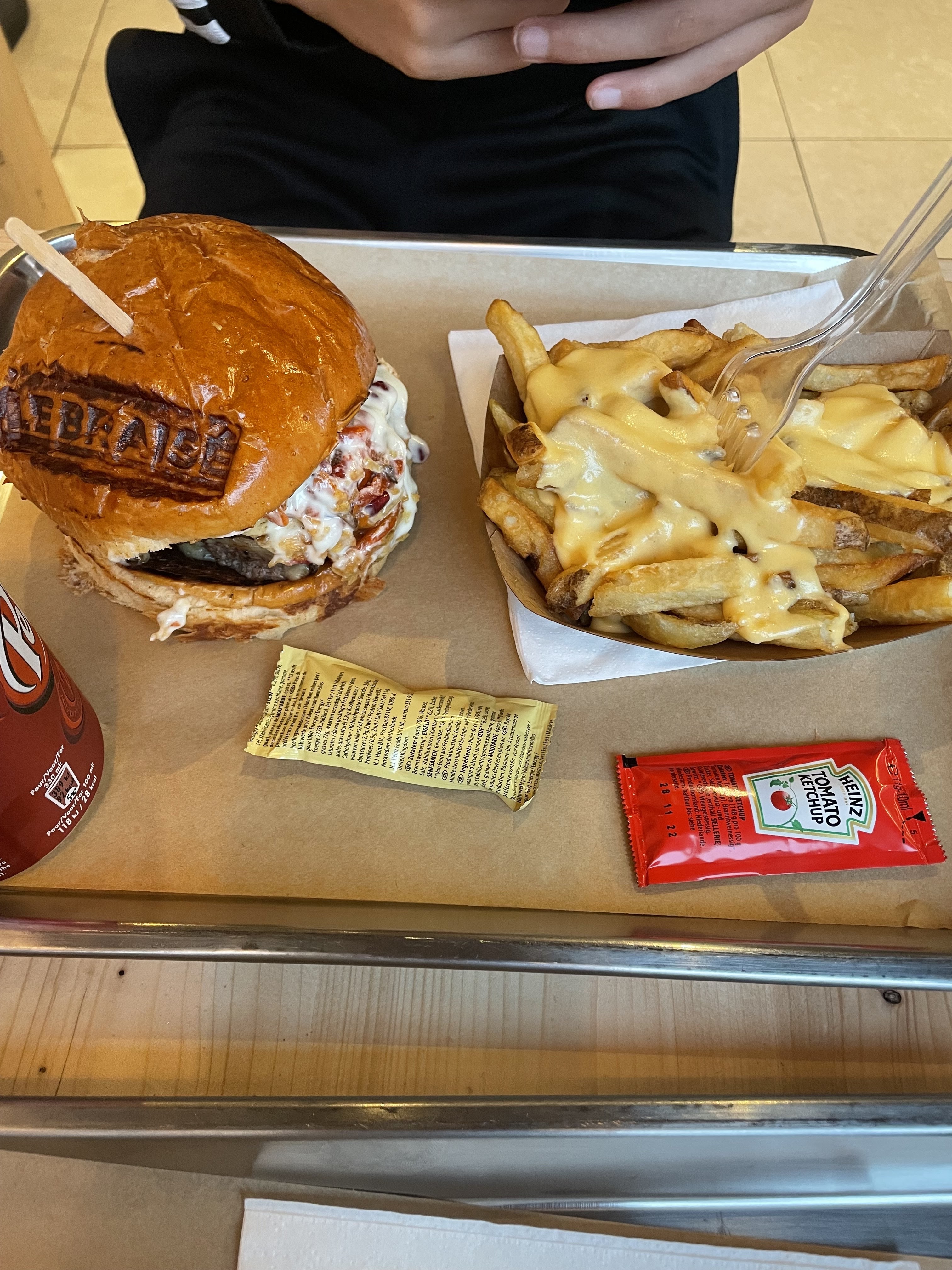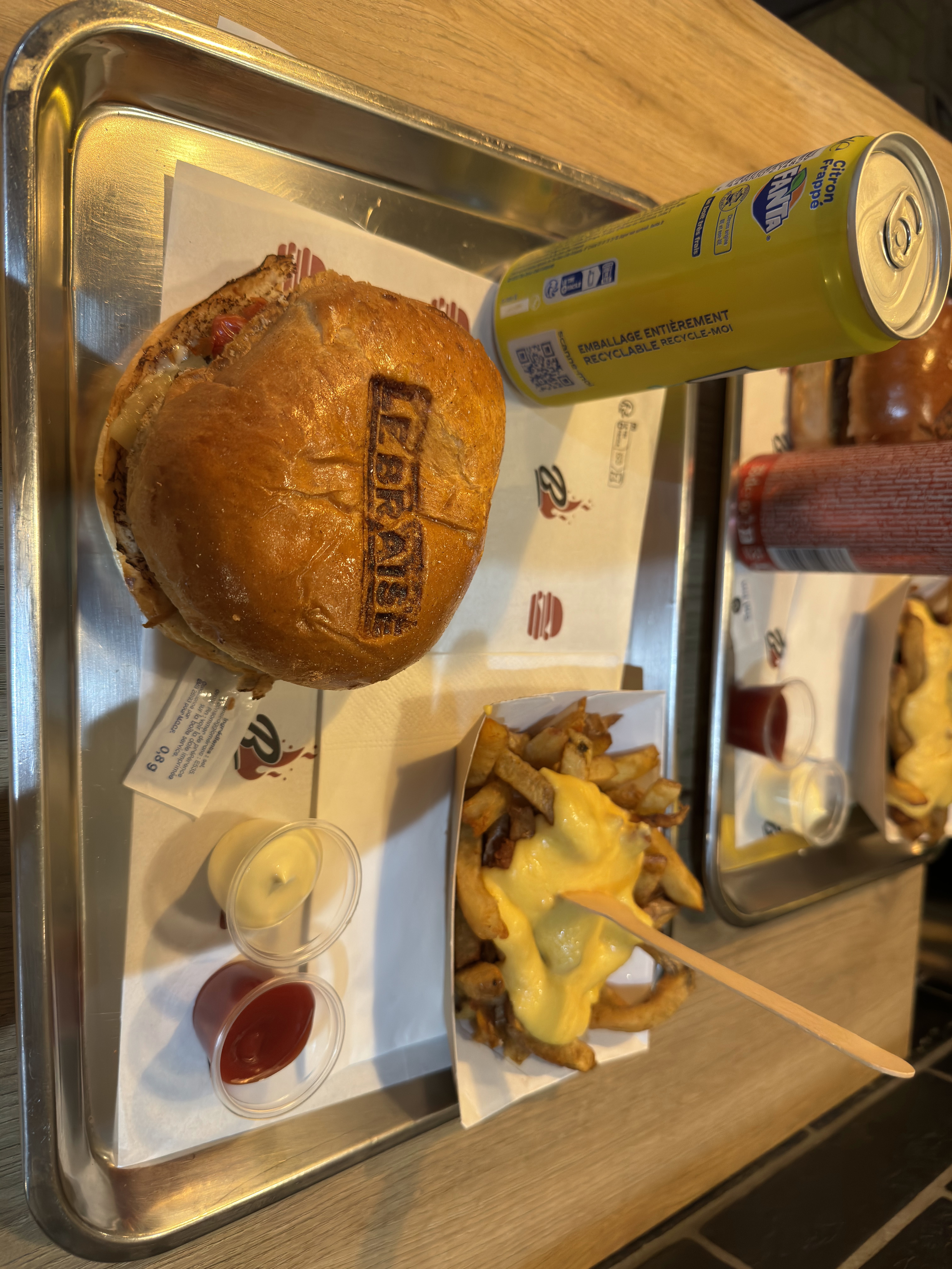Bien placé, propre, personnel accueillant et souriant. Depuis l'ouverture nous voulions y aller, mais pas le temps... bref avec la pub sur la viande braisé 🥰 nous l'avons idéalisé, Mais malheureusement nous n'avons pas apprécié, cela ne veux pas dire que ce n'est pas bon... on a bien vu que les aliments étaient frais, peut-être ai-je mal choisi mon burger... J'ai pris un savoyard donc 150 gr de bœuf braisé, salade romaine, raclette, bacon de dinde, oignons caramélisés, sauce mayonnaise. J'ai trouvé que les aliments ne se sentaient pas assez, qu'avec le pain brioché c'était très sucré, ça à pris le dessus sur tout, je ne sentais ni le fromage, ni le bacon. les frites n'étaient pas suffisamment cuites (à notre goûts) les sauces n'étaient pas maison (sachets individuels heinz) Et les boissons en canettes sans verre mais cela reste un fast-food.