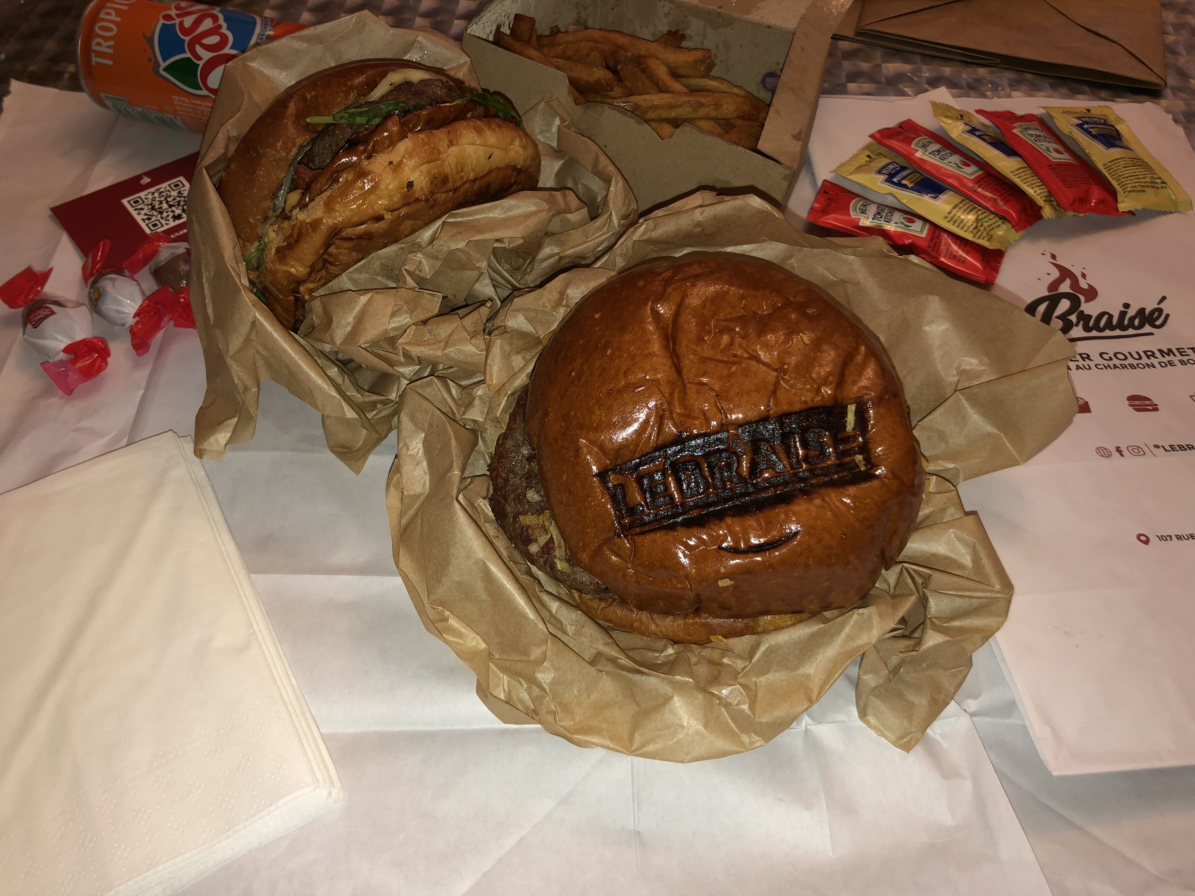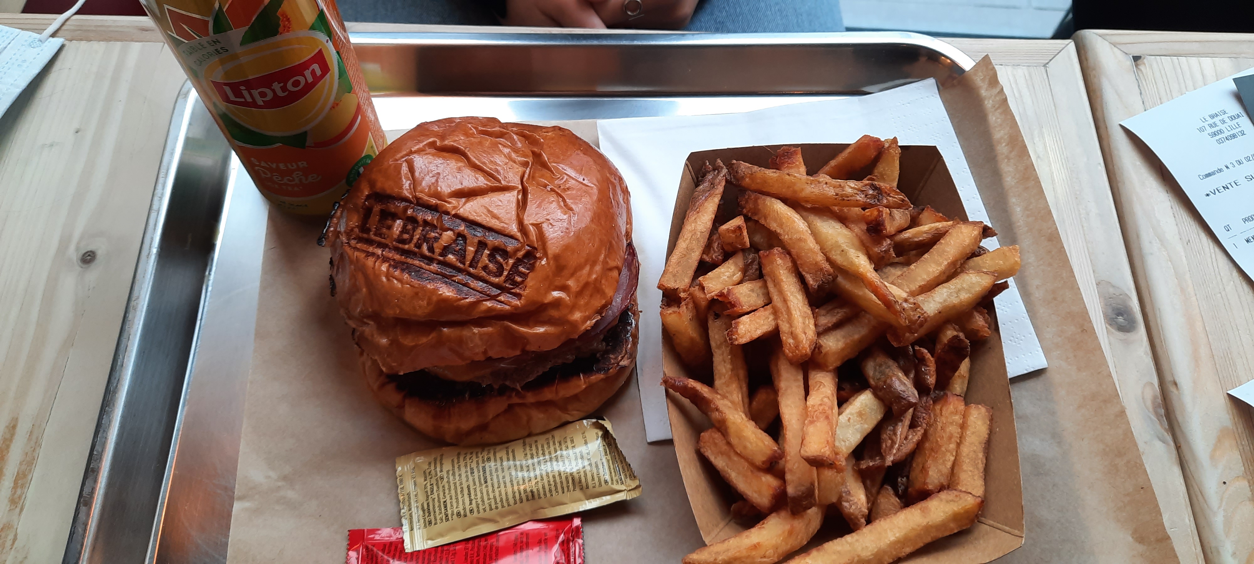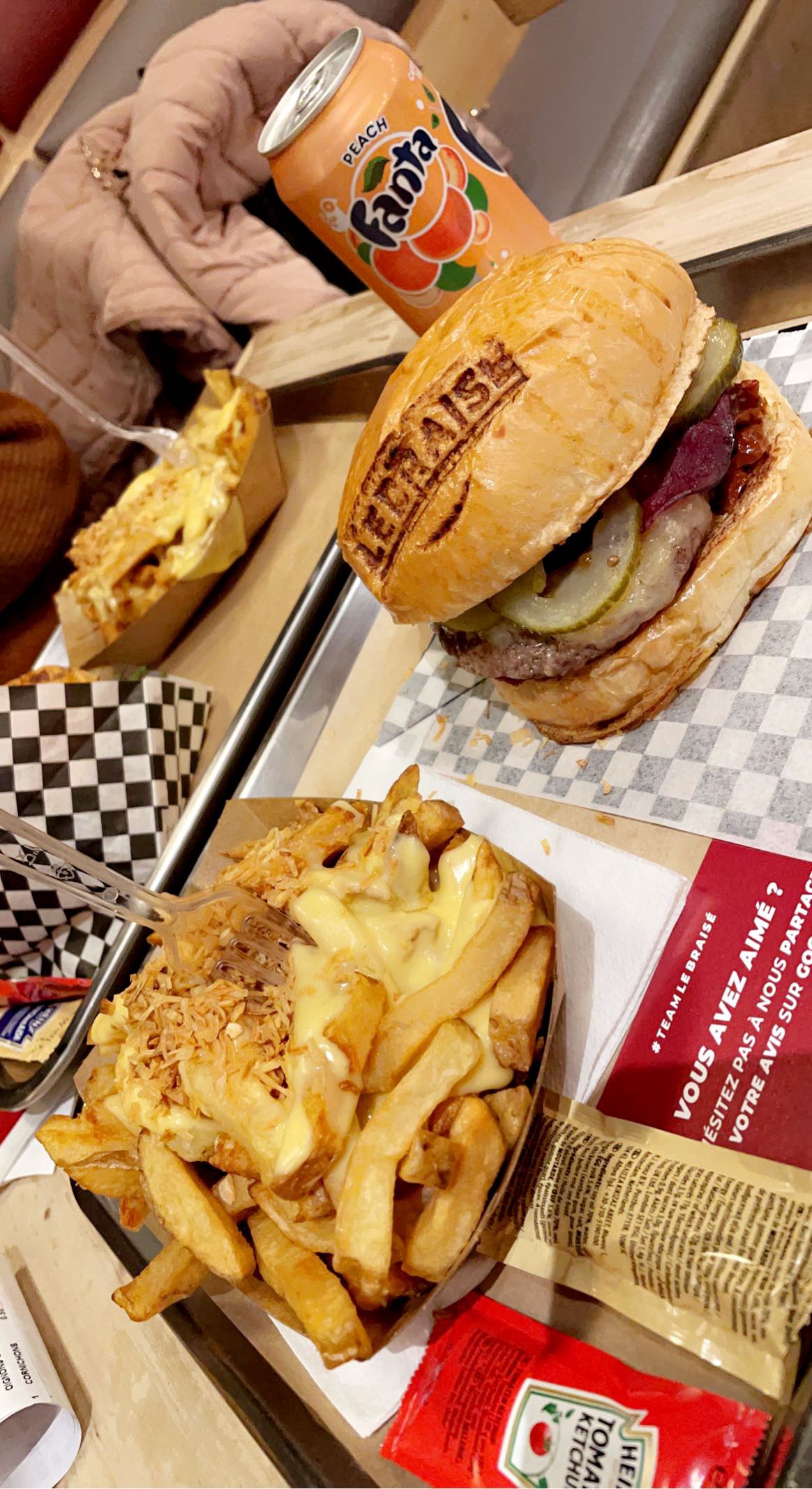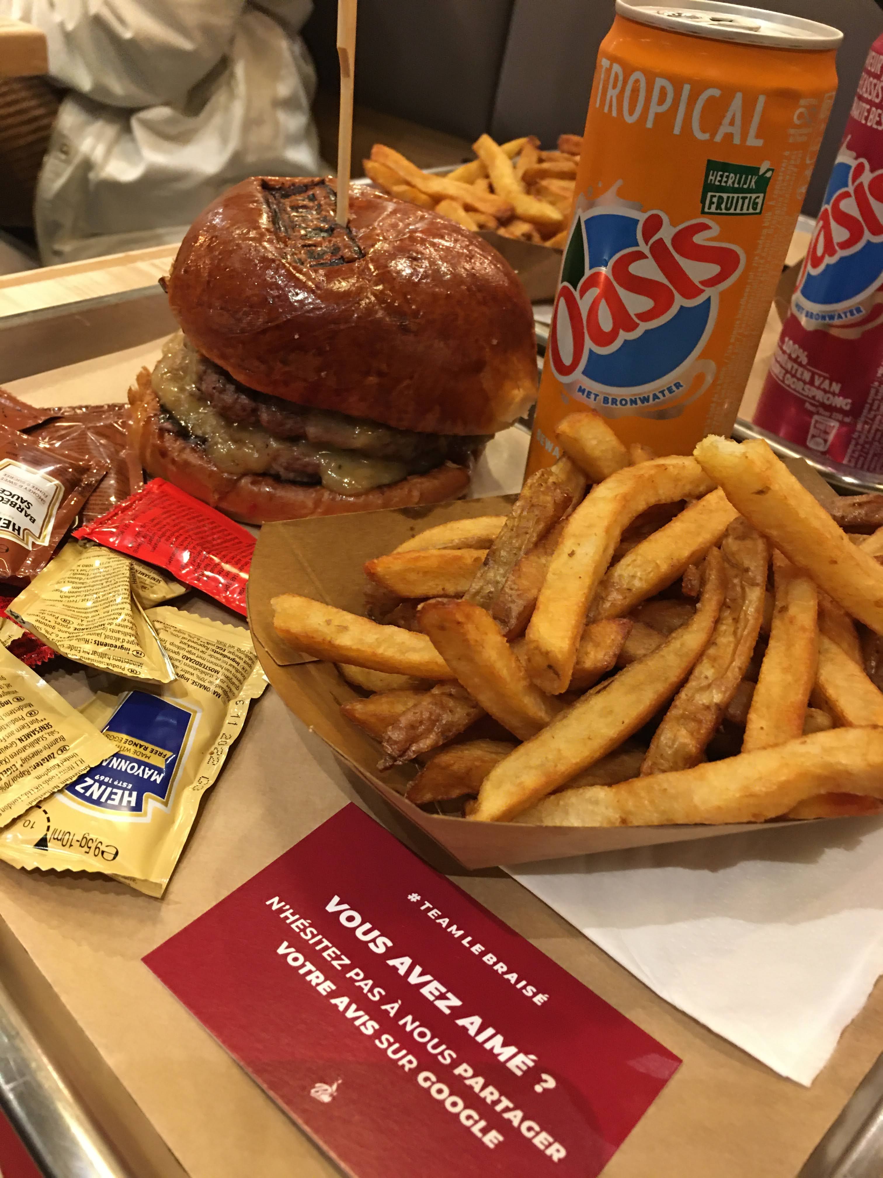 J ai tenté le braisé récemment, en livraison à domicile (merci Ubereat ;) ) Pour ma part, le burger était DELICIEUX , j ai vraiment adoré le pain moelleux, les tomates séchées roquette etc c etait juste parfait .Mais quelle déception pour mes invités, leurs choix on était intervertis, c est à dire que le cuisinier c est emmêlé les pinceaux dans les sauce et condiments... donc mes amis on du tout enlever à l interieur ... car vu le prix et avoir que le pain et le steak c est moyen ... Je sais que ça doit pas être évident de tout faire à la fois , mais faites attention pour la satisfaction de vos clients :)
