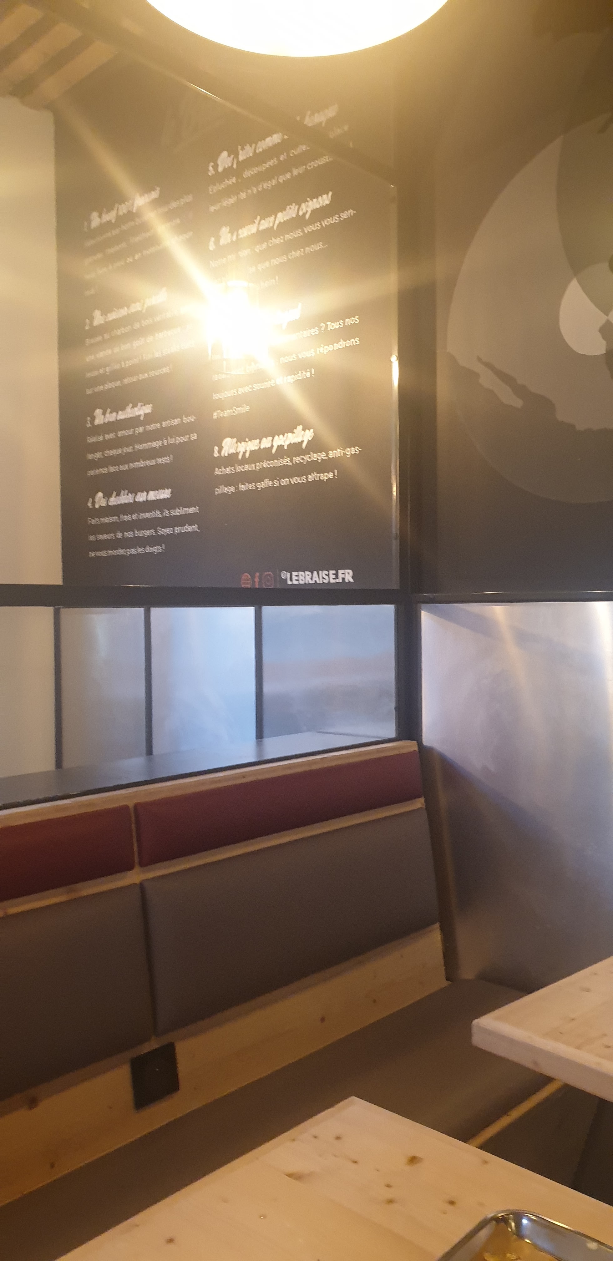 Mince ! On aurait vraiment aimé que le tout vous plaise... Pour le goût du steak à la braise c'est possible que vous ayez pris un burger avec pas mal d'ingtetiens et donc que le goût soit moins prononcé et pour les frites snif snif pourtant on a une des meilleures réputations de la région ! Merci d'avoir testé en tout cas ✌️