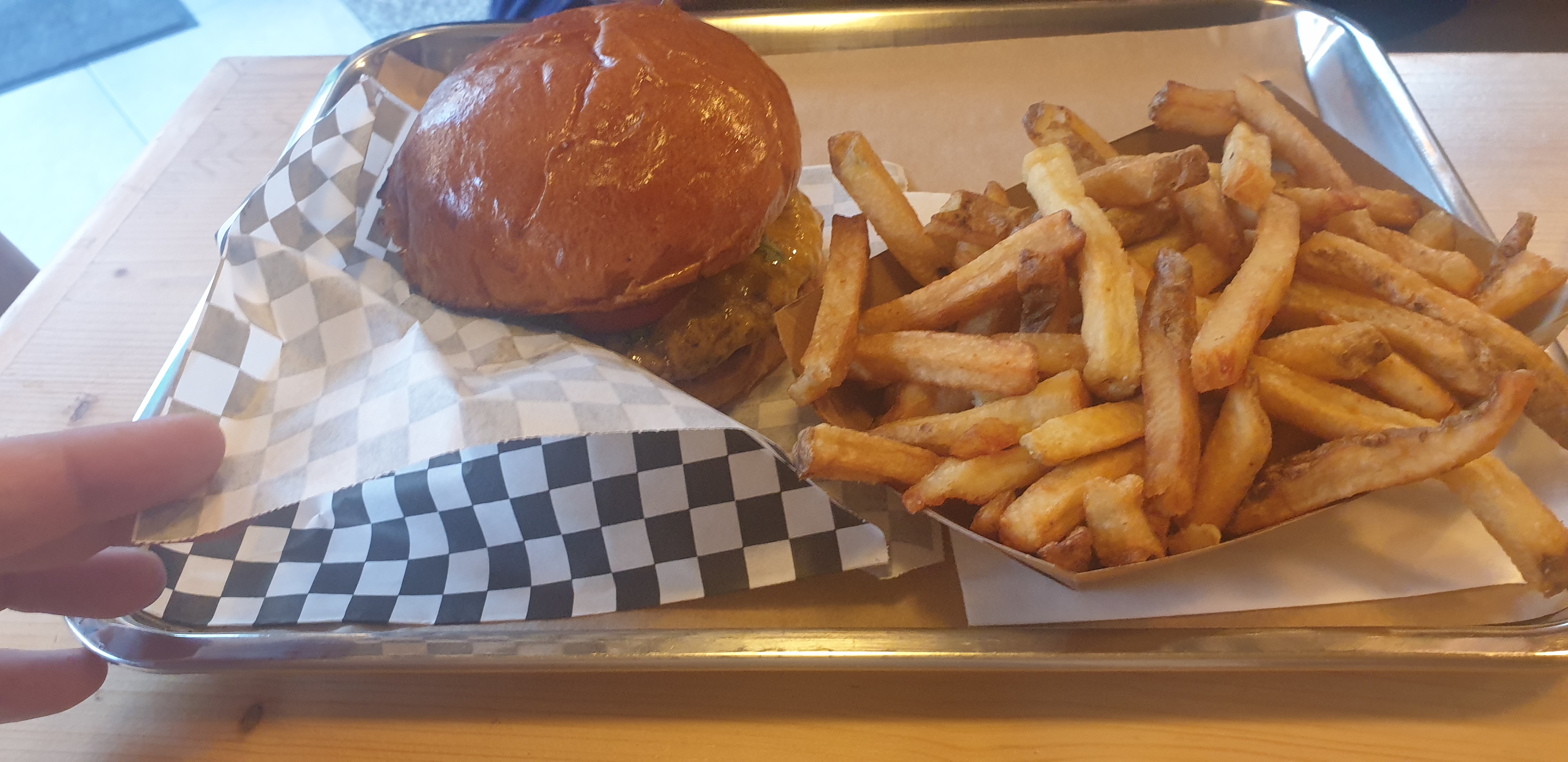 Un délice ! Burger et portion de frites généreux, personnel très agréable et menu original. Je recommande :)