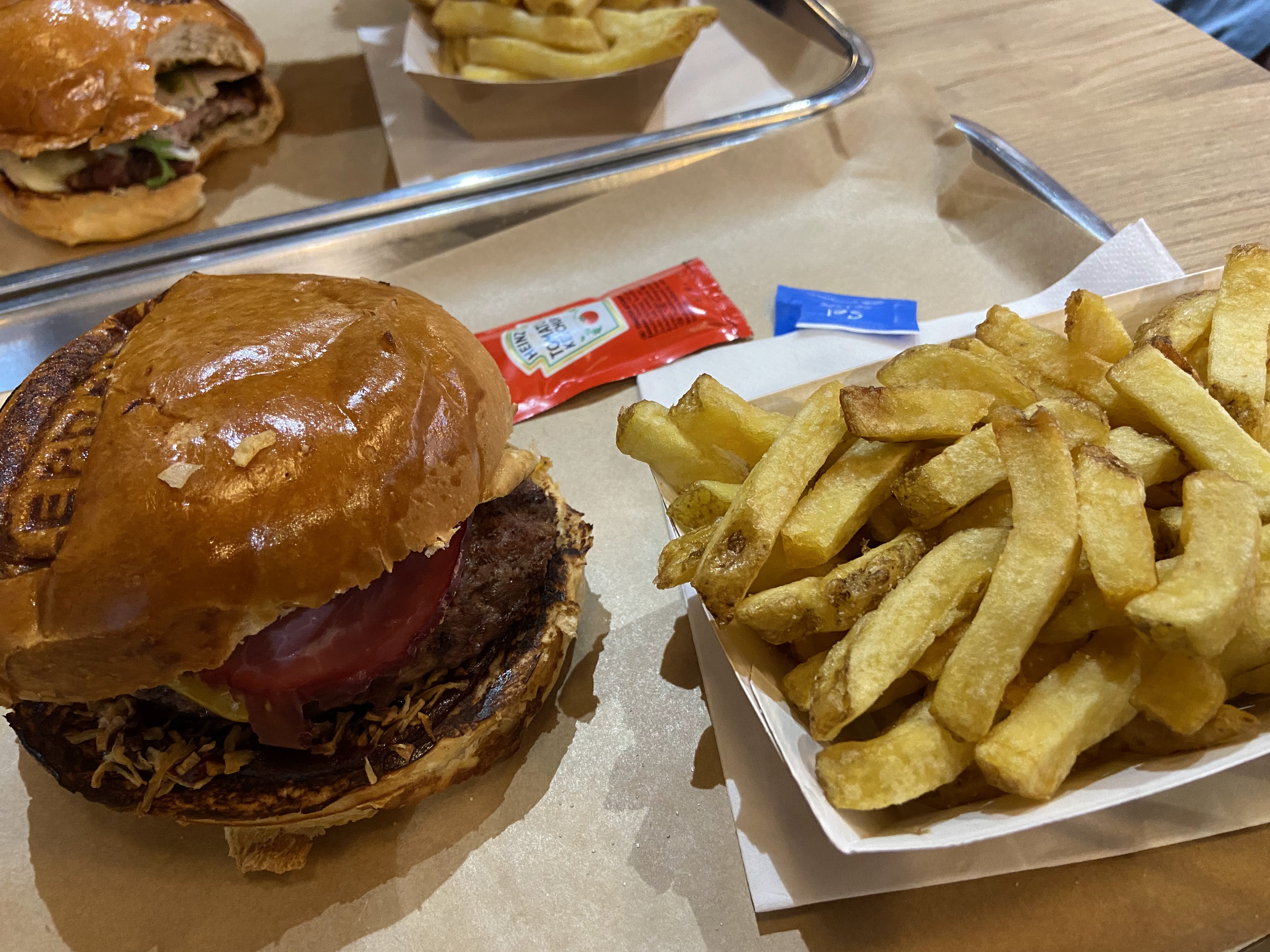 Je suis actuellement en train de dégommer un burger c’est super bon. PS : mettre des vraies sauces en accompagnement avec les frites et c’est parfait !!