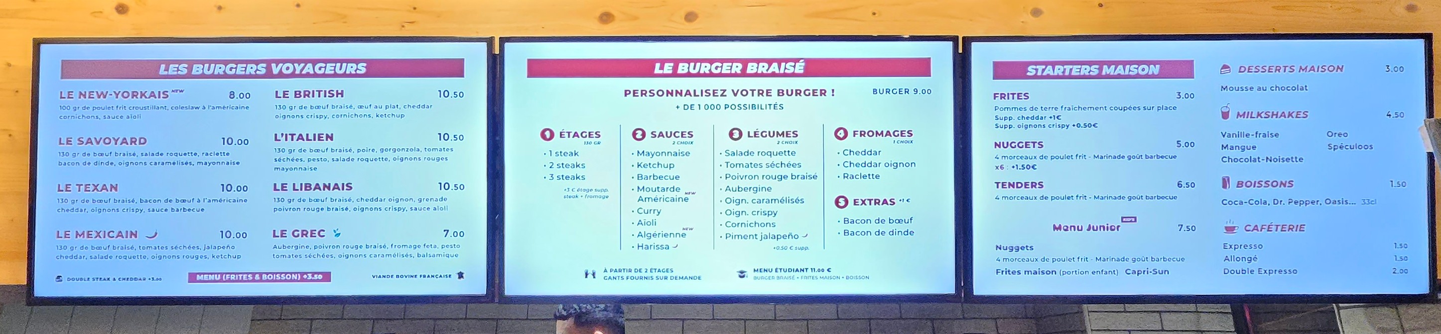 Alors la ! Les choix sont parfait, et les burger sont incroyables 😊 Juste les frites au cheddar que je n’ai pas apprécié