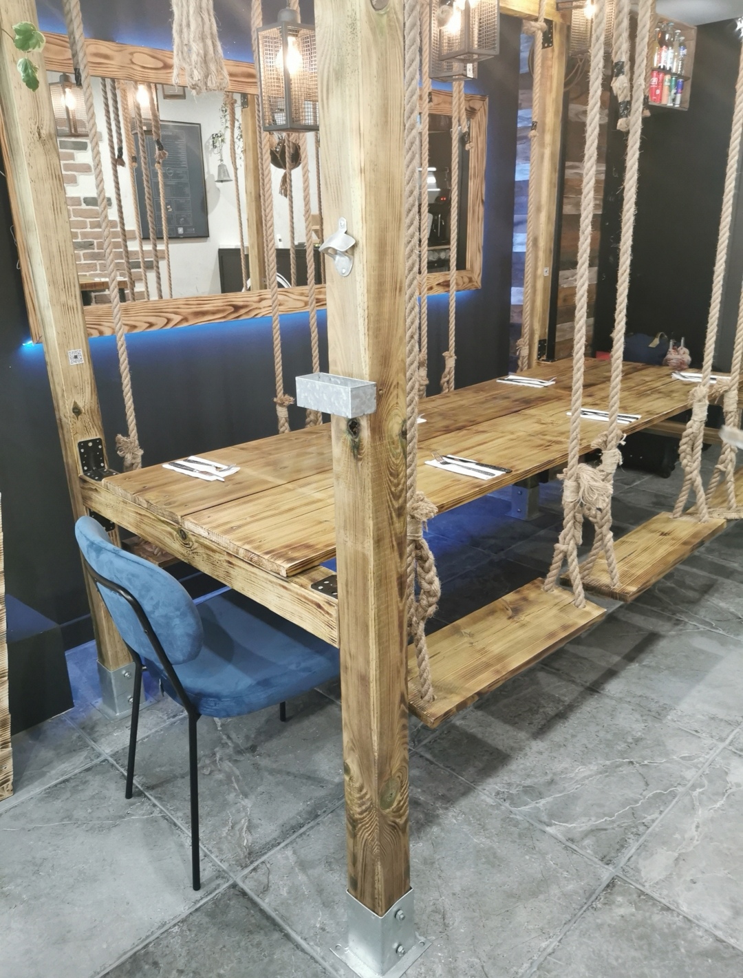 Un restaurant qui en vaut le détour, des burgers fait maison, des produits frais on s’est vraiment régaler. Décoration très sympa avec les balançoires. Personnel tres gentils on vous recommande d’y aller . On reviendra 😍