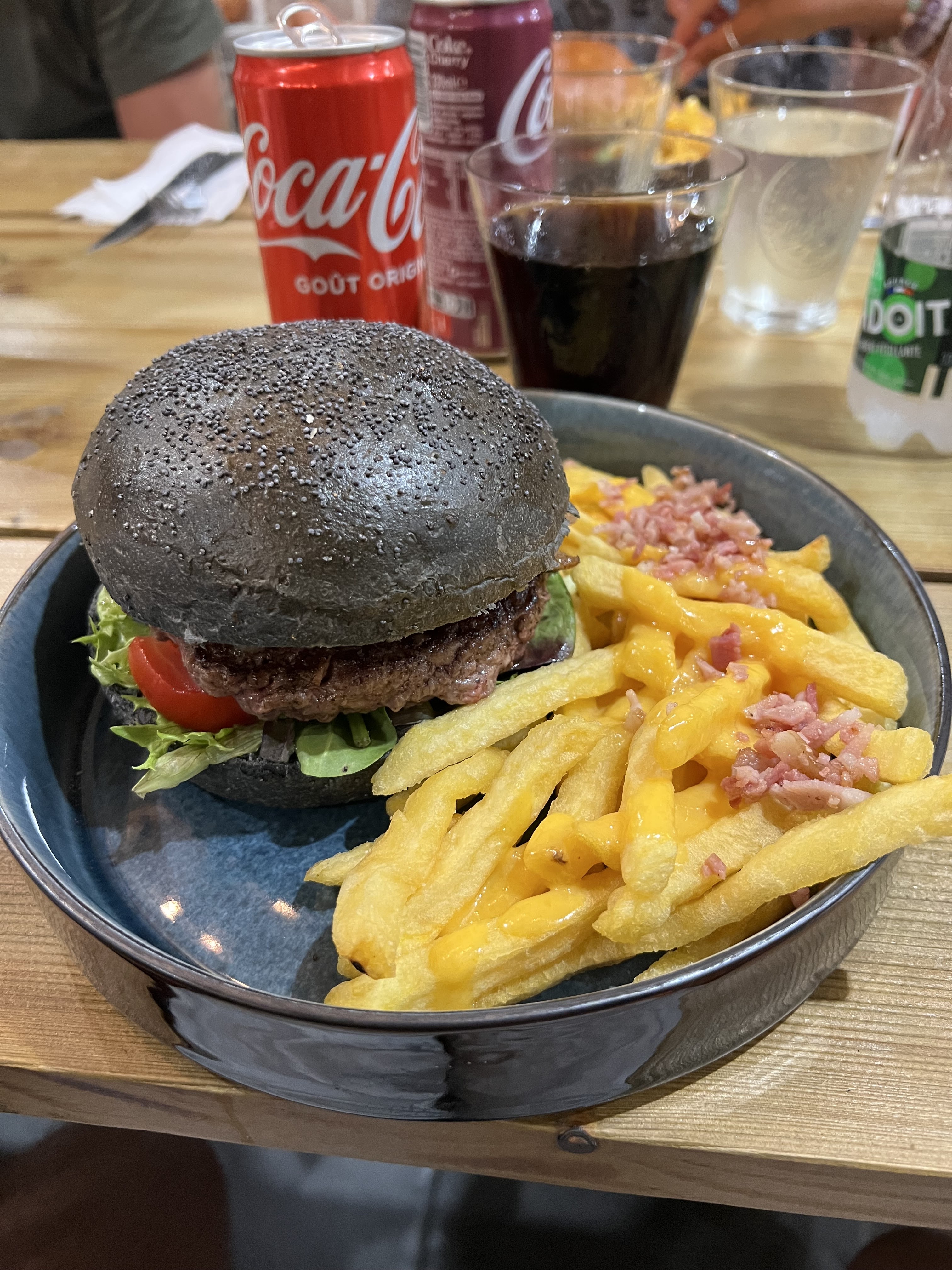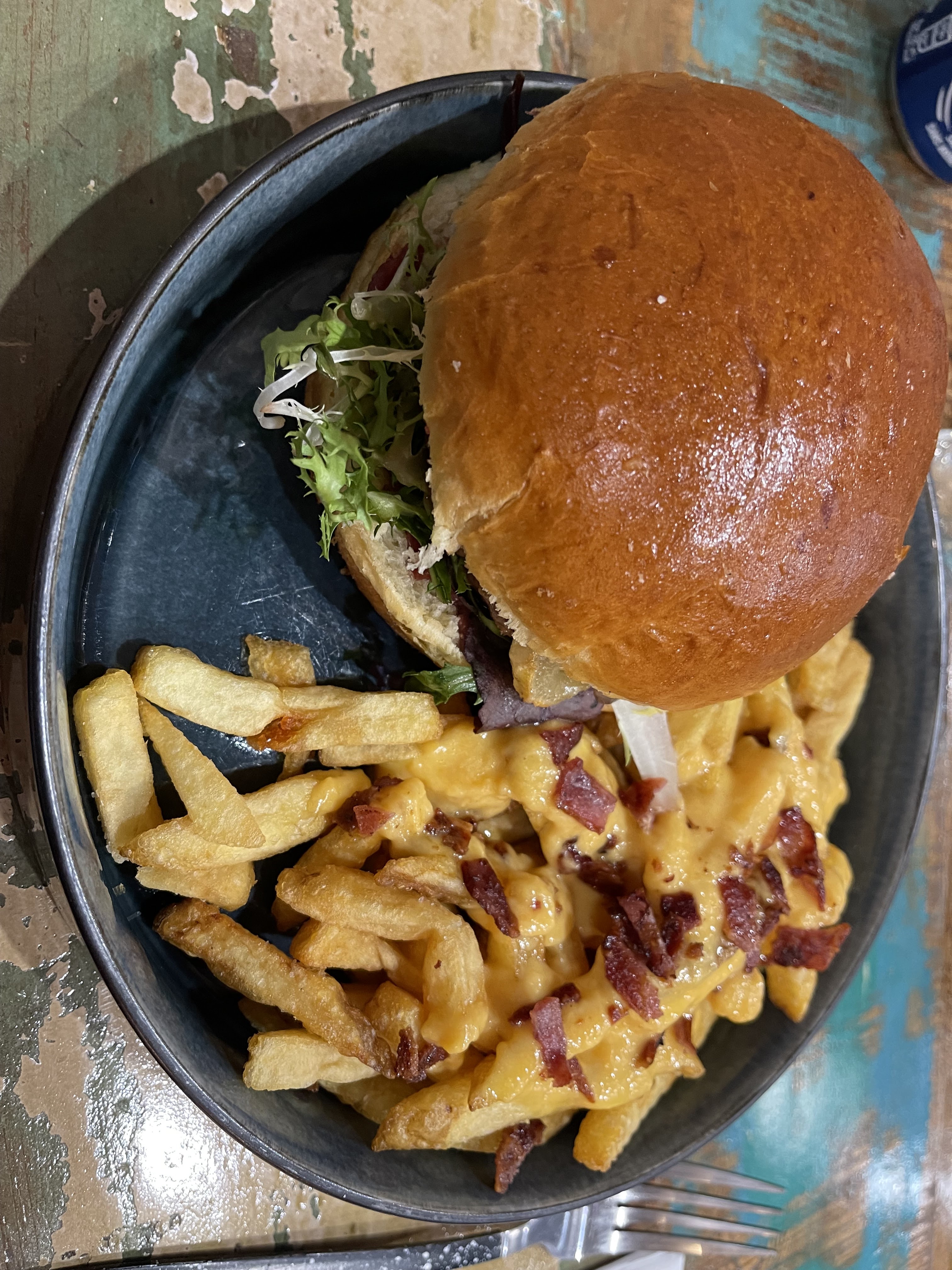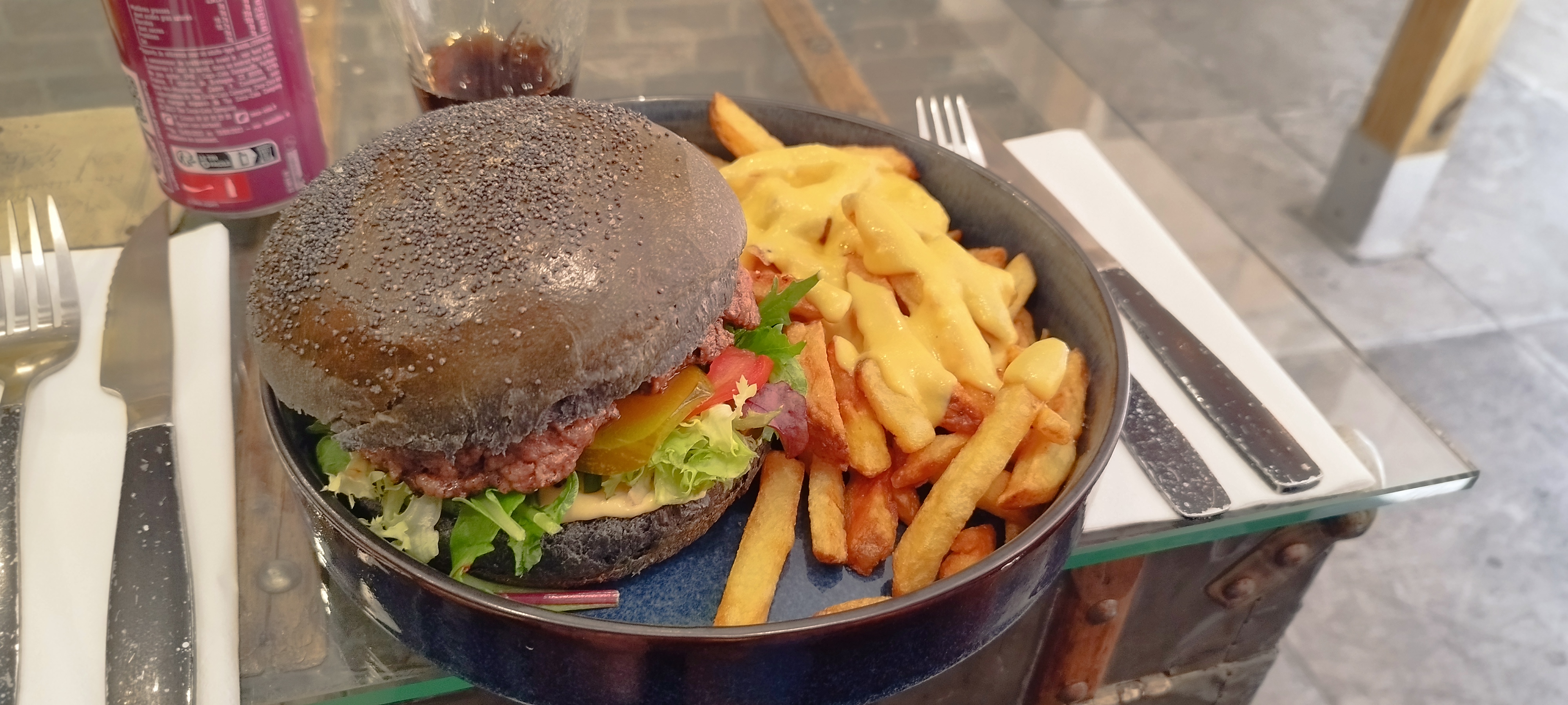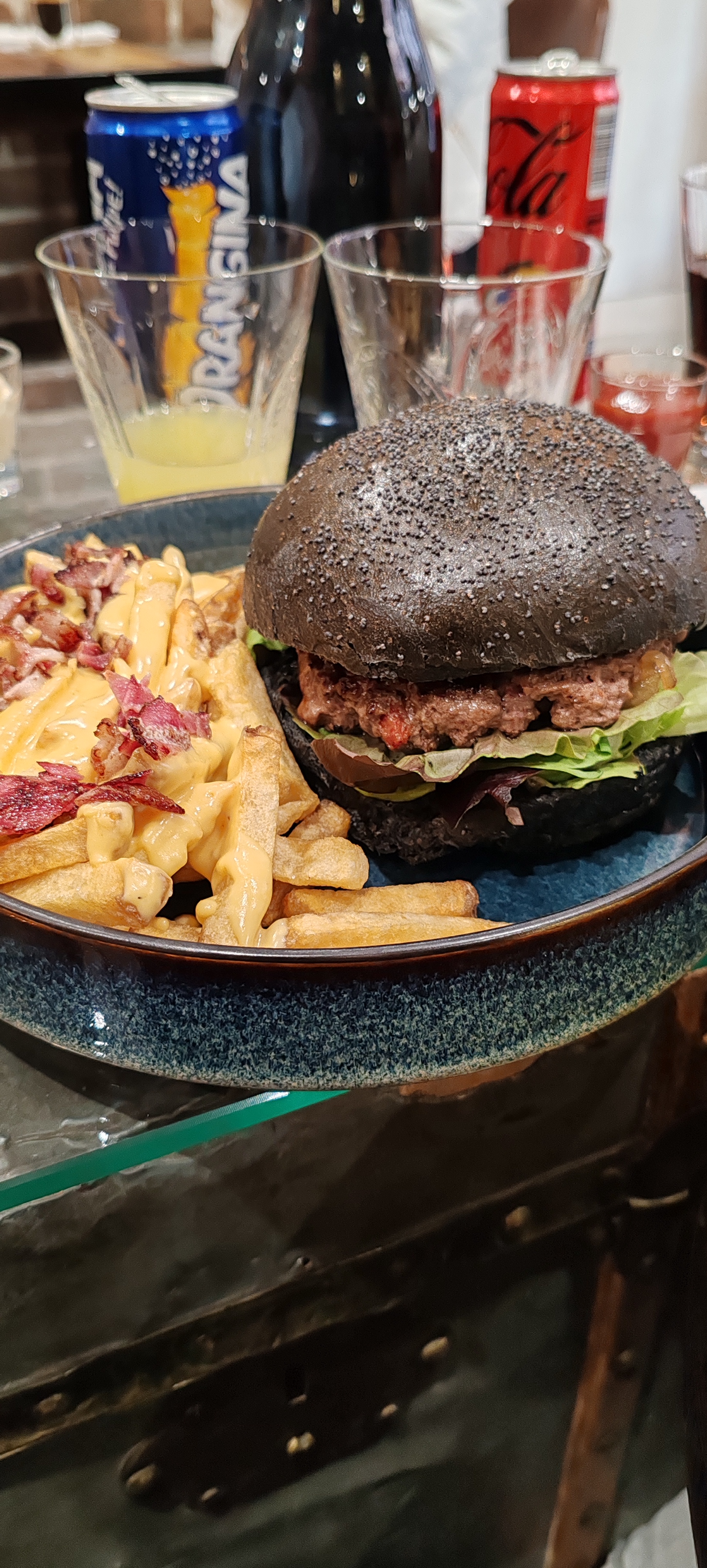 Le décors du restaurant est sympa. J'ai pris un clermontois mais j'avoue ne pas être pas fan du buger au pain !!! Manque de garniture , les frites au bleu sont molles et pas de très bonnes qualités. Cependant le burger de ma copine était lui un peu plus garnis mais nous nous attendions vraiment a beaucoup plus qualitatif aux vu de la com et des commentaires. Nous n'avons pas vraiment apprécié notre expérience chez vous .