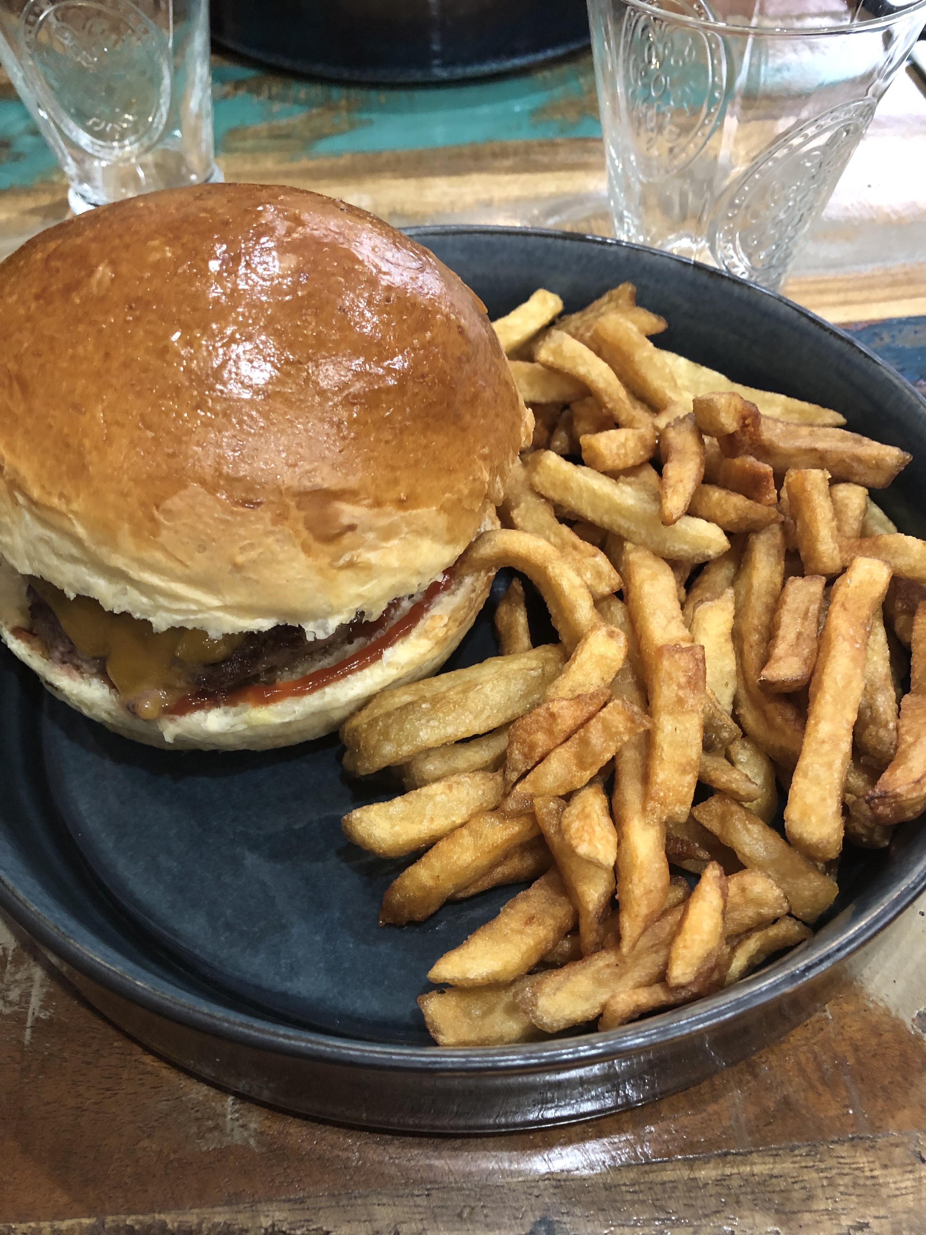 Bonjour, Vous chercher à manger un bon burger, ne cherchez plus c’est là qu’il faut aller ! Les produits sont de qualité, l’accueil est sympathique et passionné, et ça se retrouve dans l’assiette ! Il y en a pour tous les goûts, les burgers classiques sont délicieux, les plus originaux le sont aussi ! Nous avons dégusté un verre de vin local très bon, servi dans un beau verre ! Niveau tarif, c’est tout à fait correct ✅ Go go !!!