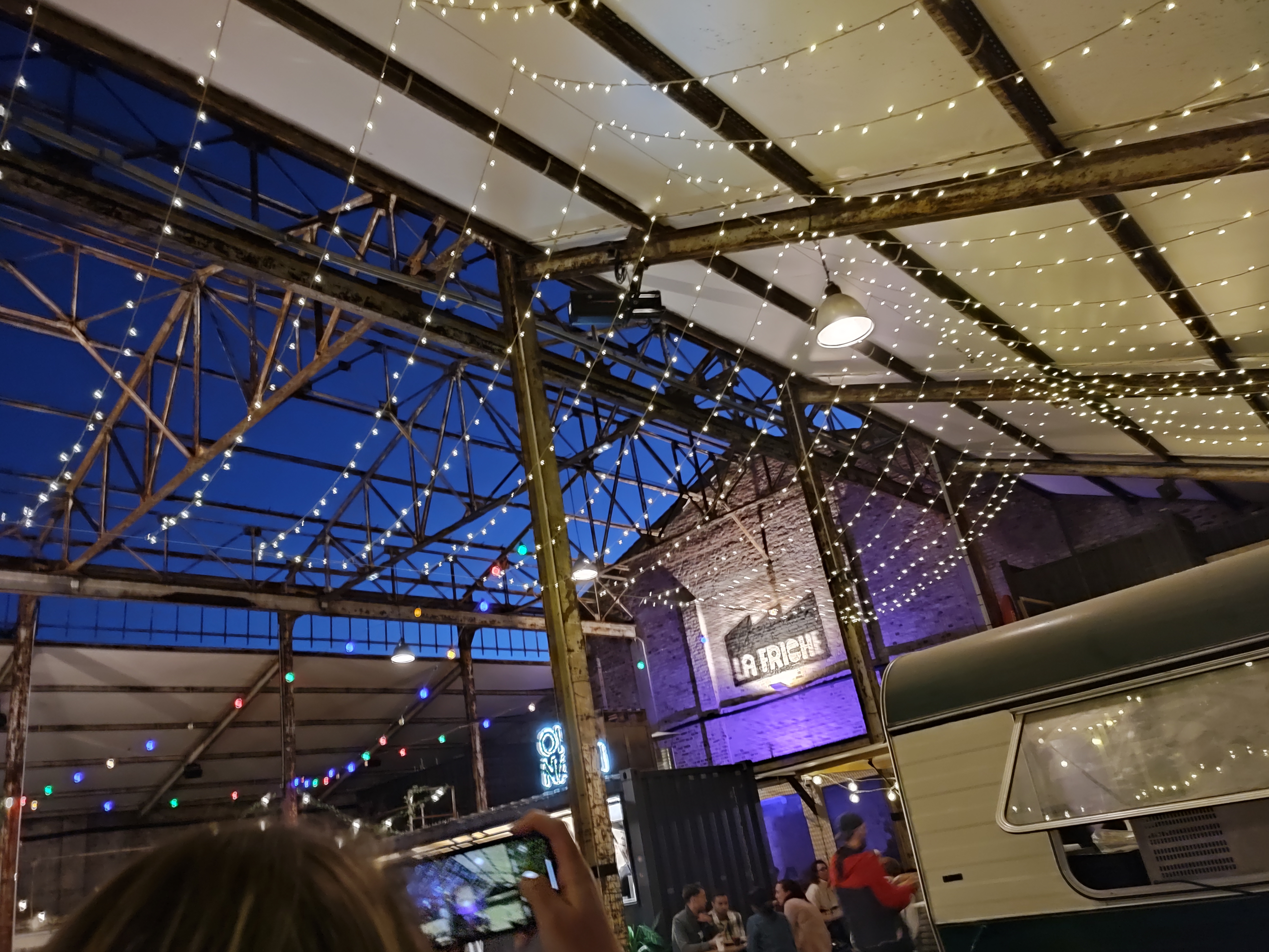 Assez partagé sur mon expérience dans ce lieu assez atypique pour de la restauration. Première chose : si vous venez hors saison d'été, habillez-vous chaudement (surtout le soir). Le bâtiment est logiquement très peu chauffé et une vilaine pluie peut venir vous gâcher votre repas si vous manger au coeur du bâtiment... En ce qui concerne le repas justement : c'est bon, mais c'est cher. Trop cher même, pour la qualité de ce qui nous est proposé sur place. Seules les bières du petit bar restent accessibles. Question confort : proche du zéro absolu, notamment s'il y a du monde. On se croirait presque dans une gaingette avec des bancs en bois rudimentaires, des convives collés les uns contre les autres ; comme les grandes tables de même type, assez sales d'ailleurs à notre arrivée vers 19h30. Quant au confort auditif : même topo. N'espérez pas pouvoir discuter tranquillement avec vos proches voisins durant les heures fast. Ou alors, il faut choisir en connaissance de cause. Bref, agréablement surpris du lieu au départ, mais je ne pense pas y revenir de sitôt compte tenu des placements exigus et de l'atmosphère sonore franchement déplaisante.