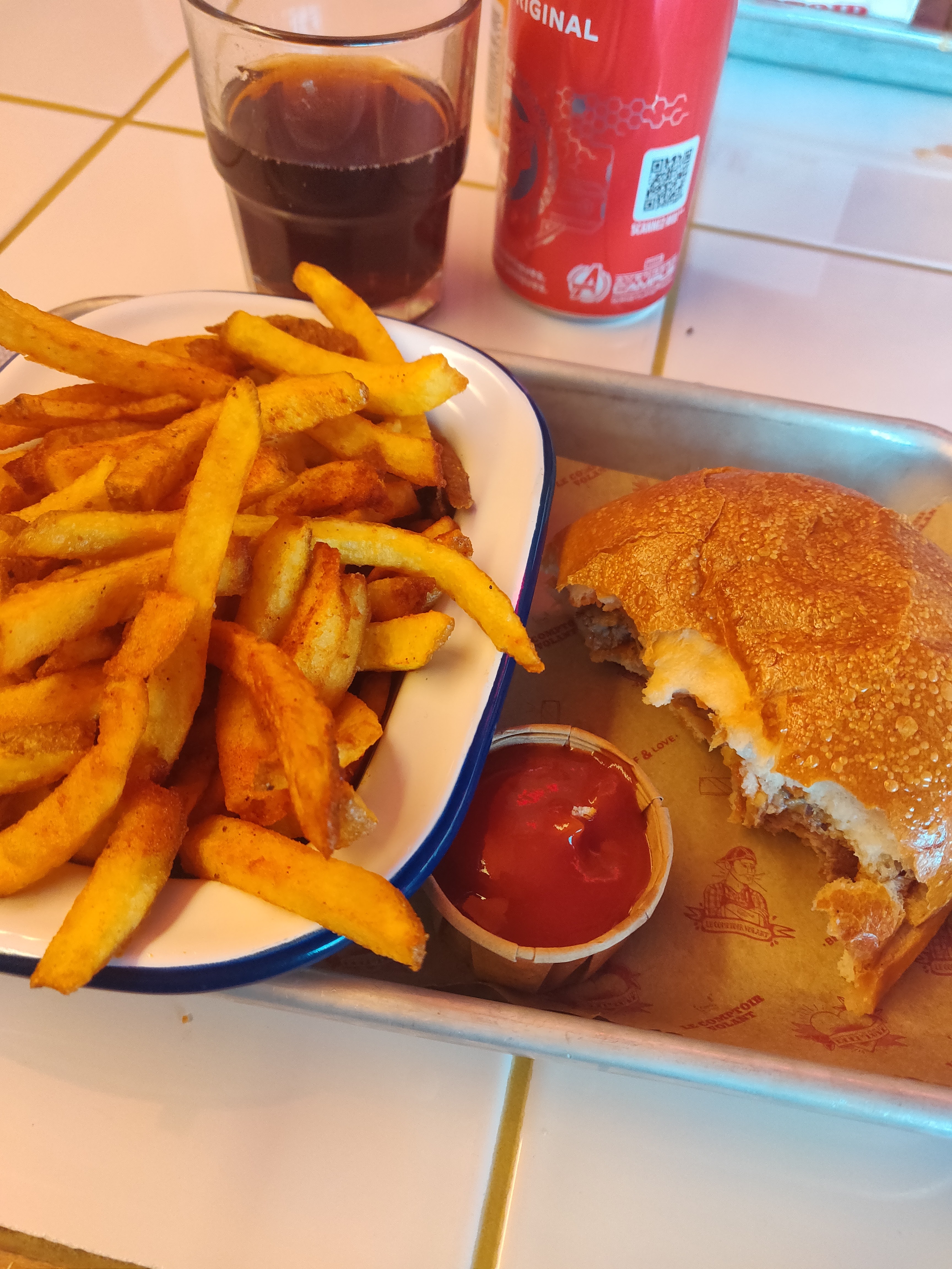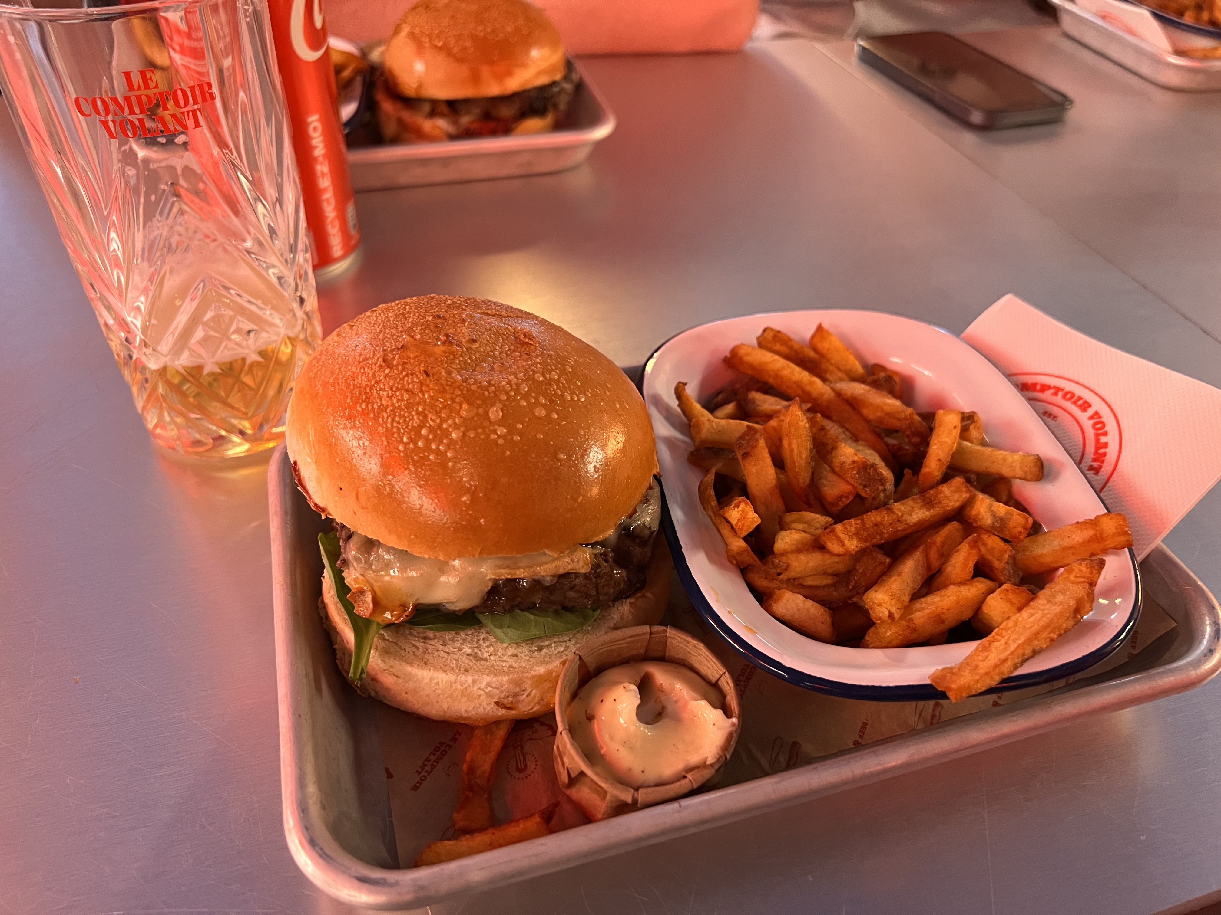 J'ai découvert le comptoir volant à la Friche y'a qqles mois et j'avais été surpris pas la qualité du burgers et de sa préparation! Le burger se tenait bien et les éléments etaient vraiment bien cuit. Et les frites, top ! Il faut dire qu'ils n'étaient pas débordés ce dimanche à 13h. Mais sur cette seconde experience, un peu déçu, plus rien à voir, le burger ne se tient pas, le fromage à raclette pas fondu et quasiment la moitier des frites sont trop petites et trop grillées ! Bref, un samedi soir à l'ouverture, y'avait du monde, c'est du fast food et plus de l'artisanal !