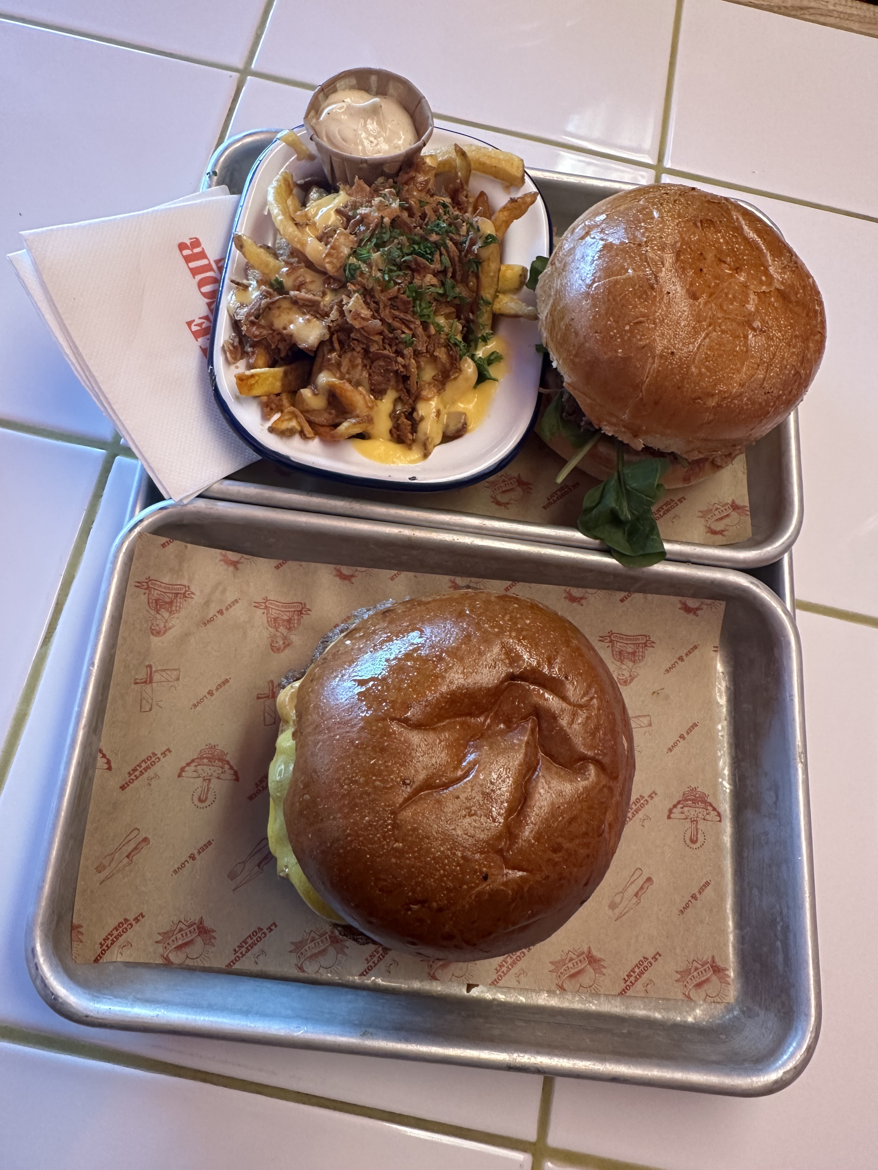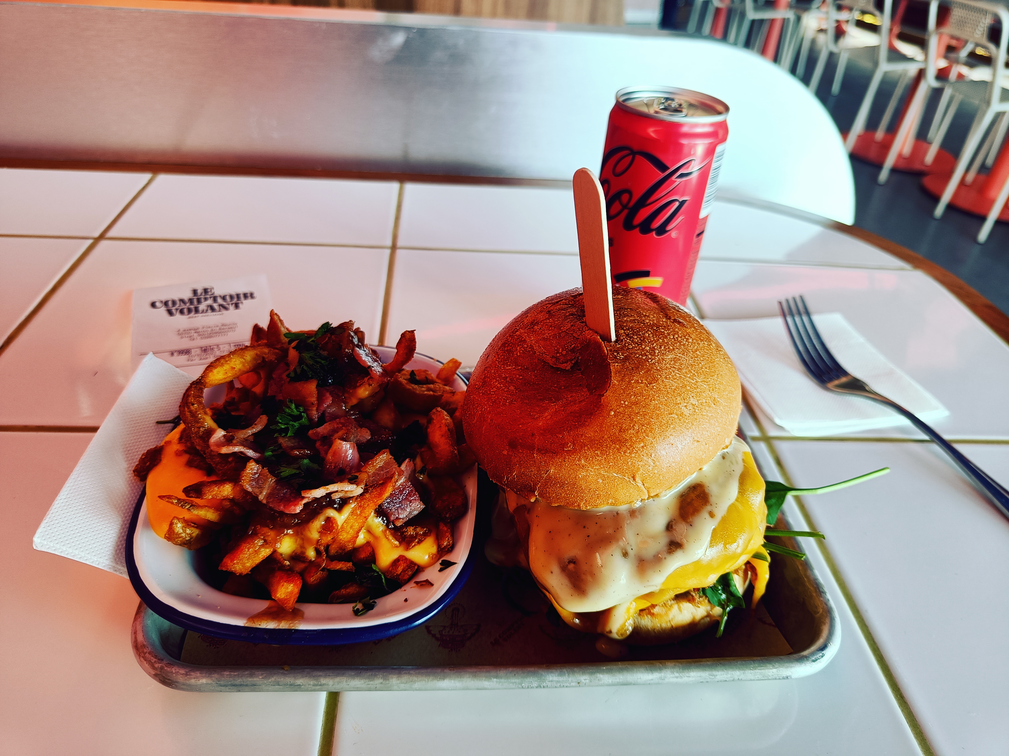 Première fois au comptoir volant.. Burgers assez savoureux malgré le steak trop cuit, mais attente beaucoup trop longue sur place, plus de 20min d’attente pour un burger.. après à deux pour tout gérer (sur place + livraisons + click & collect) c’est clairement pas possible.. j’espère que le recrutement sera fructueux 😁