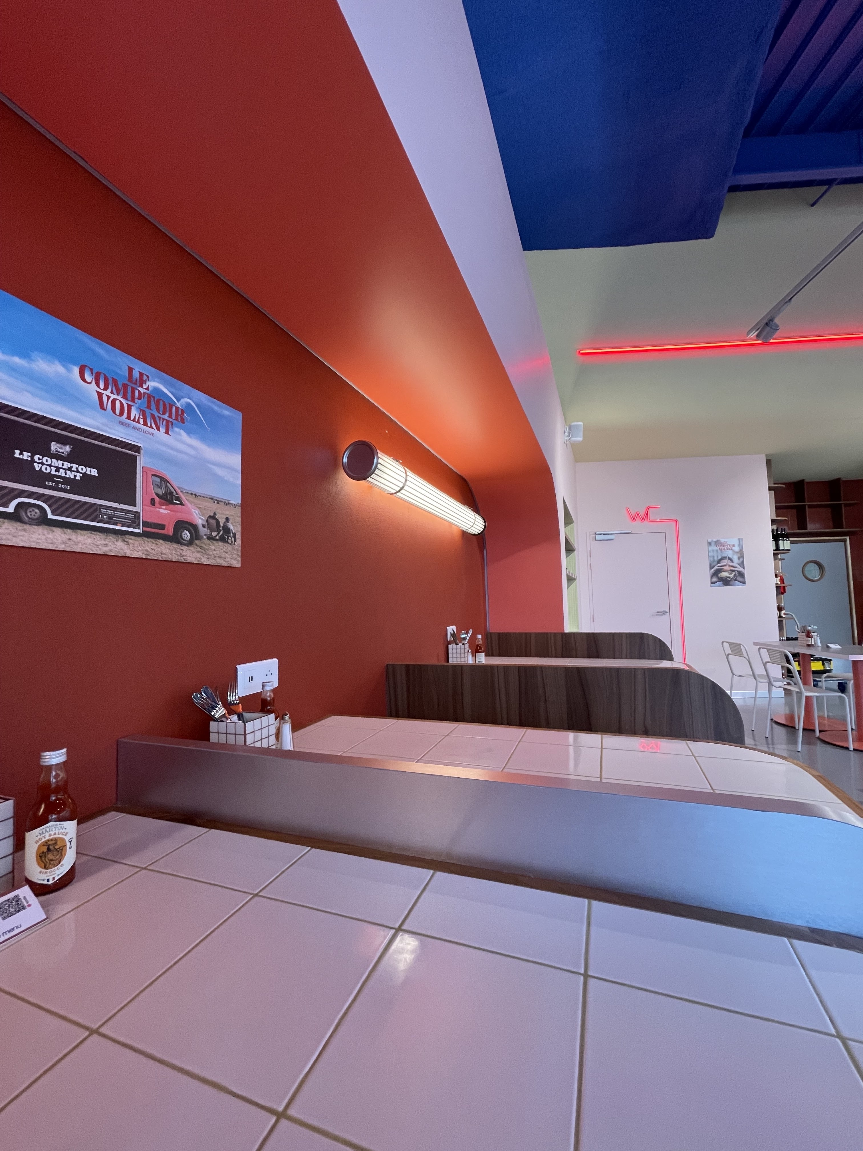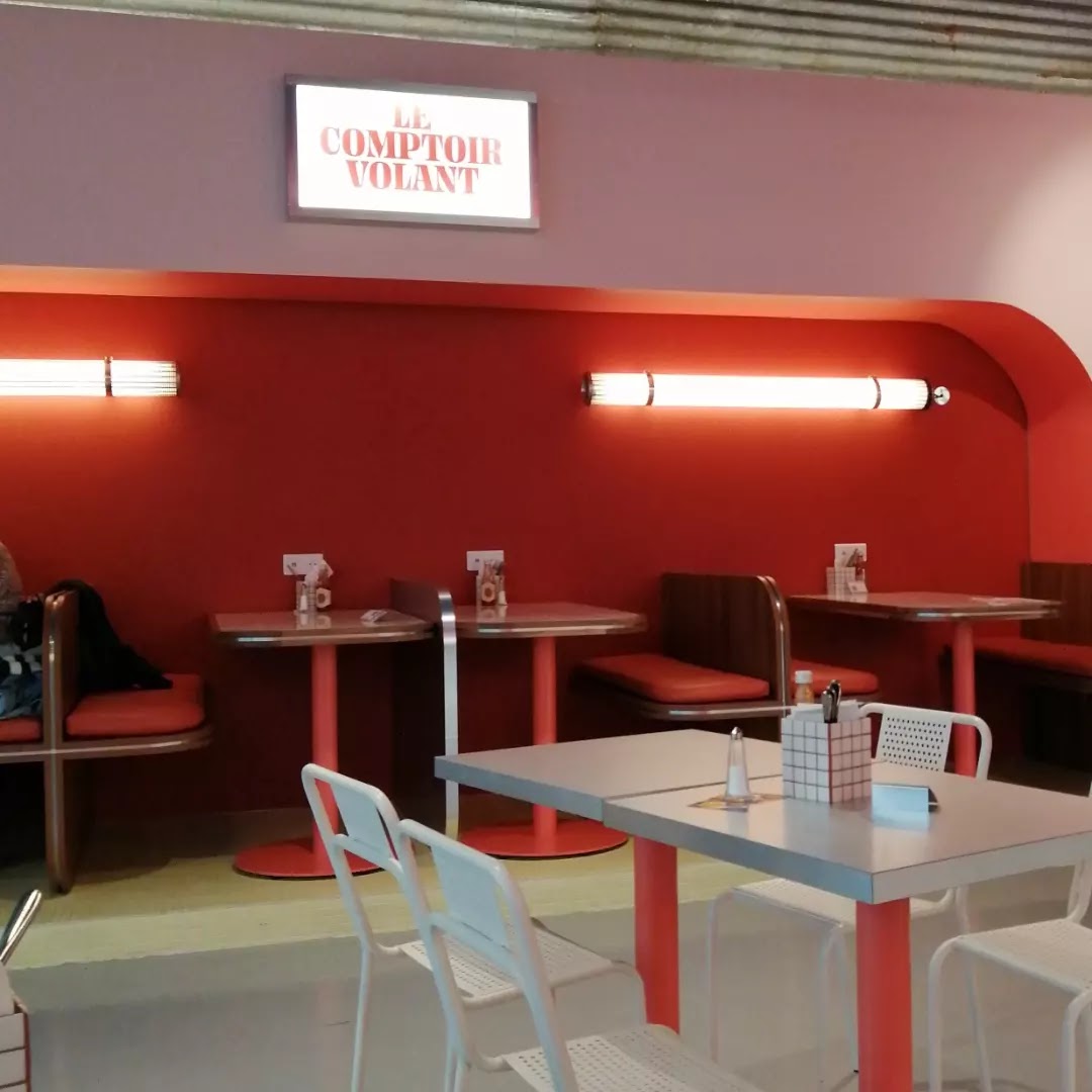 Le nouveau restaurant du Comptoir Volant à Marcq Une déco à l'américaine, moderne, chouette et colorée. Les serveurs etaient tous très sympas, et les burgers, aussi bons que dans leurs différents points de vente ! J'ai pris un Mamy Blue, très bon même si la sauce barbecue prend un peu trop le dessus sur le bleu ! Hâte de venir tester le reste !