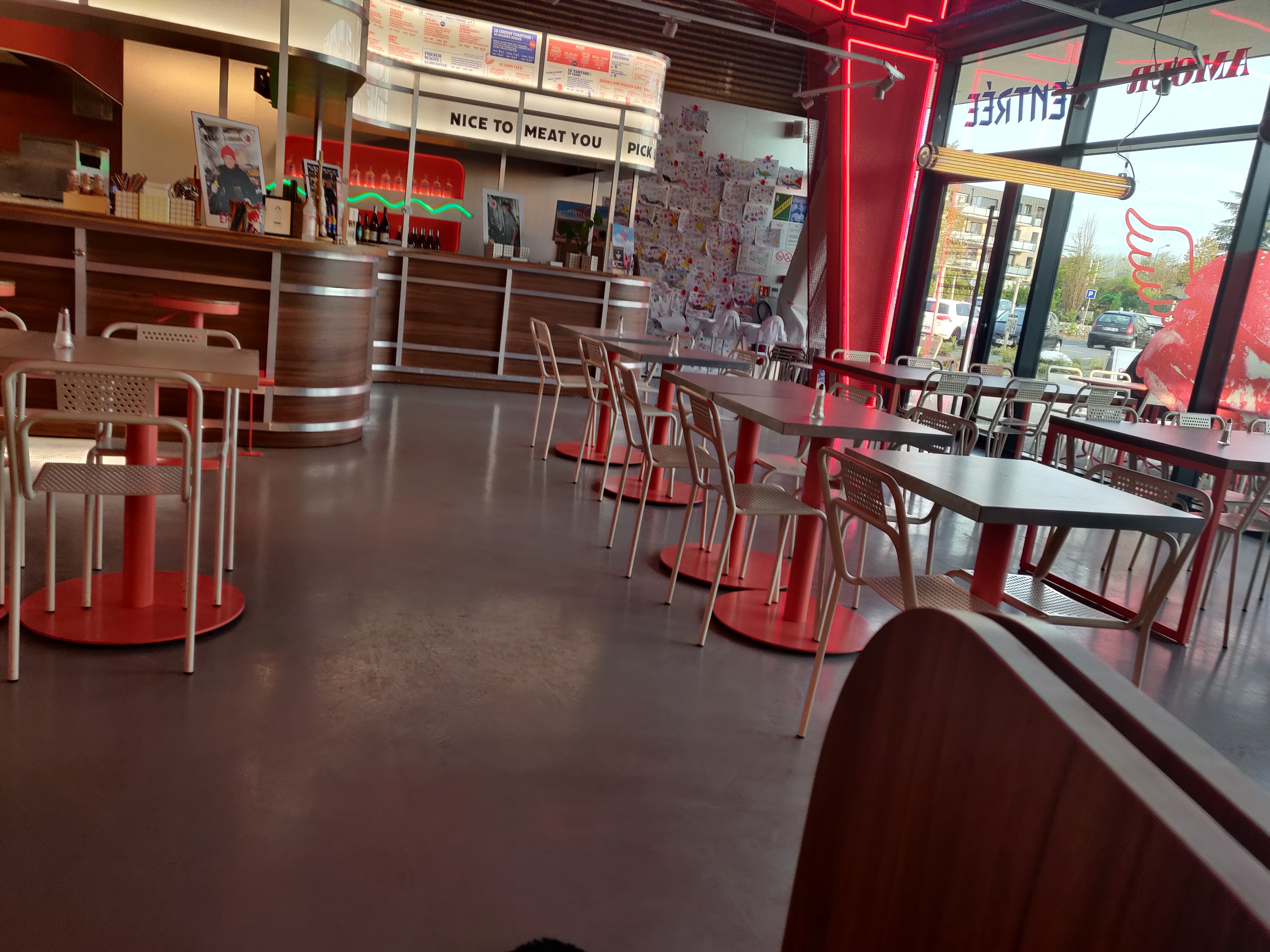 Super accueil, personnel top et déco sympa... Je ne connaissais pas.. Je travail juste à côté donc je me suis laisser tenter, malheureusement j'ai commandé un tartare ... Et bien la pour 10,50 la très mauvaise surprise de revenir au travail et de voir que je n'ai que 180g de viande cru à manger... Don j'appelle pour savoir si c'est normal on me dit que oui les frites sont en supplément... Très déçu je ne pense pas que je reviendrai j'ai pas pu manger, donc mauvaise expérience..