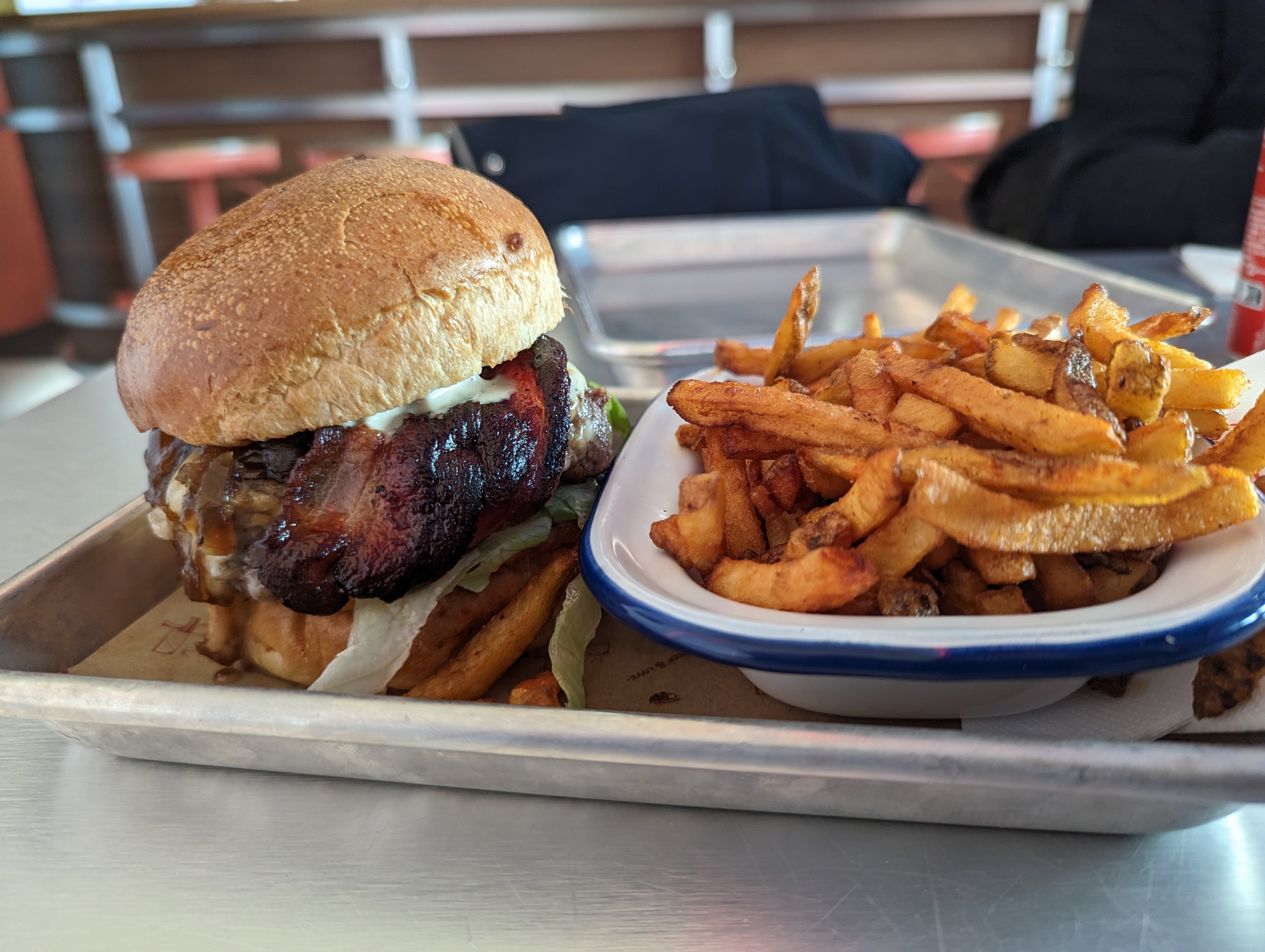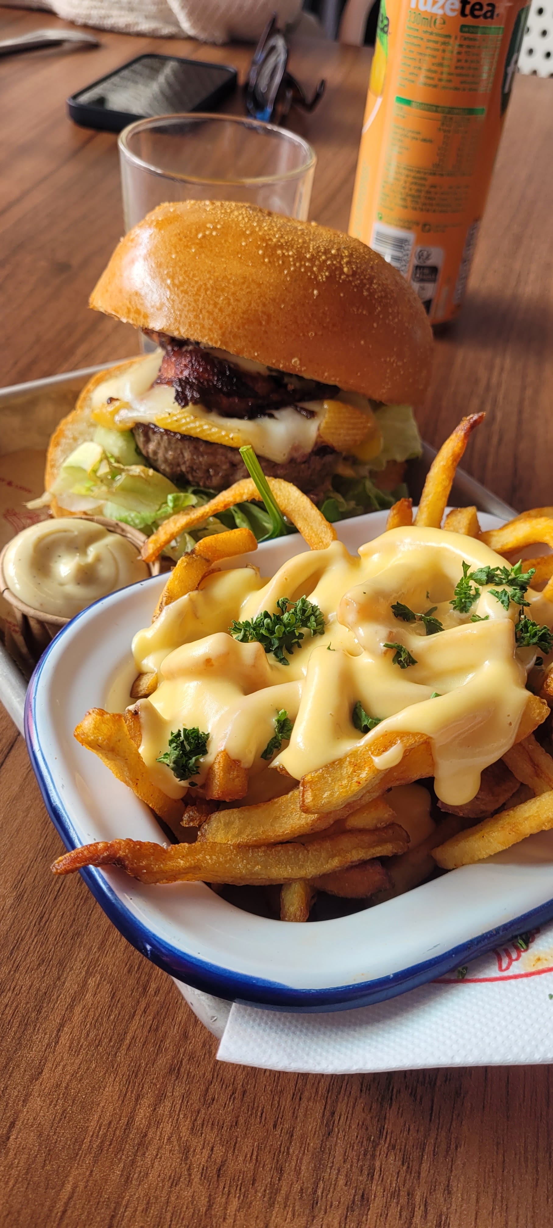 Excellent burger et excellentes frites. Le lieu est pas hyper chaleureux mais le service est bon.