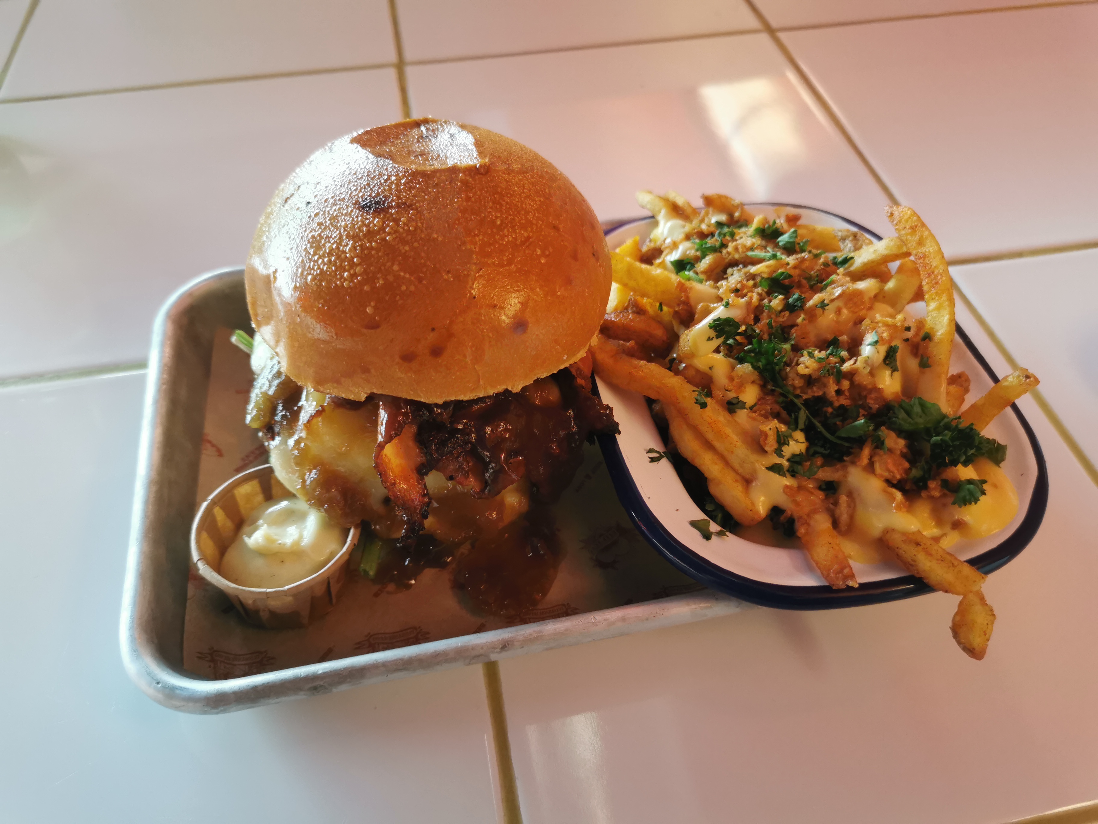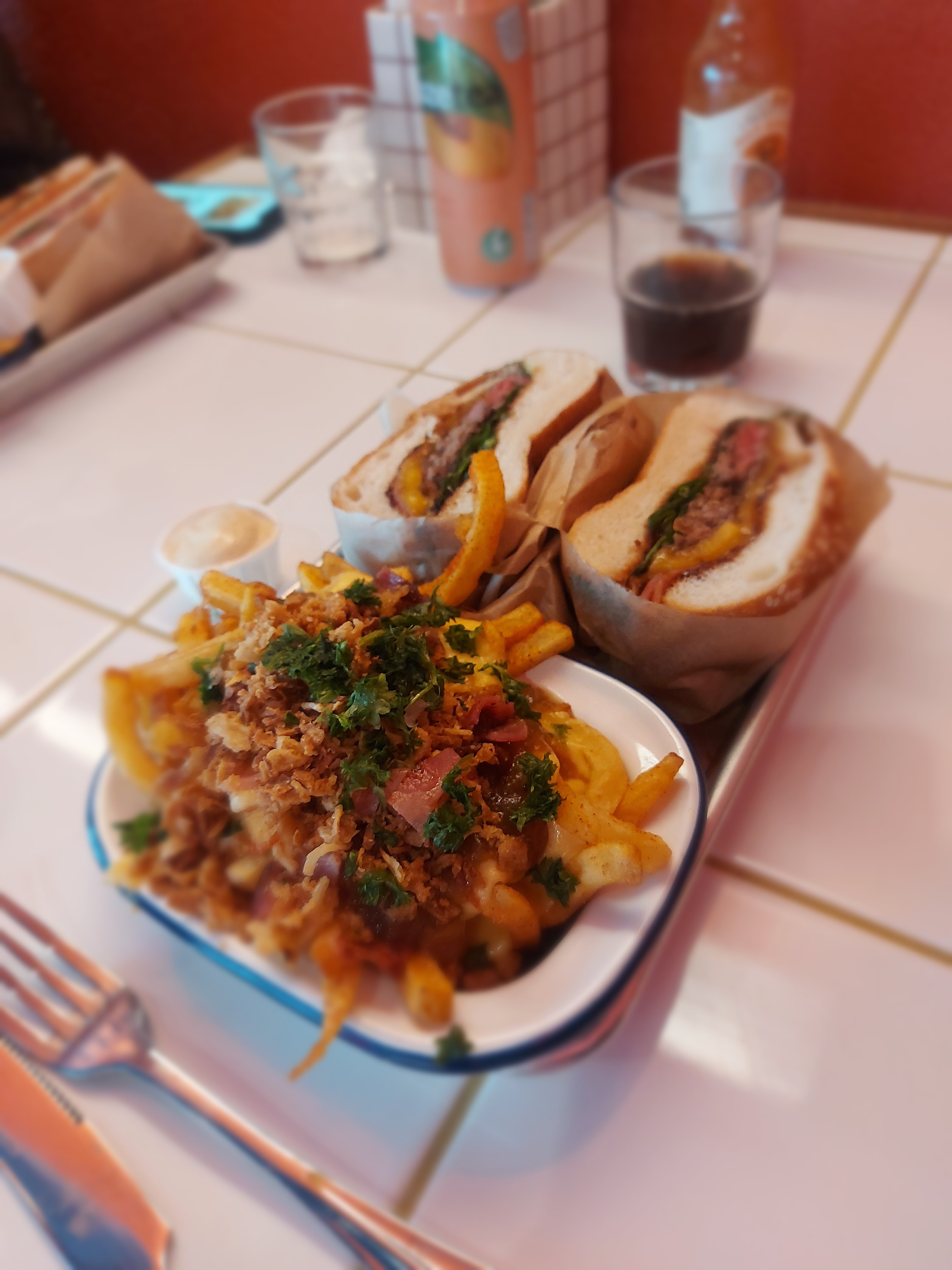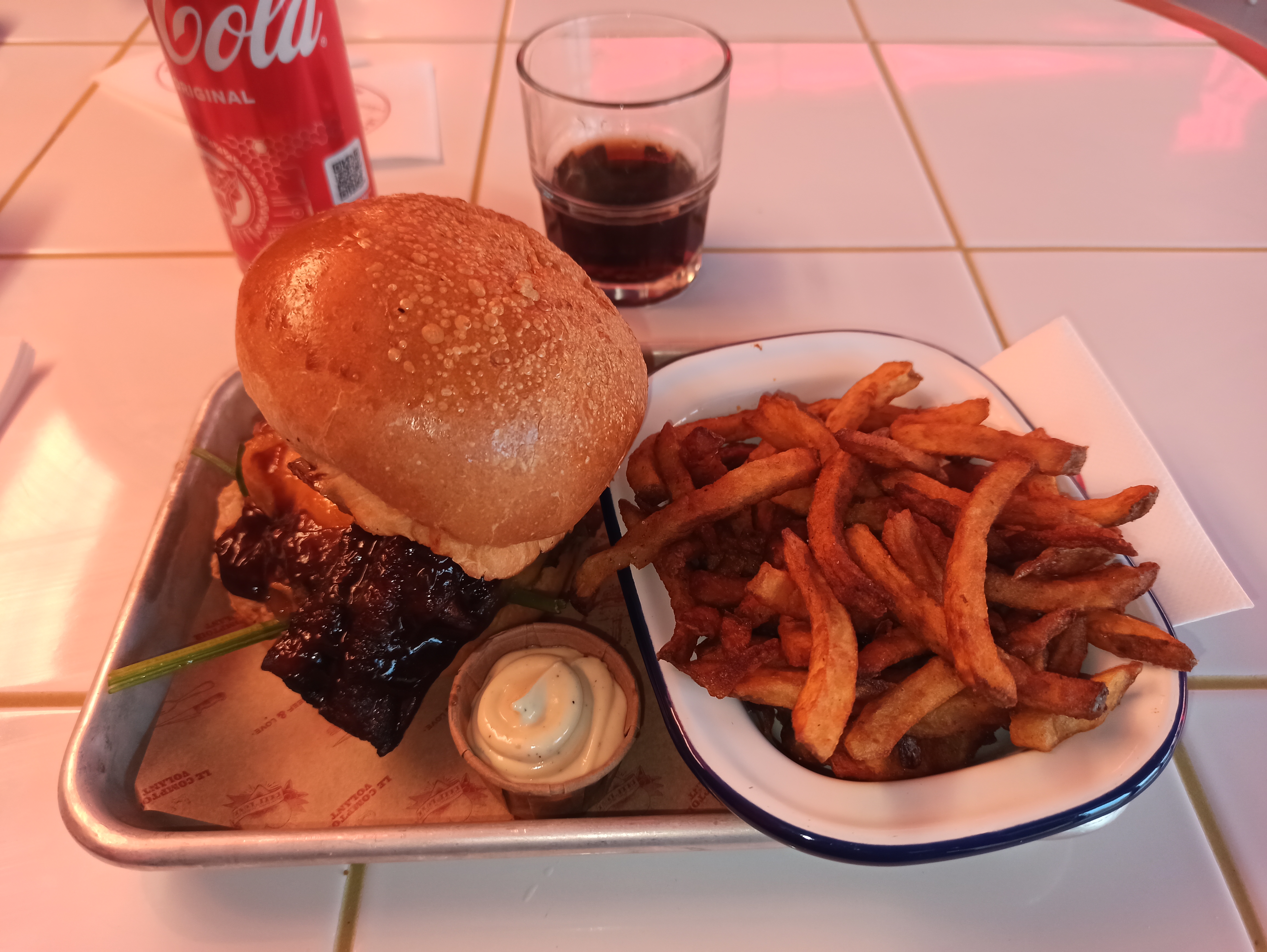 Le burger Texan dirty bbq est une tuerie ! Le fatal mariolle et l’emmental les fromages n’étaient pas assez fondu un peu plus fondu serait peut être mieux ! Point à améliorer : demander la cuisson du steak car j’ai eu un à point alors que je préfère saignant et mon ami l’inverse … Le cadre annee 70’ est vraiment agréable 😙