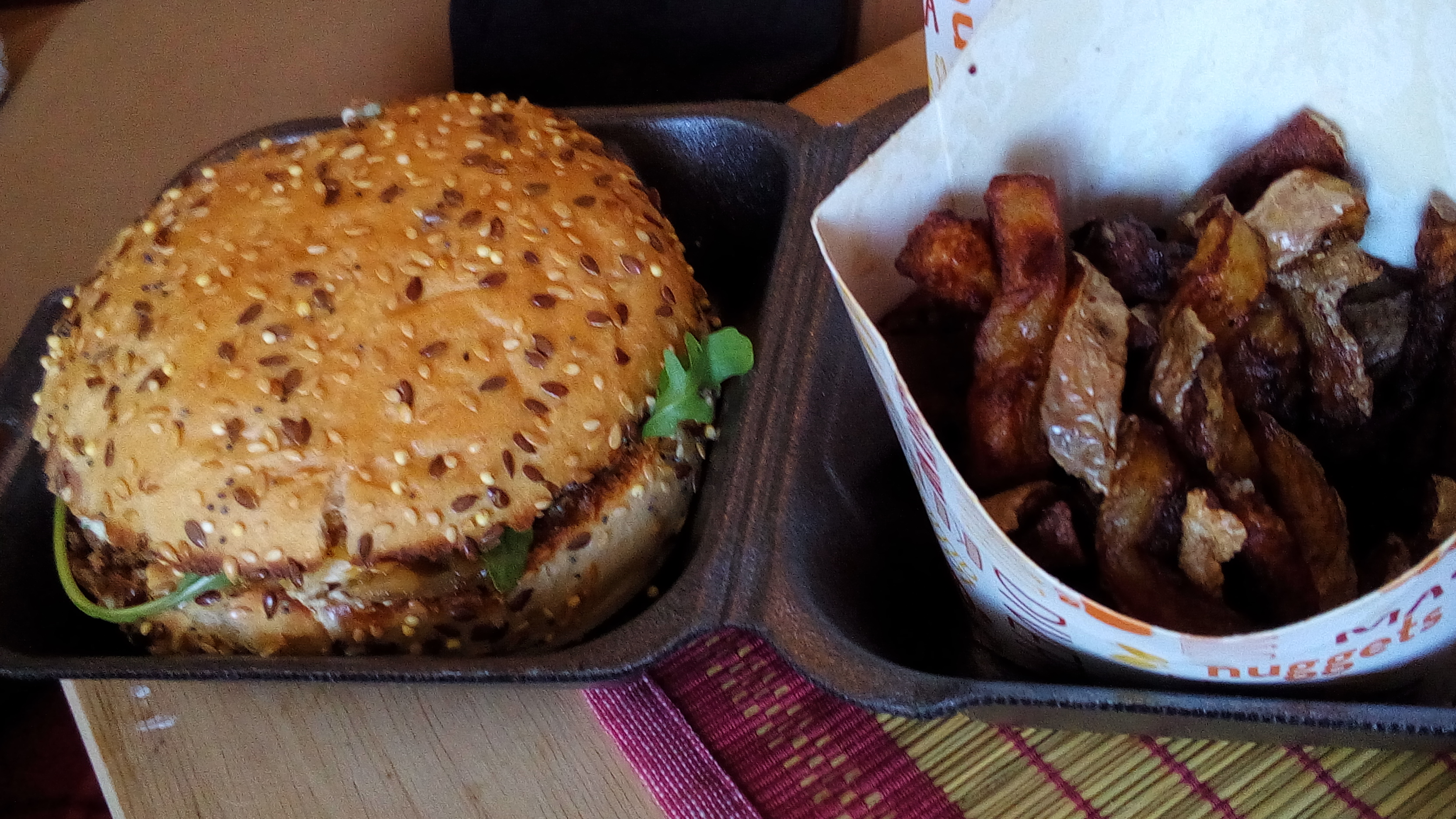 en mode deliveroo. A part les frites un peu moyennes, le hamburger était vraiment bon