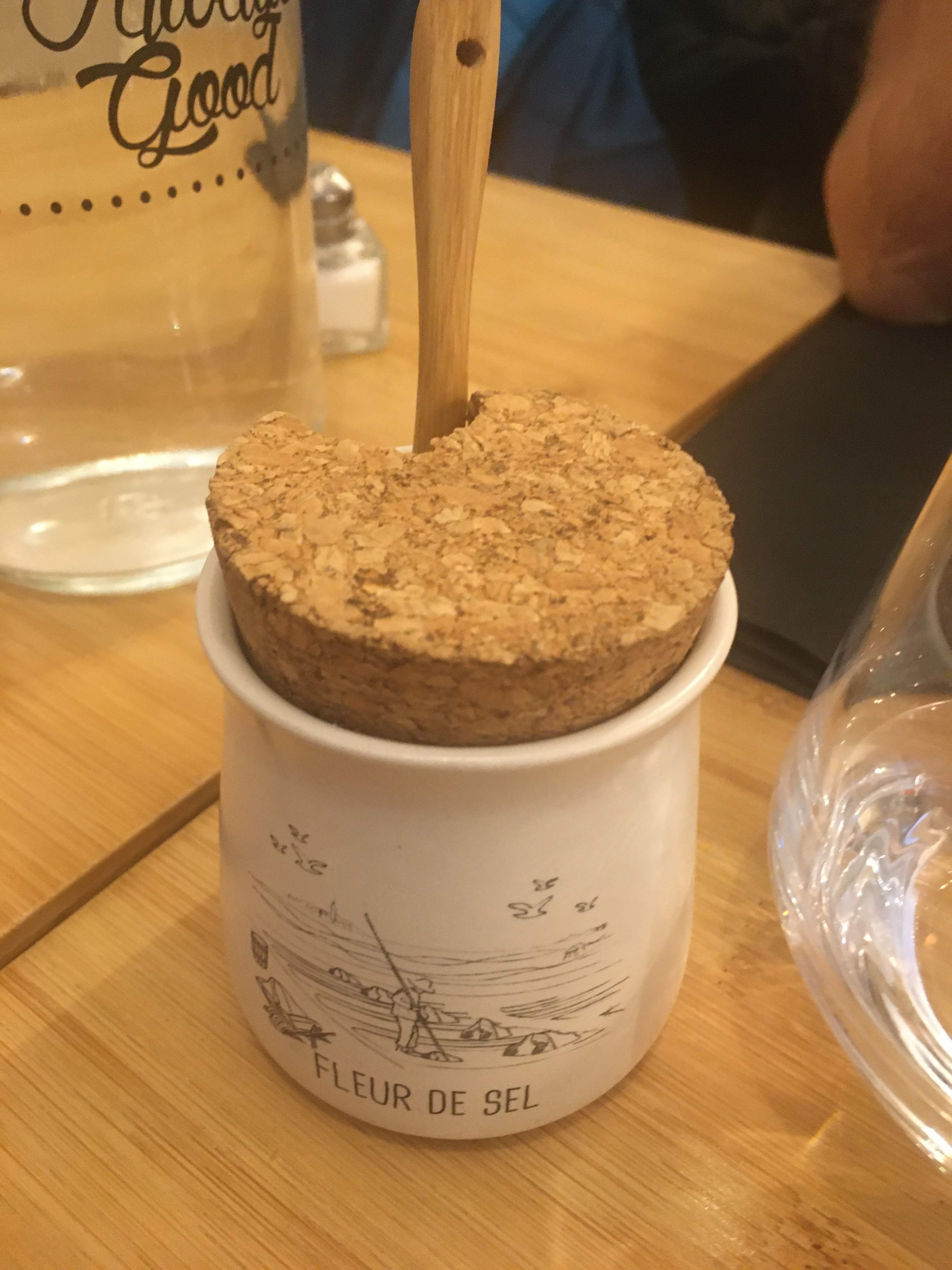 Tres beaux produits. Carte sympa. Recettes adaptees si besoin, avec le sourire (non feint) alors qu il y avait une forte affluence. A emporter. Je n ai pas vu la salle. Tres bien!! J y retournerai avec plaisir.