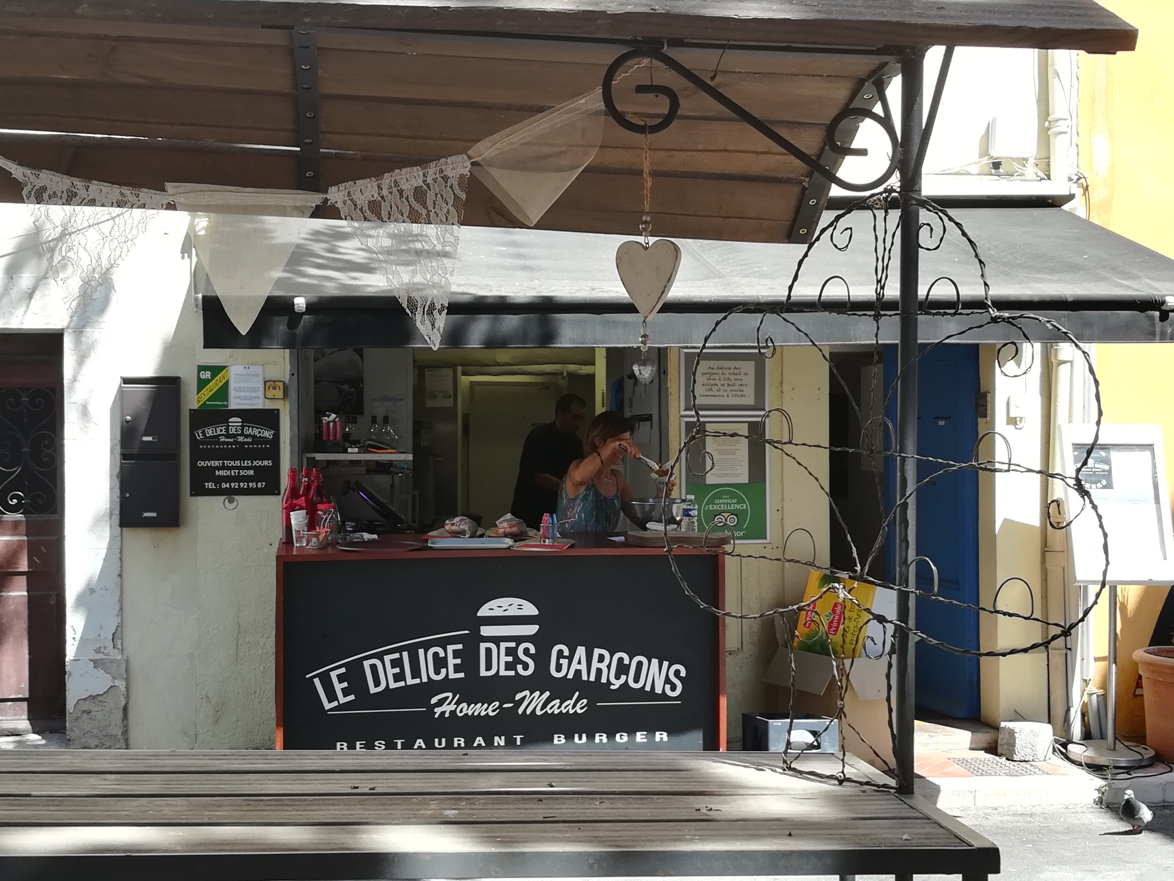 Le délice des garçons propose des burgers de très bonne qualité pour le prix d'un menu de fast food classique, tous les burgers sont excellents et les frites sont délicieuses, tout ça servit sur la place de Mouans qui est très agréable en été, le combo parfait pour bien dîner entre amis, je recommande
