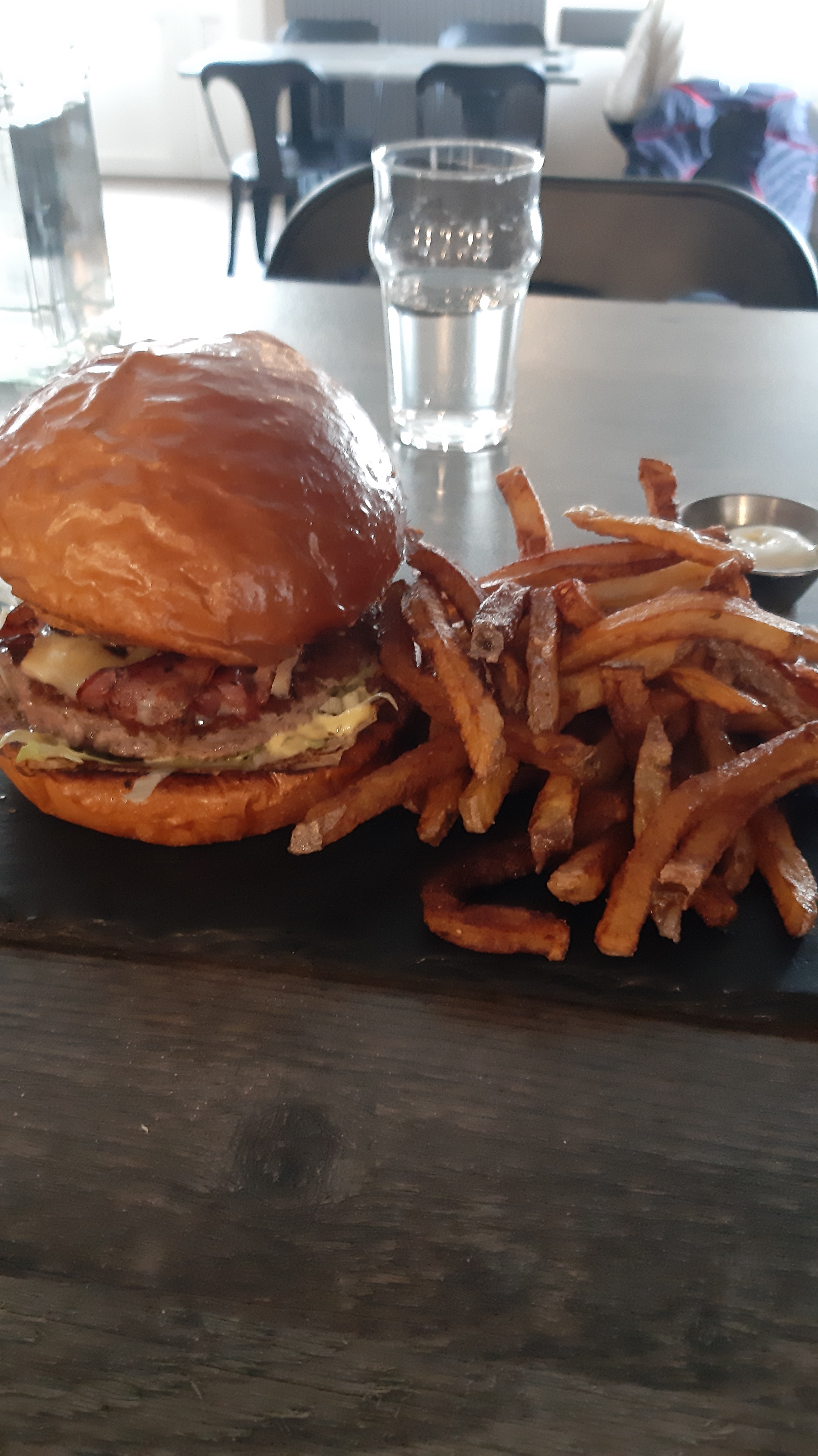 Repas de midi un excellent burger. Dommage qu'il n'y avait pas de dessert 😔