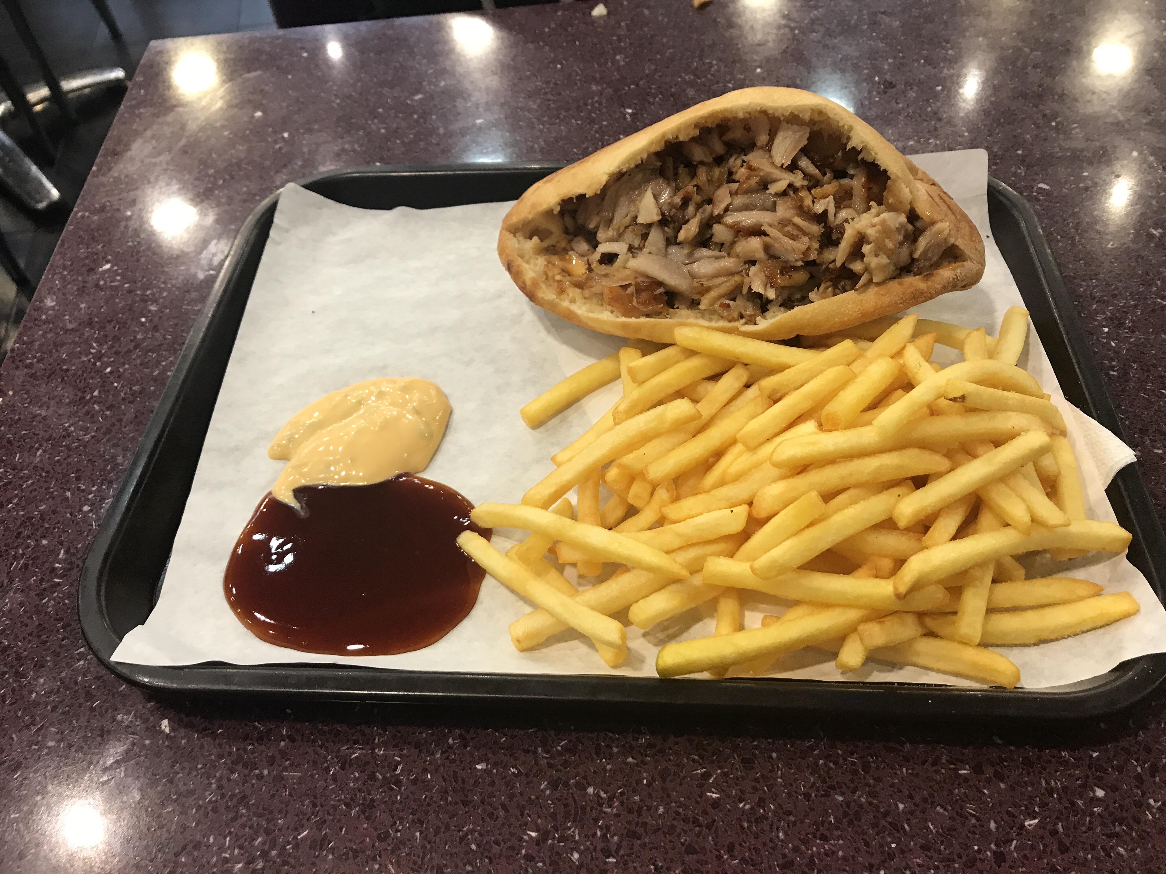 Le gérant est Super aimable la viande de grec succulente, il y a même des boissons cristallines avec sirop au choix ! Supérieur à la plupart des grecs que j’ai mangé récemment très clairement. Ambiance décontractée et le restaurant est propre