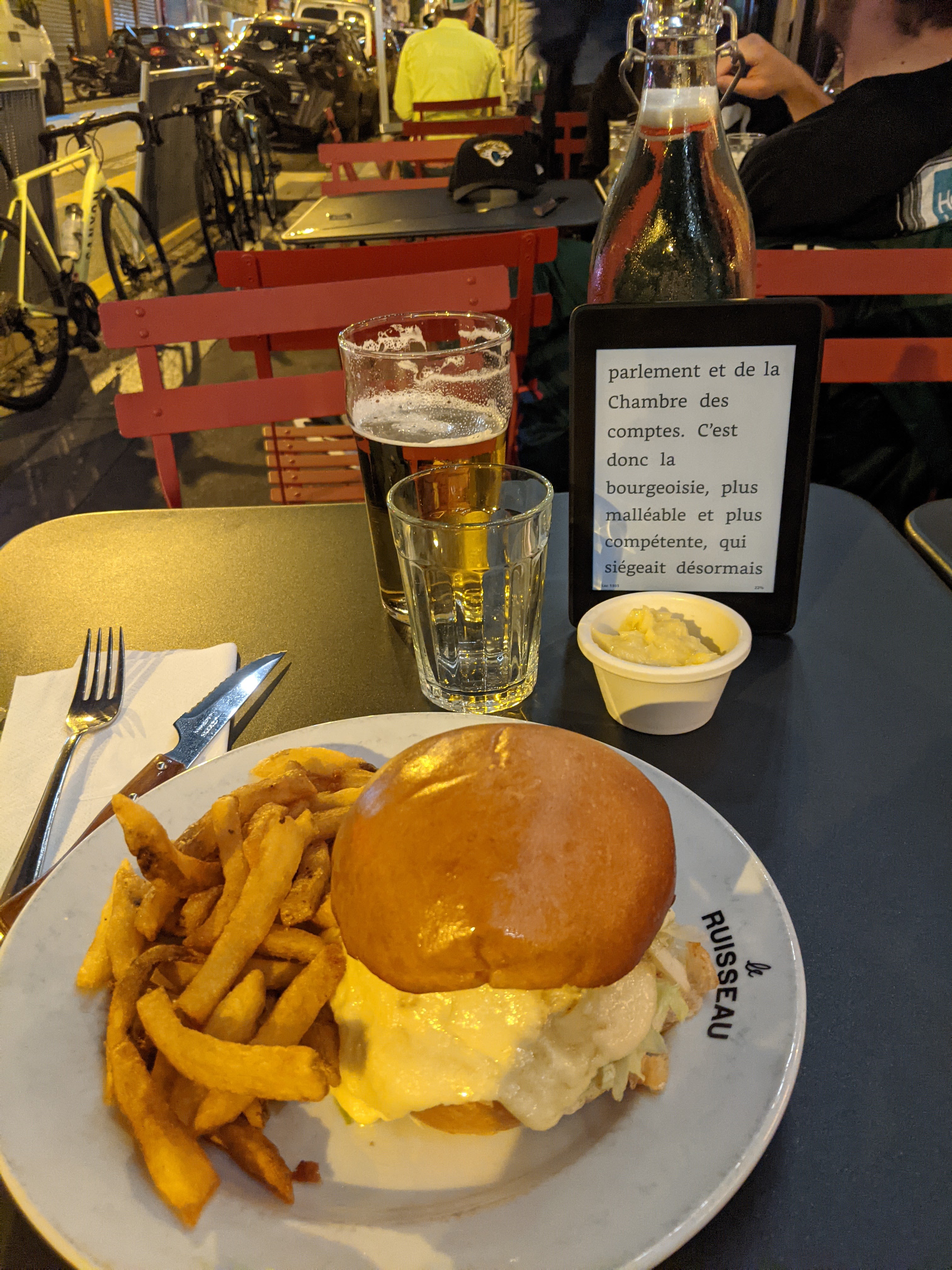 Un dimanche soir pluvieux parfait : chercher son burger au Ruisseau. Sans aucun doute le meilleur du 18ème et peut-être au-delà. Souvent de l’attente donc pensez à passer commande en amont... (ce qui doit être moins cool c’est pour le voisinage et le flux de livreurs pas des plus discrets, mais bon... la rançon du succès).