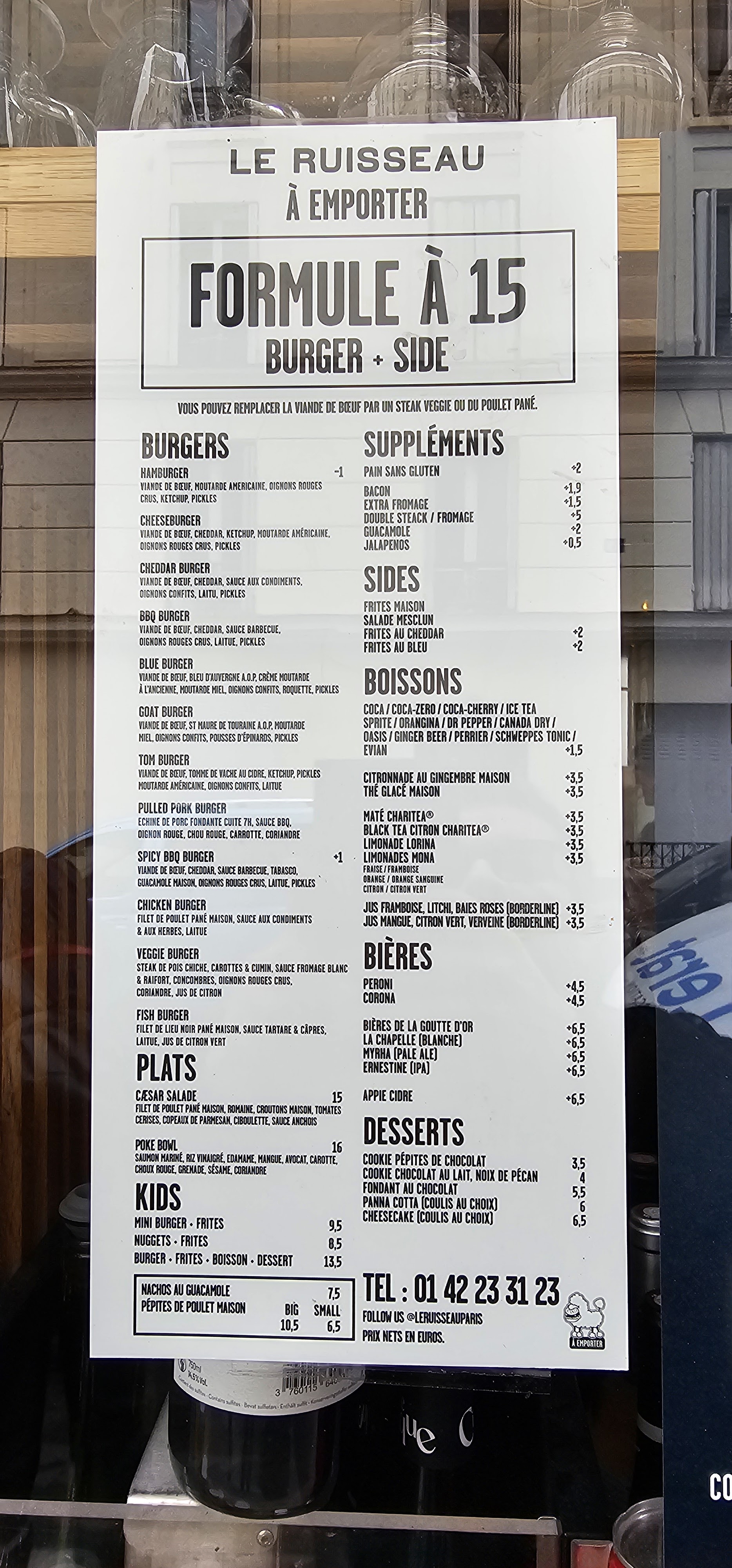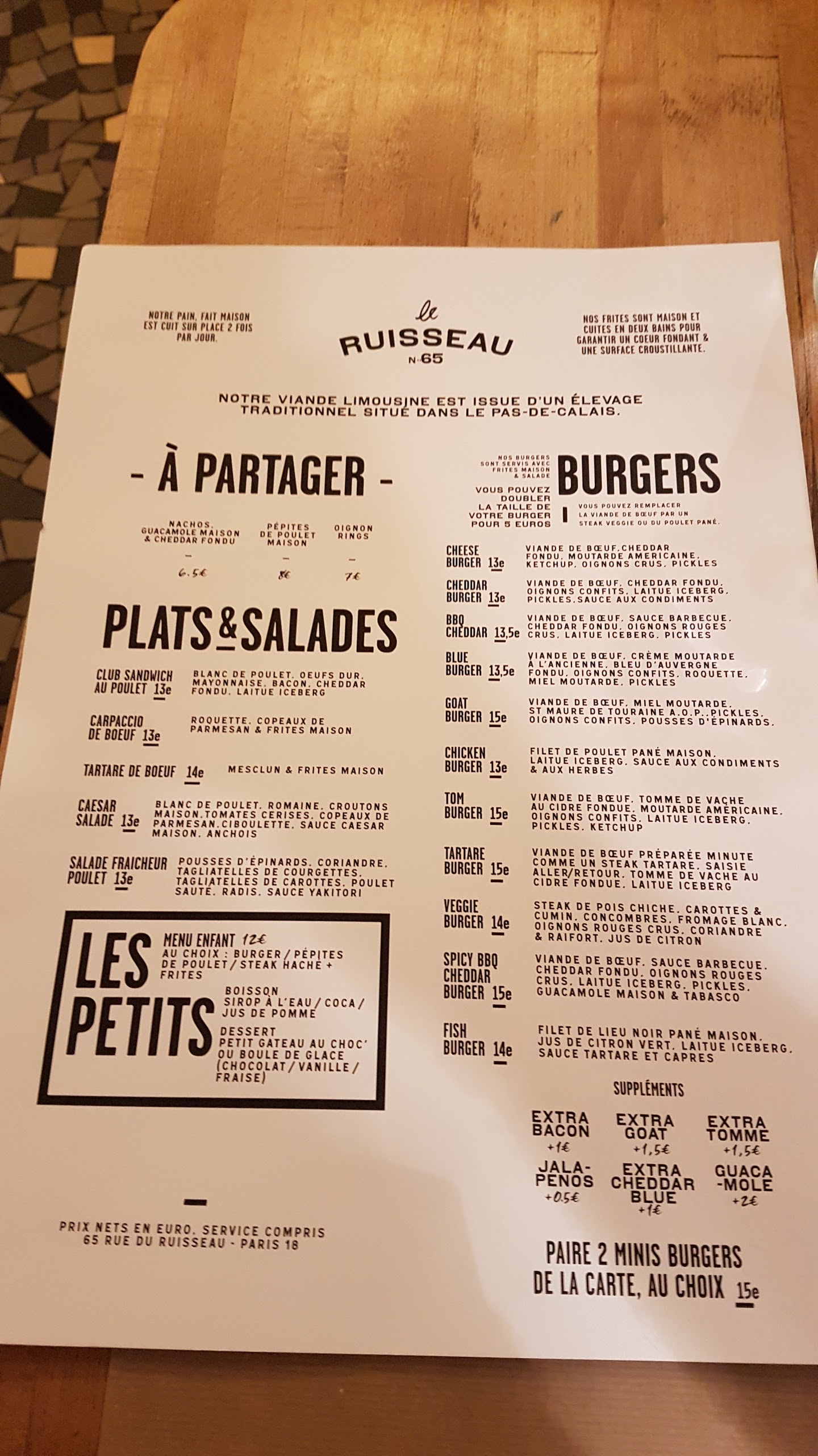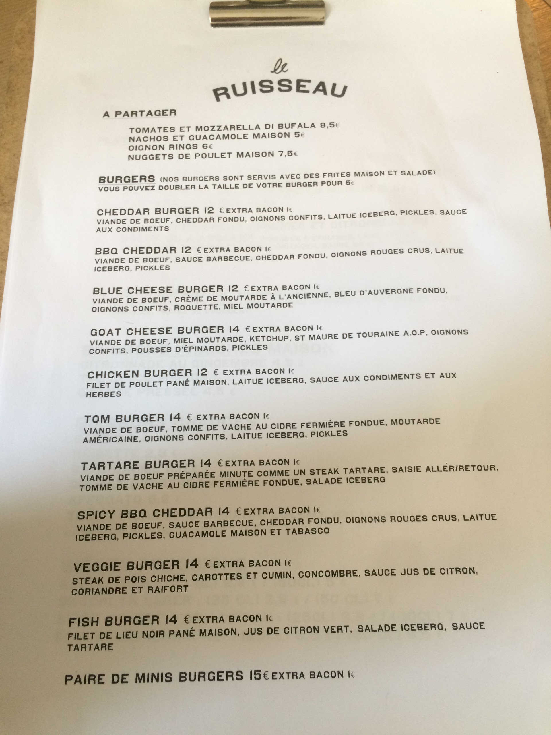 Le ruisseau à ses débuts aura été pour moi le meilleur burger de Paris pour la qualité des produits et pour les prix pratiqués à l'époque ! mais beaucoup de choses ont changé depuis ... les plats sont trop gras ( burger, frites et sauce ) c'est dommage car on ne sent plus les saveurs alors que les produits semblent toujours de qualité, Les prix ont augmentés et le service a diminué. Que ce soit sur place ou à emporter vérifiez toujours si on ne vous a pas oublié le fromage, le supplément bacon ou le coca que vous aviez commandé !