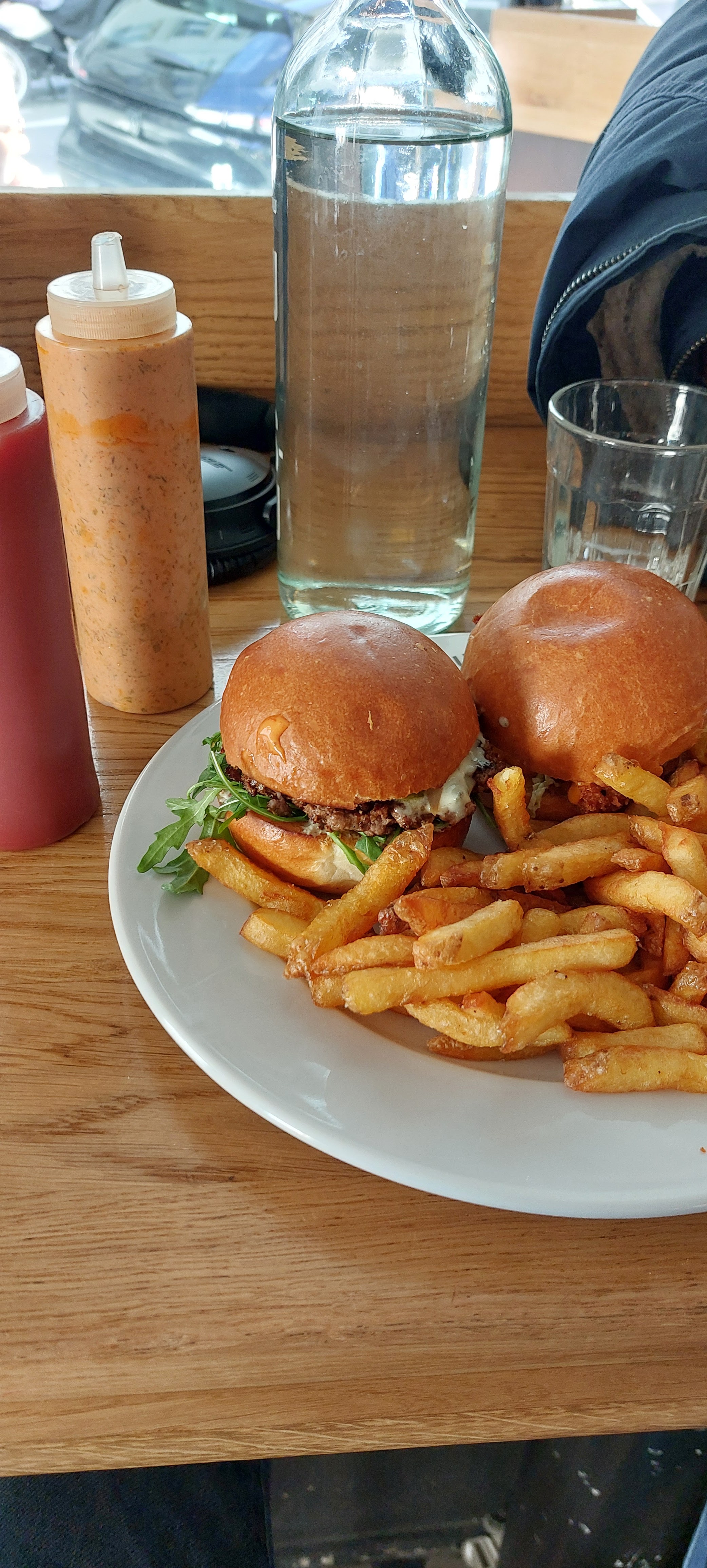 Nous avons choisi la formule de deux mini burgers Ô, combien suprêmes, accompagnés de frites maison RÉELLEMENT maison. Je recommande vivement le burger du mois, le Gorgonzola ! Probablement le meilleur hamburger que nous ayons goûté à paris (chaque bouchée nous a valu une petite larme), sans compter sur l'amabilité et la douceur de la serveuse qui contrarie bien des clichés ✨ Merci pour ce moment !