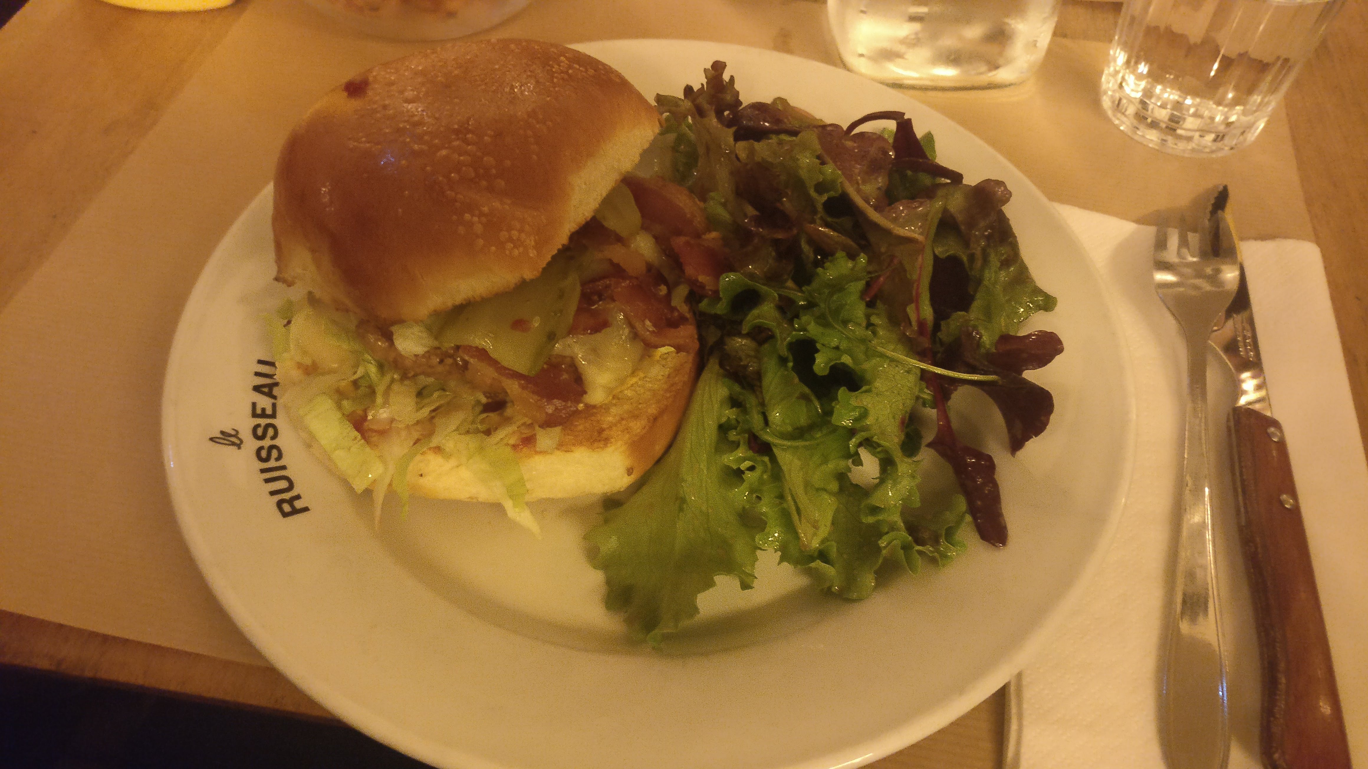On les a enfin trouvé. Les meilleurs burger de Paris sont au Ruisseau... Par contre le service laisse à désirer. Obligé de réclamer plusieurs fois de l'eau et d'aller chercher la carte des desserts (nous mangions dehors sur le trottoir). Nous y retournerons pour sur. Mention spéciale pour leur pain et les frites maison.