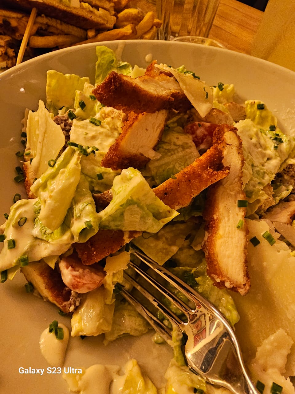 Succulent et généreux club sandwich accompagné sans payer de supplément l’accompagnement (salade et frites) . Ceci va de même pour les burghers qui sont tout aussi bons ! Lieu sympa et service avec sourire !