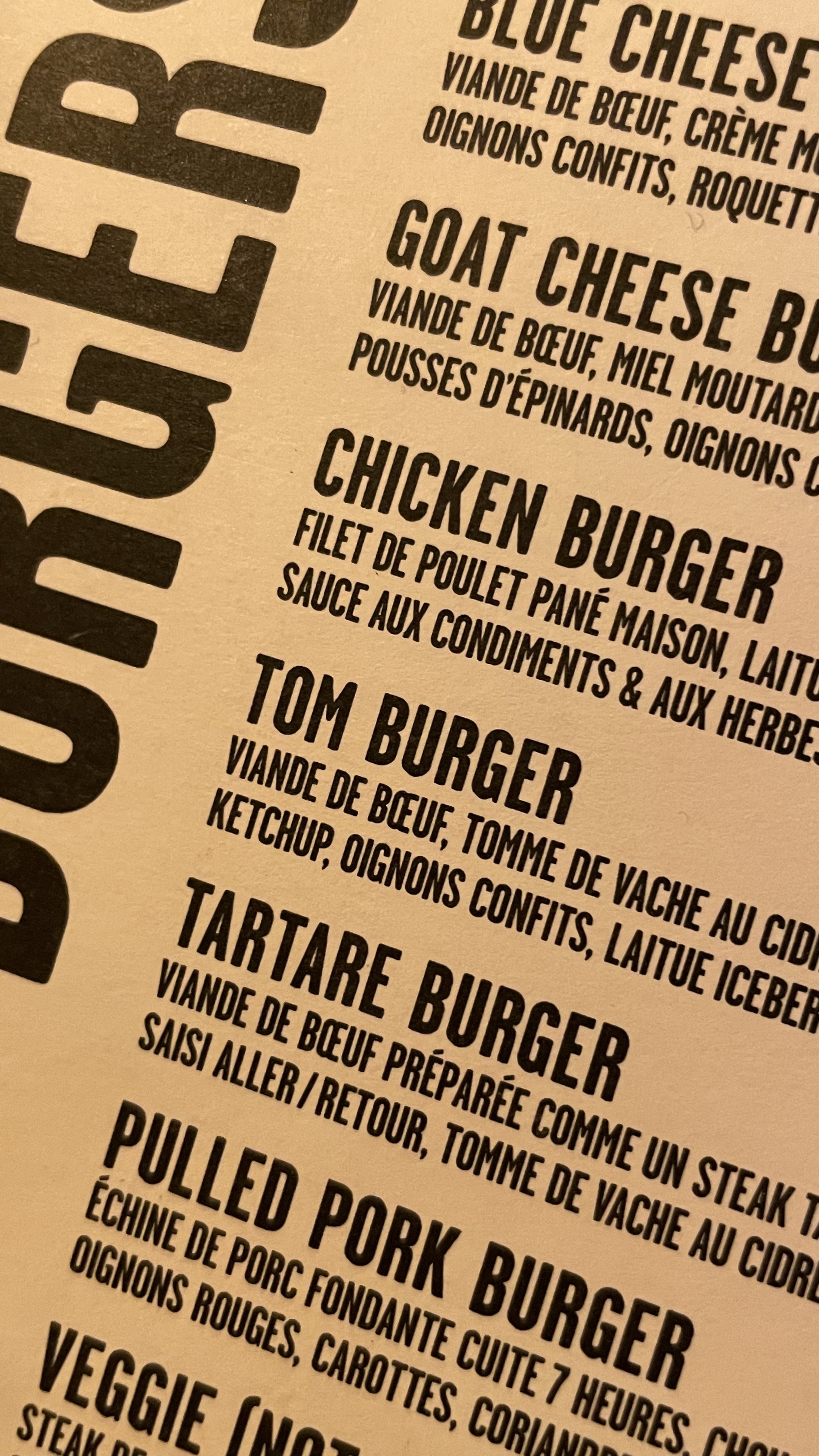 Au top. Accueil et ambiance entre les serveurs hyper agréables. Deco simple mais pire, avec pas mal de bois brut. Il y a une petite terrasse sur le trottoir. Les burgers sont très bien : pour gros appétit je conseille vraiment le supplément double, sinon ça peut faire un peu léger, malgré les nachos-guacamole (maison et très bon) avalés en entrée. La carte des vins est courte mais bien choisie, avec des petites exceptions pourtant raisonnables en prix, comme un très convenable Pic St Loup servi au verre. Je recommande et j’y retournerai !