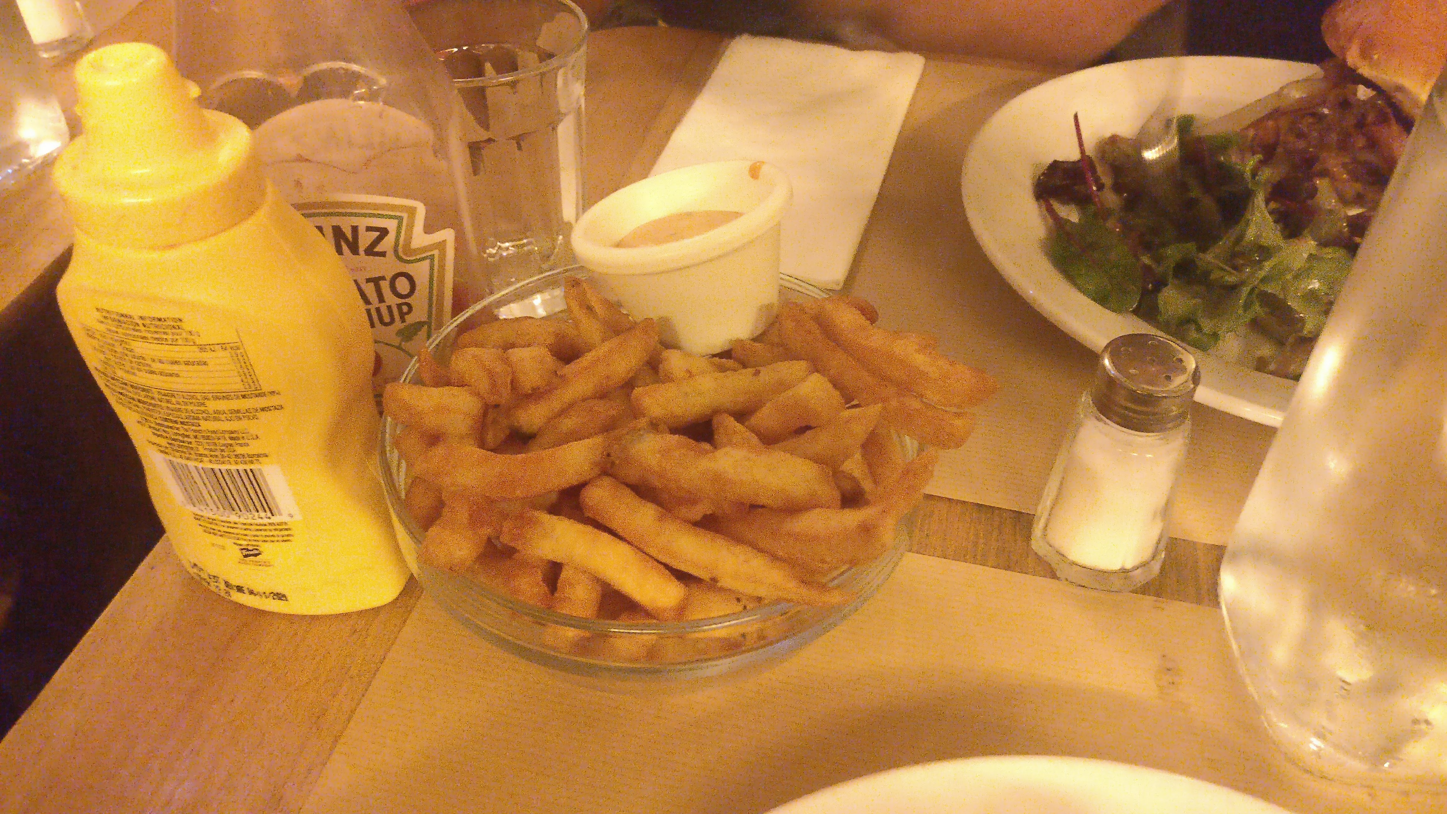 Le pain des burgers n'est pas réchauffé, cela refroidit donc la viande et la garniture. Dommage. Mais c'est le genre de détail qui réduit cet expérience à un burger froid donc désagréable. Frites bien dorées servies avec parcimonie. Bref pas l'extase...