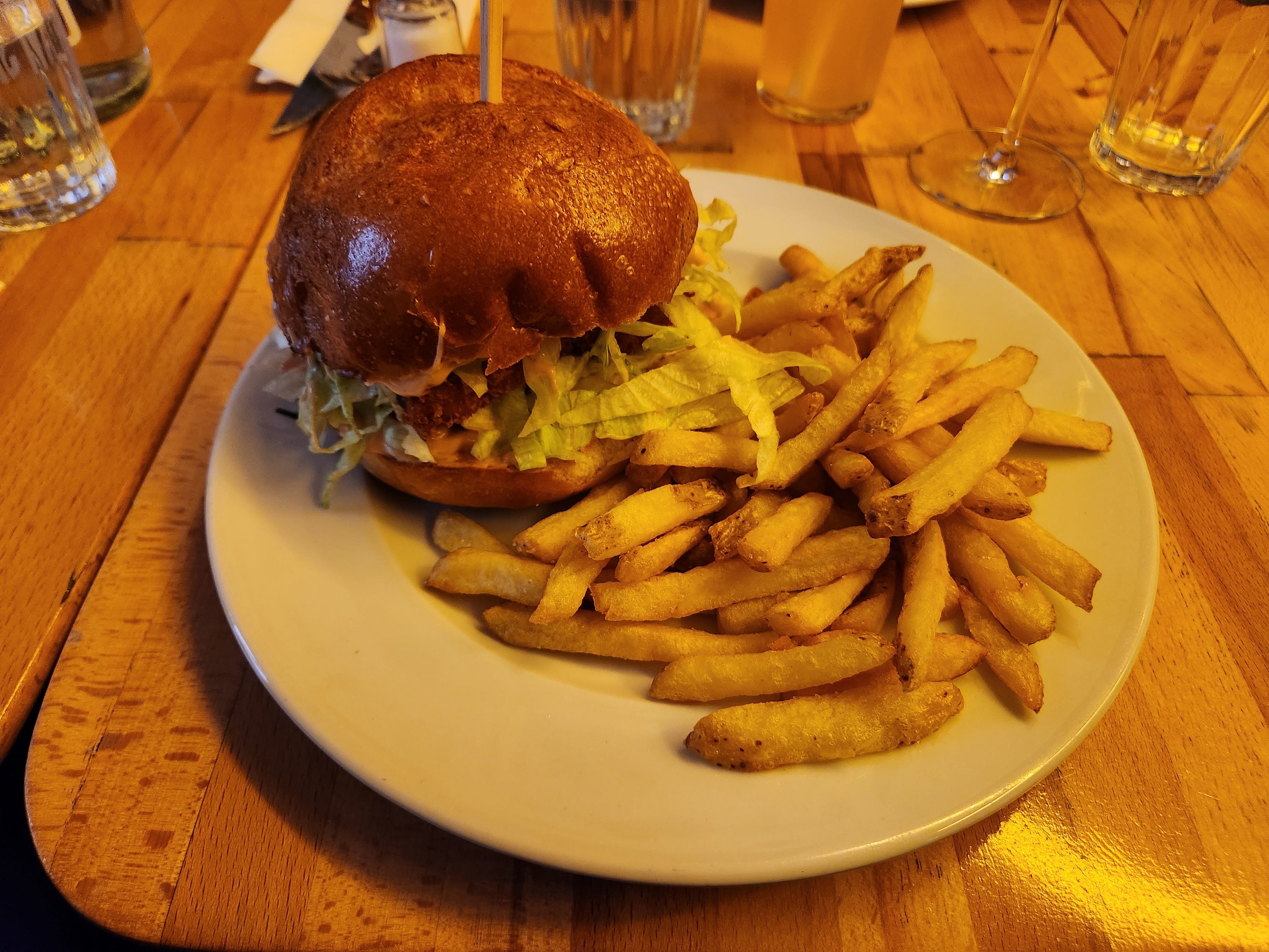 Très bon burger servi avec de bonnes frites maison. Mention spéciale pour le Blue Cheese. Bonne bière blanche locale