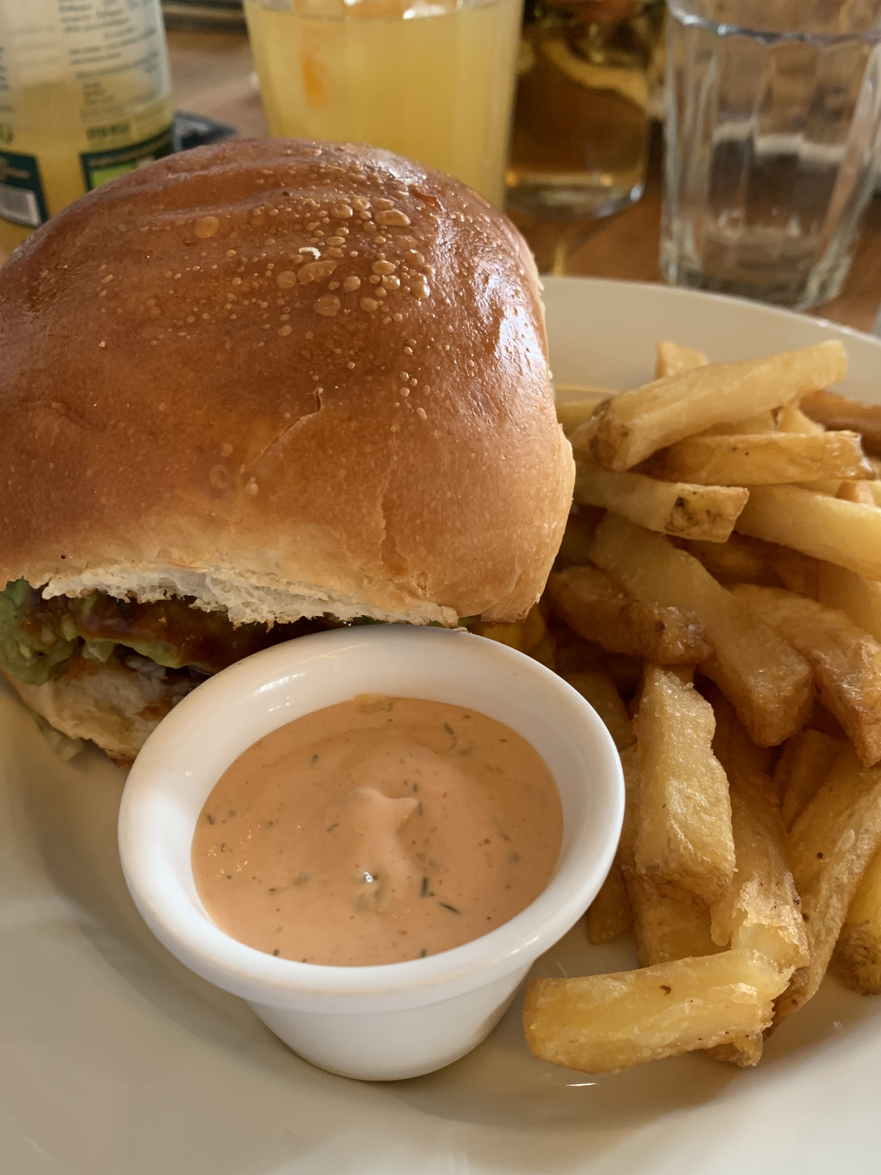 Depuis le temps que je voulais tester ! Top ! Les frites sont fraîches ! Burger au filet de poisson pané et le comté sont topissimes !!! Petit bémol sur le ginger citronnade qui,à mon goût, n'est pas assez gingembré lol Serveur sympa et à l'écoute. Endroit sympa. Petit bémol sur les W.C. la peinture noire ne rend pas bien et l'éclairage ne permet pas de bien se voir. Mais, c'est que mon avis perso pour la déco lol Je recommande !